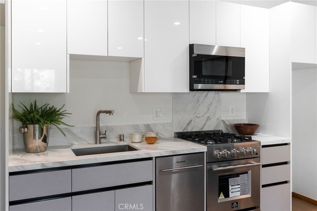• AppliancesSixBurnerStove, Built-In Range, Dishwasher, Disposal, Microwave, Refrigerator, Range Hood, Tankless Water Heater