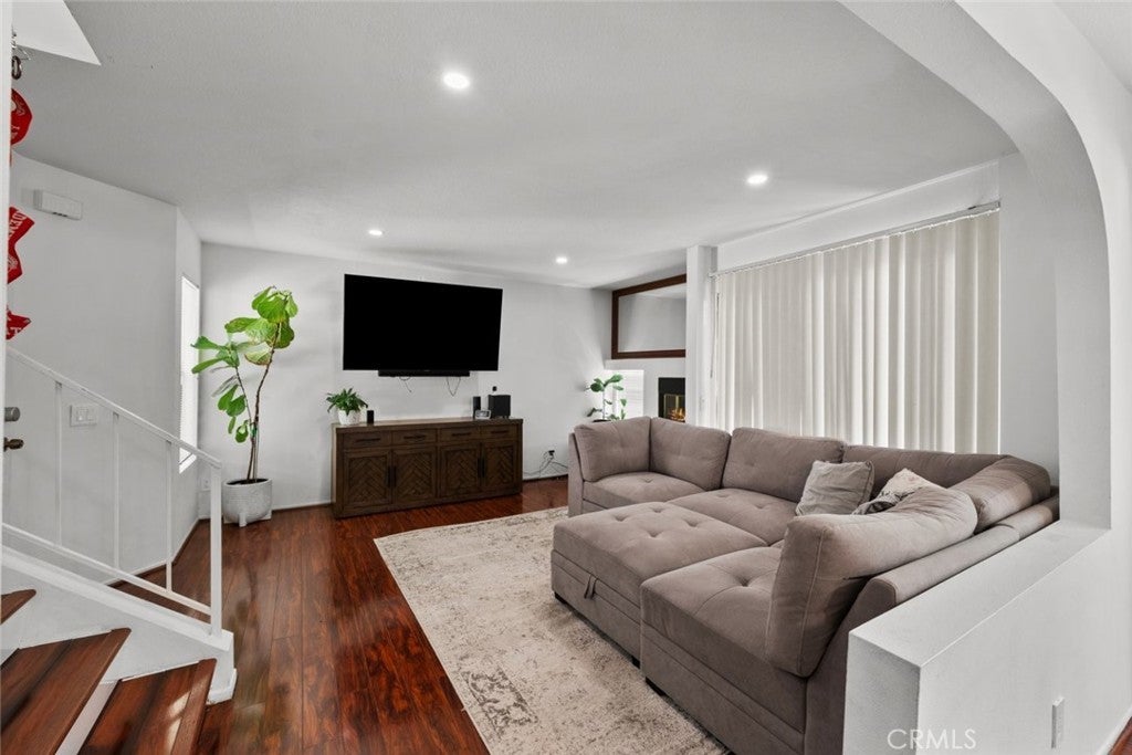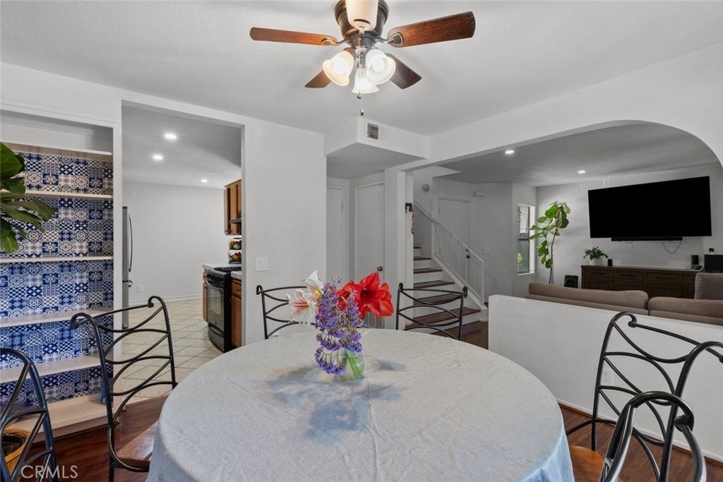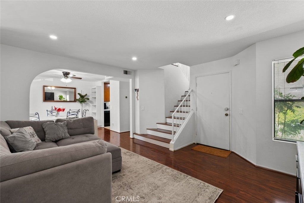 Located in a nice neighborhood in Sylmar find a beautiful 3 bedroom and 2.5 bathroom condo. This condominium boasts a range of desirable features, including ceiling fans, recessed lights, a fireplace, and access to a community pool. Through the front door, you're greeted by a generously proportioned family room adorned with recessed lighting, laminate wooden floors, and a cozy fireplace. The kitchen offers plenty of space, complete with ample storage, a tiled counter, and a designated corner perfect for a breakfast area. Each room is thoughtfully laid out, filled with natural light, and equipped with spacious closets. The primary bedroom seamlessly connects to its own bathroom, featuring a convenient dual sink setup. Additionally, the hall bathroom is elegantly appointed with a marble backsplash in the shower and a sleek glass sliding door. Completing the package, the garage provides accommodation for two parking spots.