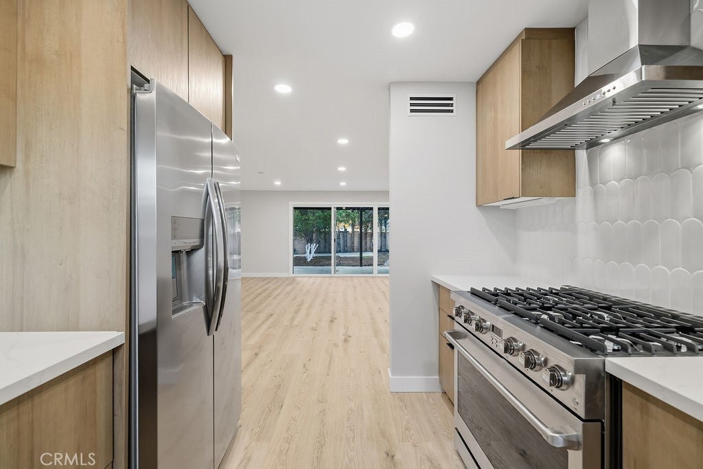 Incredible Opportunity in Porter Ranch! Welcome to this beautifully renovated 4-bedroom, 3-bathroom home with a versatile bonus room, located in one of Porter Ranch’s most desirable neighborhoods. Thoughtfully redesigned with timeless finishes and modern upgrades, this home offers the perfect balance of comfort, style, and functionality. Step inside to a bright, open layout featuring new drywall, fresh paint, smooth ceilings, recessed lighting, and wide-plank German flooring throughout. The inviting living area is anchored by a gas and wood-burning fireplace with porcelain tile, while large sliding glass doors create seamless indoor-outdoor living. The custom-designed kitchen blends elegance and practicality with soft-close cabinetry, pantry storage, under-cabinet lighting with hidden outlets, a custom hood, 36-inch range, and all-new appliances. Bathrooms offer a spa-like feel with porcelain tile, new vanities, and a Moroccan plaster shower in the primary suite. Major upgrades include a new roof (30-year warranty), copper plumbing, updated electrical, serviced sewer lines, and upgraded HVAC with smart thermostat. Situated on a 10,000+ sq ft lot with private alley access and gated entry, the backyard features a 20’ x 12’ pergola, fresh landscaping, sensor lighting, mature fruit trees, and cypress for added privacy. Additional highlights include an EV charger, new gutters, patio slider, and sprinkler system with timer. Includes 1-year workmanship warranty + home warranty, with appliances eligible for manufacturer warranties. ADU potential (buyer to verify). Located in a highly sought-after school district, this turnkey home is ready to welcome you.