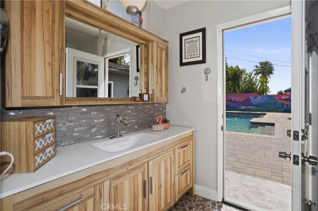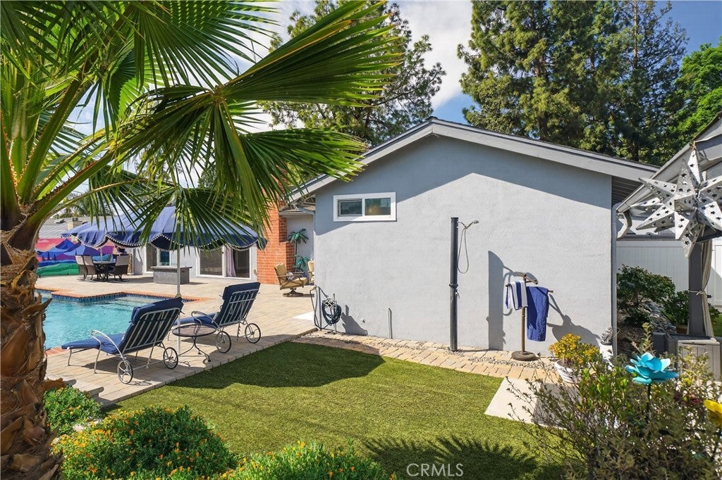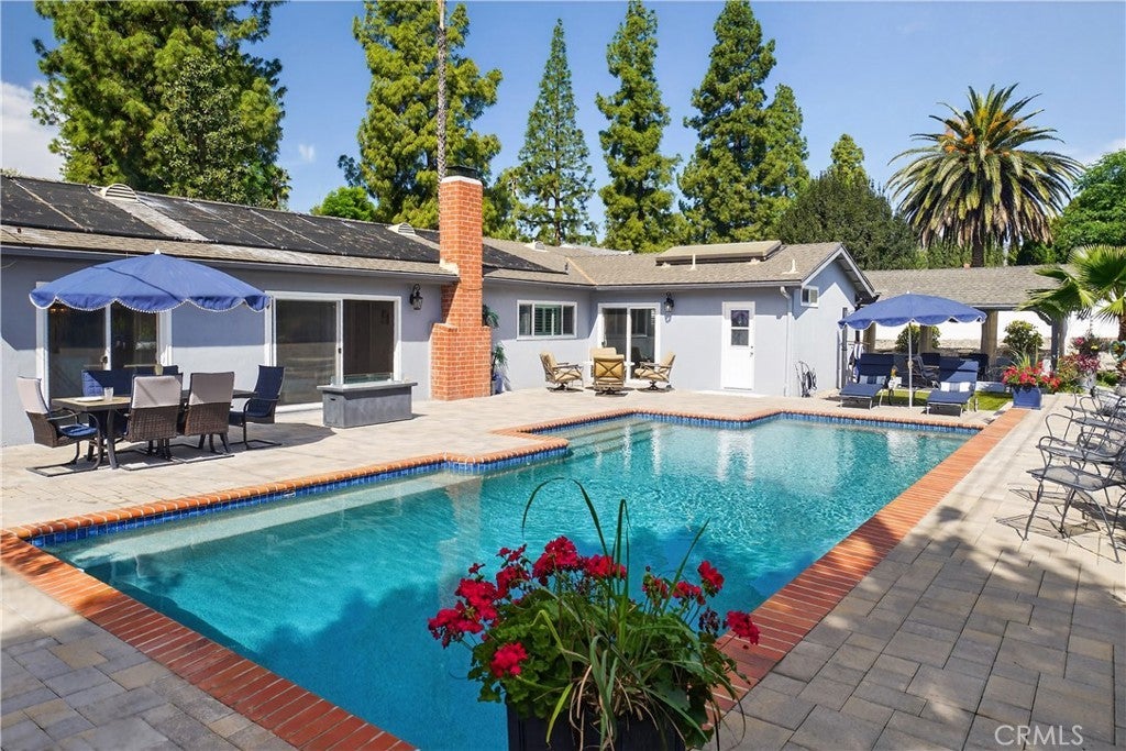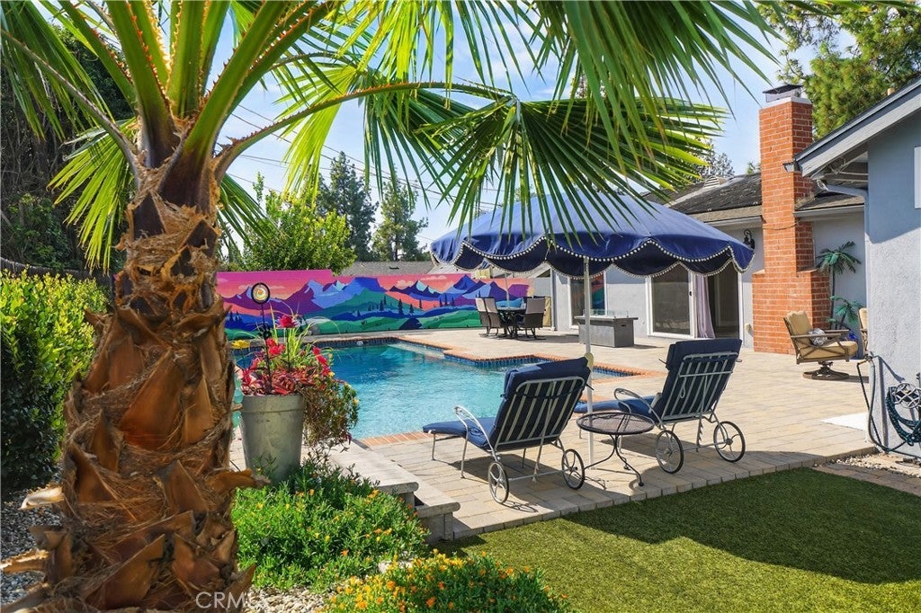 Wow! You will absolutely love this gem! From the moment you drive up the tree-lined, cul-de-sac to the moment you step inside, this home invites you to relax and stay awhile. The layout naturally draws your eyes through the beautifully designed, and updated home, and out to the private backyard, where the sparkling pool becomes the centerpiece of everyday indoor/outdoor living. Imagine starting your mornings with coffee under the covered patio as the sun reflects off the pool, and ending your evenings in the same peaceful spot; this time by warmth of the fire-table, as the water glows under the pool lights. The oversized pool offers plenty of space for family fun, weekend gatherings, and memorable summer days with friends. Inside, the home has been thoughtfully improved over the years with quality upgrades that add both comfort and efficiency. Double-and triple-pane windows and sliders fill the rooms with natural light while keeping the home quiet and energy efficient. Updated luxury vinyl flooring, remodeled bathrooms, and a beautifully remodeled kitchen with recessed lighting, stainless steel, high-end appliances, quartz counters and plenty of cabinetry to make daily living both stylish and practical. The 4 bedrooms are oversized and the primary suite is relaxing with backyard views and access. The backyard has been carefully designed for easy enjoyment, with artificial turf, updated landscaping, elegant pavers, an outdoor shower, 3 fire tables, a huge covered dining area and recently improved pool systems including new plumbing, tile, and beautiful pebble finish. Every detail reflects pride of ownership and thoughtful maintenance. Beyond the property itself, the neighborhood is something truly special—known for its friendly atmosphere and wonderful neighbors. Close to schools, parks, shopping, and The Village - And for a unique local treat, The Malibu Winery is just about a mile away, making it close by for a relaxing afternoon or evening outing. Homes that combine privacy, upgrades, and a backyard designed for making memories are rare. This is a place where everyday moments feel like a getaway.