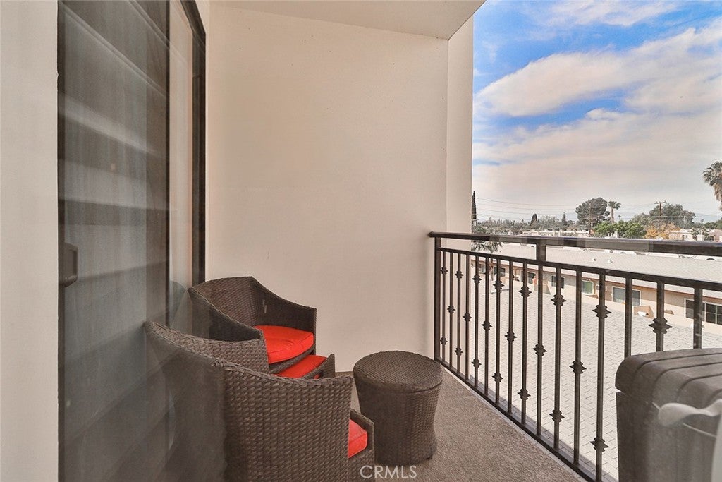 Enjoy top-floor living with valley views in this light-filled penthouse at Villa Julietta, offering approximately 1,330 sq. ft. of thoughtfully designed living space in one of Sherman Oaks’ most walkable locations. With three bedrooms and two bathrooms, the open-concept layout creates a natural flow between the upgraded kitchen—featuring granite countertops, stainless steel appliances, and a breakfast bar—and the living area with a fireplace and private balcony. Elevated treetop scenery and abundant natural light create a sense of calm and privacy throughout. The oversized primary suite feels like a true retreat, complete with a walk-in closet, balcony, and a spa-inspired bathroom with dual vanities and a stone shower. Two additional bedrooms provide flexibility for guests, roommates, or a home office. Practical comforts include in-unit laundry, central A/C, recessed lighting, secure entry, and two gated parking spaces with ample guest parking. The building offers accessible entry with a wheelchair ramp and elevator service to the fourth floor, making everyday living convenient and accessible. Residents enjoy amenities such as a fitness center, sauna, and sundeck, with HOA dues. Located just minutes from the 405 and 101 freeways, commuting is simple while still being steps from Ventura Blvd’s popular dining, coffee shops, boutiques, and nightlife. This is a rare opportunity to own a move-in-ready top-floor home where location, views, and everyday comfort come together.