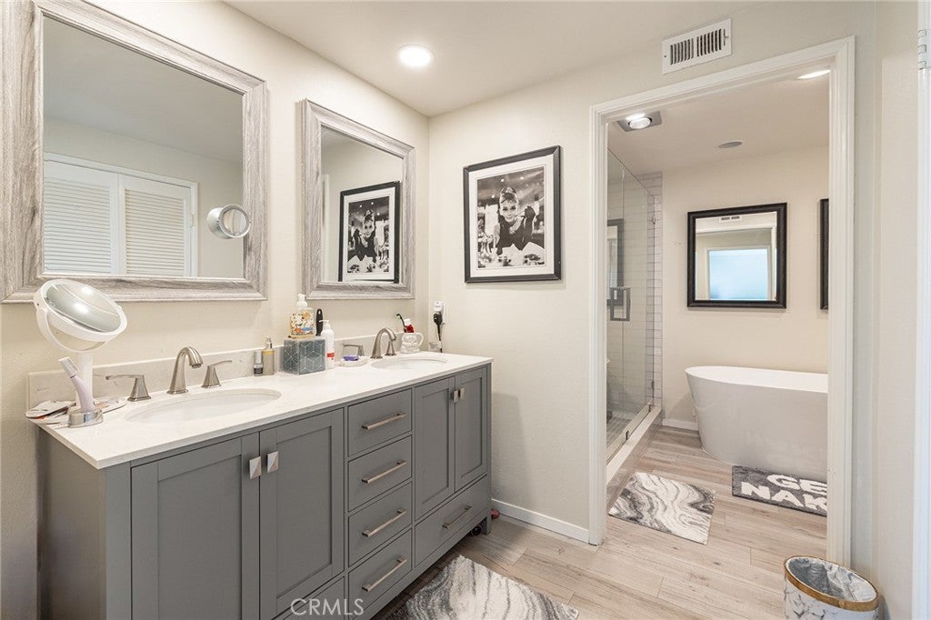 Welcome to this absolutely gorgeous home located in the highly sought after Sunset Hills neighborhood of Thousand Oaks! This fully remodeled turnkey home is situated in East Hill and is surrounded by Sunset Hills Golf course. The 4 Bedroom -3 full bathroom home with vaulted ceiling and new flooring throughout, creating a bright, open indoor-outdoor living experience. This spacious layout includes a downstairs bedroom with a full bathroom a large living room with a cozy fire place, a formal dining and a large family room great for all family gatherings with floor to ceiling windows and sliding glass doors opening to the backyard. With updated kitchen features and top of the line appliances, an eating area and beautiful upgraded kitchen cabinets. All bathrooms are upgraded. The Master bedroom has high ceiling, a large walk in closet a master bathroom suite with separate and updated bathtub and shower. All bedrooms and bathrooms are large and glamorous. The Backyard is private and full of charm, ideal for gatherings and quiet retreats. Whole house soft water system. The East Hill HOA residents living in this community have a private/for residents only walkway/Paseo system which meanders around the community with magnificent views of the Sunset Hills with two private parks for residents only. This is a Gem home in a community with long term residents who pride themselves in belonging to it. Great school district, close to shopping, parks and all you desire in a great neighborhood. Move in ready, this home perfectly blends modern comfort, tranquility and prime Thousand Oaks living. Must See! WELCOME HOME
