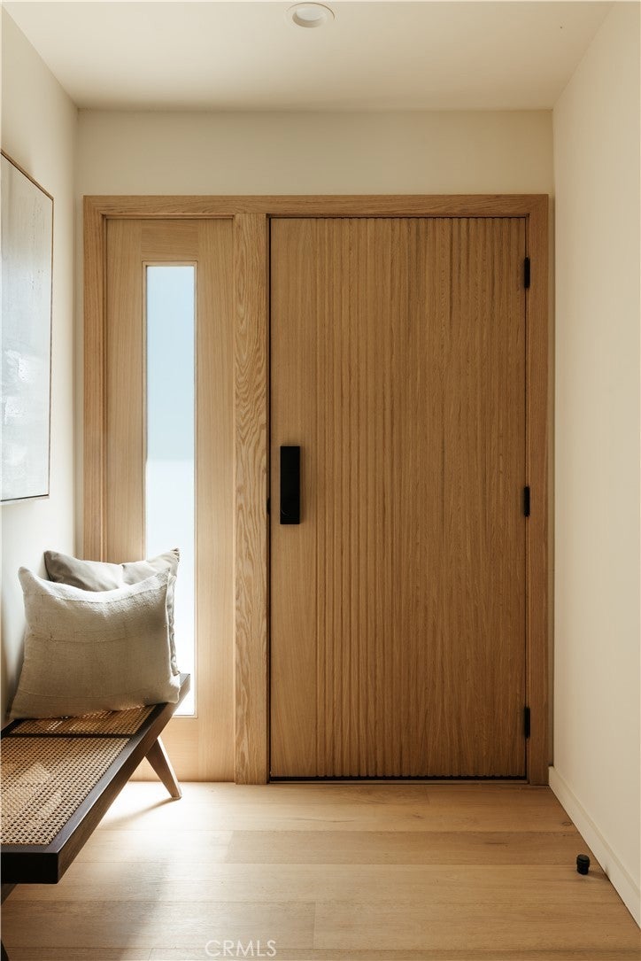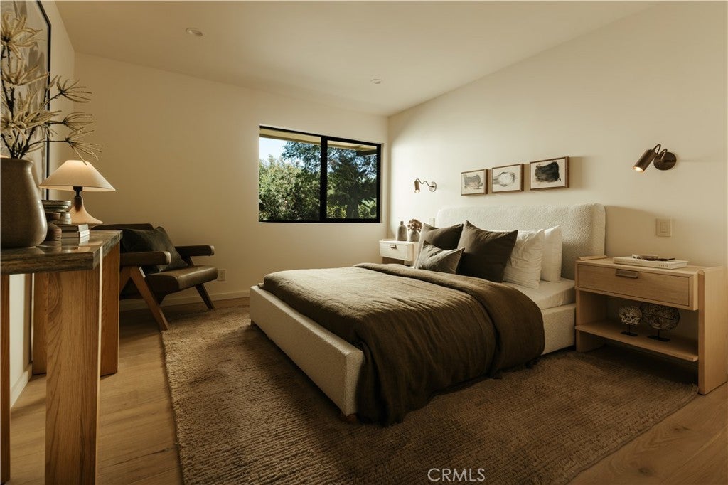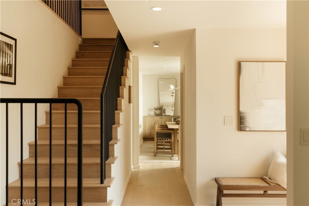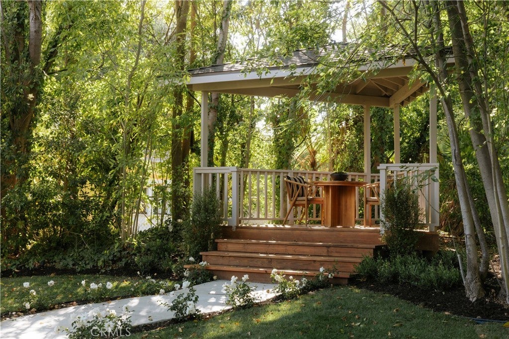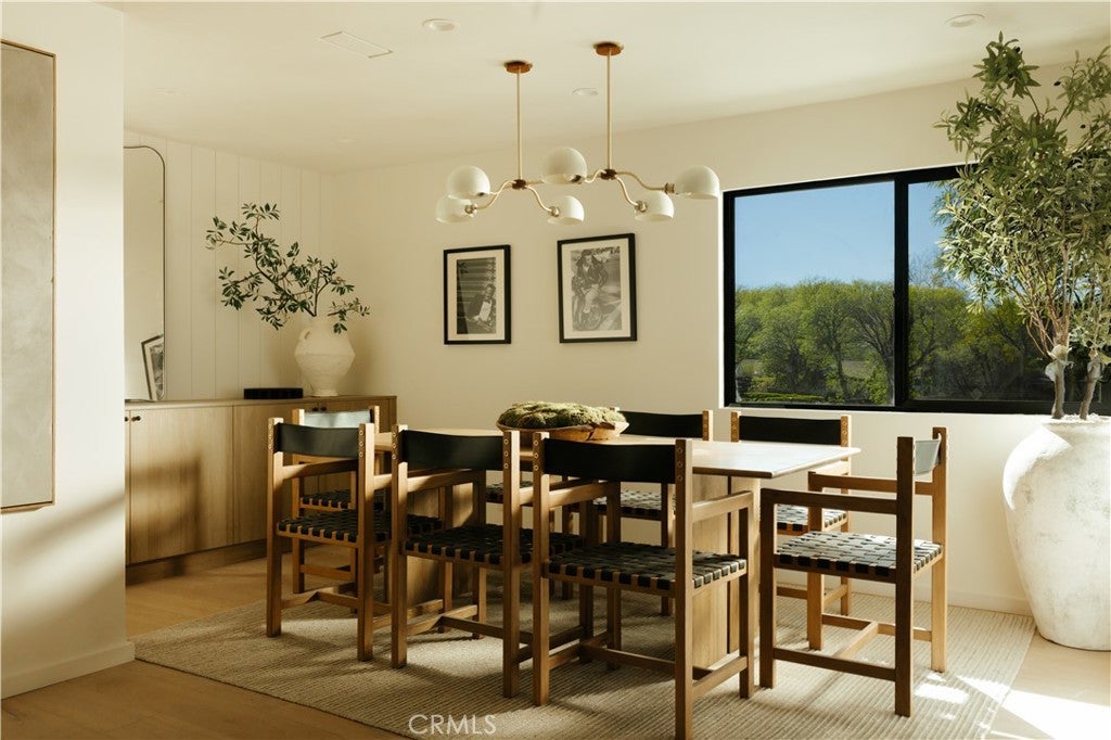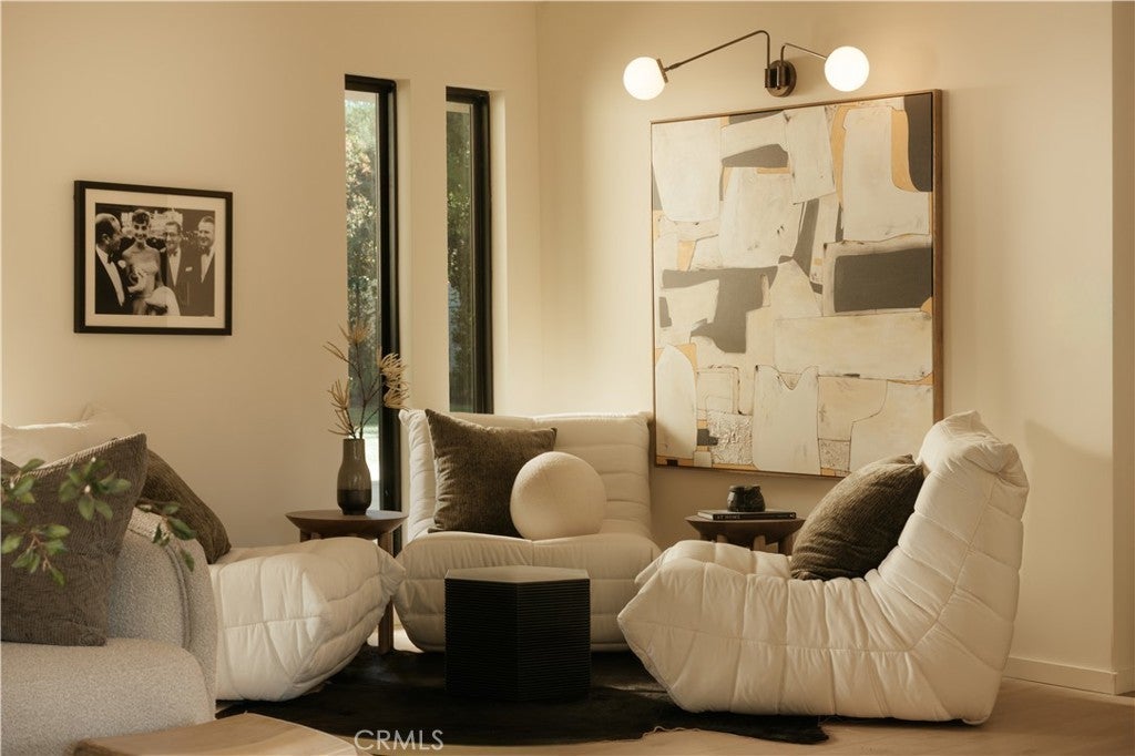 Situated on a quiet cul-de-sac in Woodland Hills, this beautifully redesigned residence blends modern sophistication with warm natural materials and thoughtful craftsmanship throughout. Redesigned by TheDesignLab.LA, the home offers a refined balance of contemporary design and comfortable living. The property delivers both elevated style and everyday functionality. The home’s clean architectural exterior and curated landscaping create a welcoming sense of arrival. Inside, the light-filled interior showcases wide-plank wood flooring, designer lighting, and expansive windows that frame views of surrounding greenery while filling the home with natural light. At the center of the home, the chef’s kitchen features custom white oak cabinetry, premium appliances including built-in Fisher & Paykel refrigerator, a large center island with seating, and a striking handcrafted green tile backsplash. Adjacent to the dining room, the space is both visually distinctive and highly functional. A sleek fireplace anchors the formal living room and flows seamlessly to the outdoor patio, creating an ideal setting for both relaxed living and entertaining. Upstairs, the spacious primary suite serves as a private retreat with a spa-inspired bathroom featuring a soaking tub, oversized shower, dual vanity, and a custom walk-in closet. Designed for true Southern California living, the backyard offers an expansive lawn surrounded by mature trees and lush landscaping, along with a large patio featuring multiple lounge and dining areas perfect for entertaining, outdoor dining, or relaxing in a peaceful garden-like setting. Additional highlights include skylights, custom millwork, Lutron-controlled lighting, integrated speakers, and a security camera system, completing this thoughtfully upgraded residence. Ideally located just minutes from The Village at Westfield Topanga, Westfield Topanga Mall, Calabasas Commons, Warner Center, and Ventura Boulevard’s renowned dining and shopping, the home offers convenient access to some of the area’s best lifestyle amenities while maintaining a quiet neighborhood setting.
