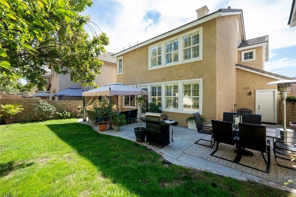 Darling 4 bedroom Valencia Bridgeport culdesac home with a lush landscaped backyard in Santa Clarita’s premier lake community. Located in the highly desirable Bridgeport neighborhood of Valencia, this charming and well maintained home offers 4 bedrooms, 2.5 bathrooms and 2,217 sq ft with a rare backyard featuring grass, a patio seating area, mature landscaping, and a soothing fountain. The kitchen features an island, stainless steel appliances, and overlooks the inviting family room with a raised hearth fireplace and plantation shutters. The layout is both functional and welcoming with an indoor laundry room that includes a huge pantry for additional storage and direct access to the attached 2 car garage. Upstairs you will find a long linen closet providing extra storage and a spacious primary suite with double door entry. The primary bathroom includes a soaking tub, dual sink vanity, walk in shower, and a walk in closet. The secondary bedrooms are generously sized and two of them feature walk in closets. Bridgeport is one of the most sought after communities in Valencia with incredible amenities including scenic walking paths around the lake, a beautiful lakeside clubhouse available for events, resort style pools and spa areas with fireplaces and cozy seating spaces. The home is just a couple of blocks from Bridgeport Elementary School, adjacent to the Santa Clarita paseo and bike path system, and close to Trader Joe’s, shopping, and popular restaurants. A wonderful opportunity to own a charming home in Valencia Bridgeport with a rare backyard and no mello roos.