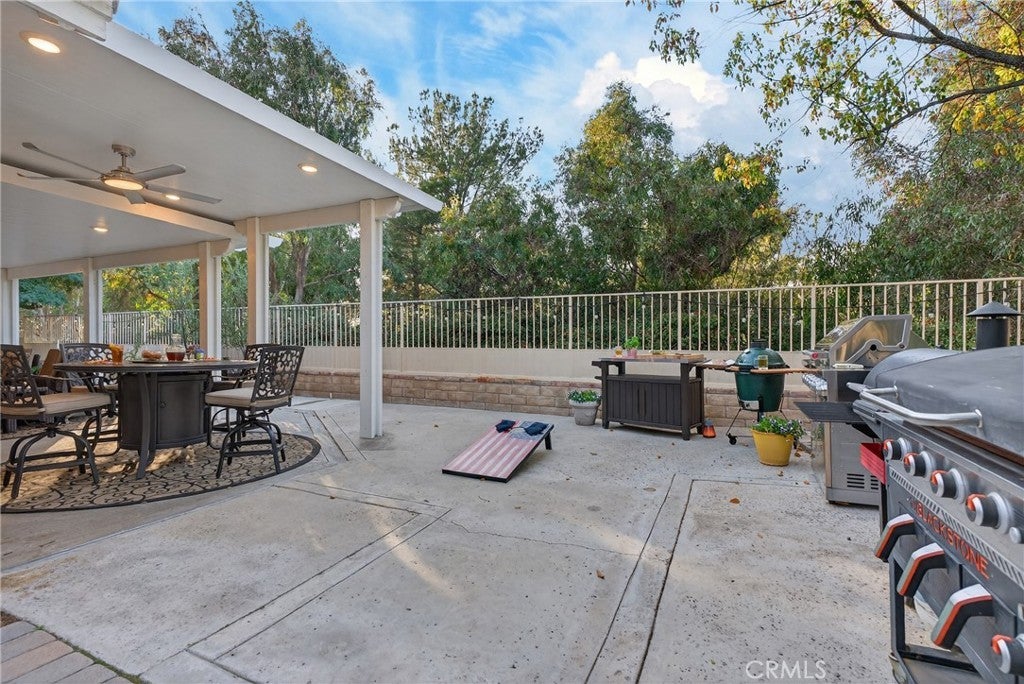 Welcome to this charming single-story home tucked on a double cul-de-sac in the heart of Northbridge, Valencia. Offering 4 bedrooms, 2 bathrooms and approximately 1,666 sq. ft., this home combines comfort, convenience, and an exceptional outdoor lifestyle. Inside, you’ll find beautiful hardwood floors, ceiling fans, and a bright open layout designed for easy everyday living. The kitchen opens to the main living areas, creating a natural gathering space for cooking, dining, and entertaining. The home flows seamlessly to an entertainer’s backyard featuring a wraparound patio, covered outdoor living area, and outdoor TV — perfect for relaxing evenings or hosting family and friends. The location is hard to beat. Just steps from the Valencia Paseo system of scenic walkways and walking distance to Northbridge Park and Helmers Elementary School, this home offers the ideal blend of community and convenience. Residents also enjoy access to three community pools and all the amenities that make Valencia one of Santa Clarita’s most desirable communities. Nearby Bridgeport Marketplace and Northpark Village Square offer popular dining, coffee shops, grocery stores, and everyday conveniences just minutes away.