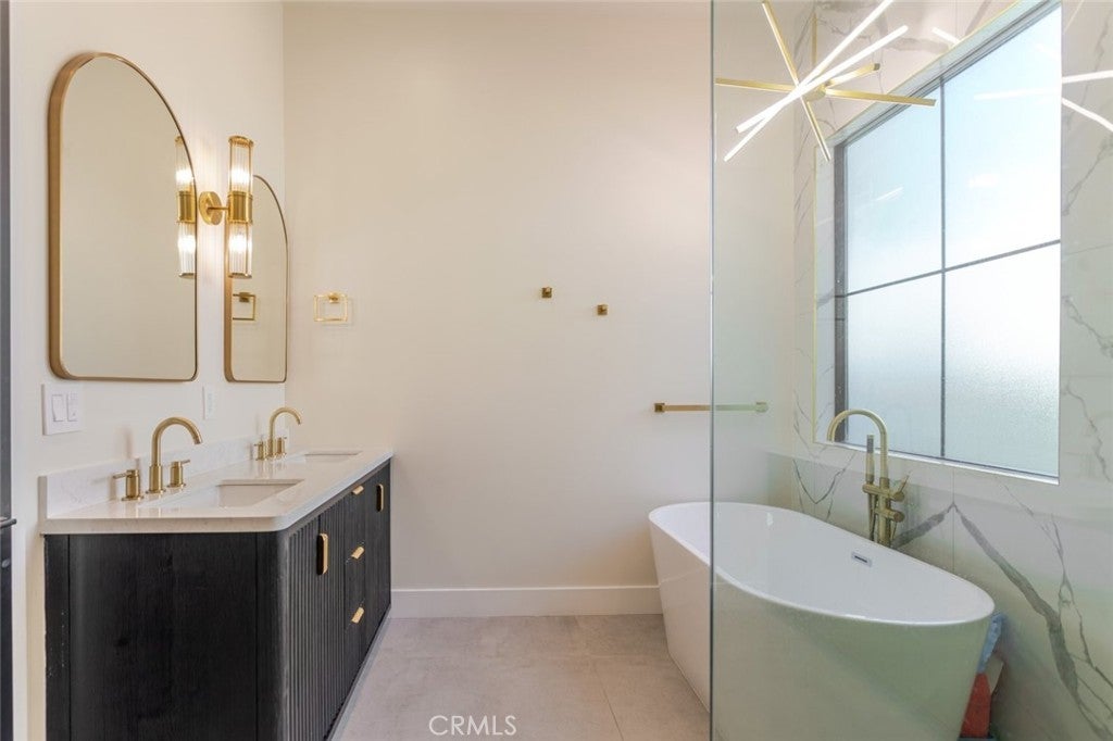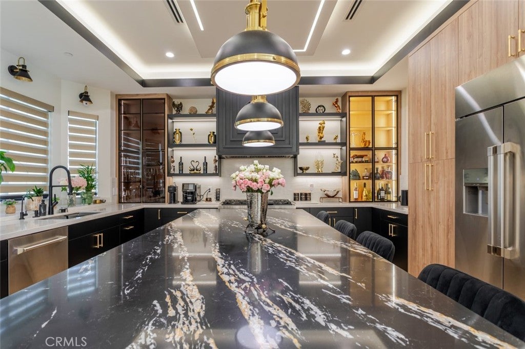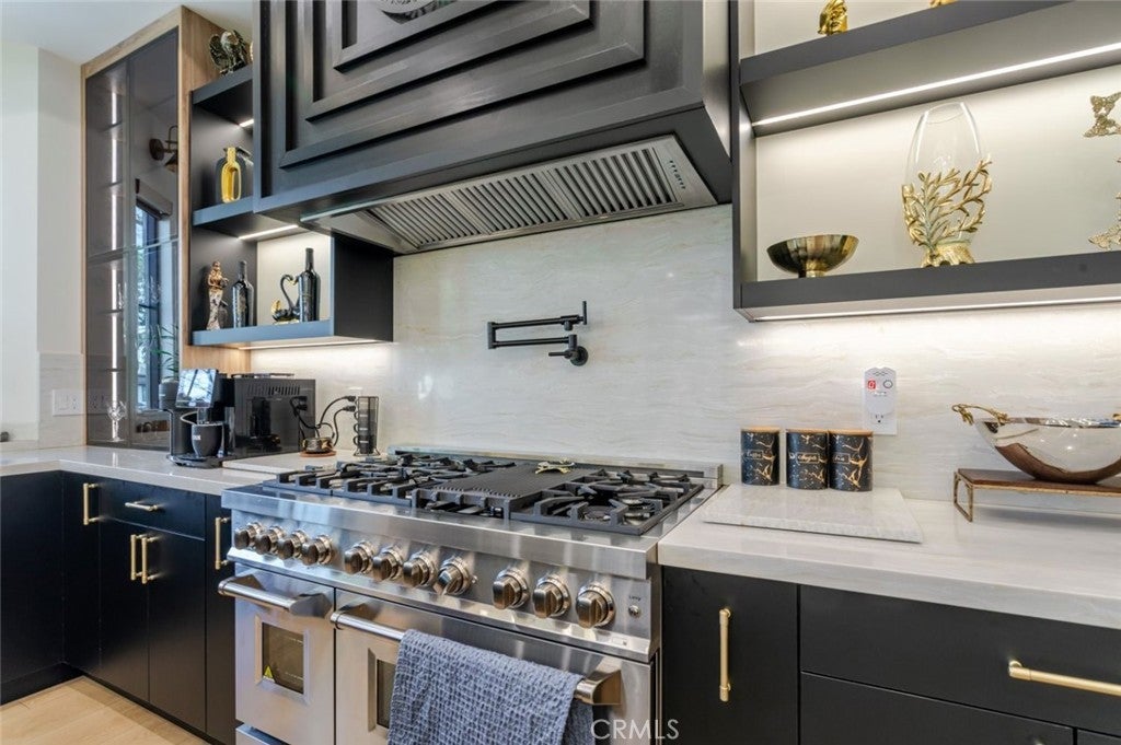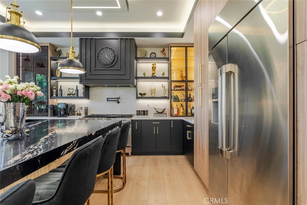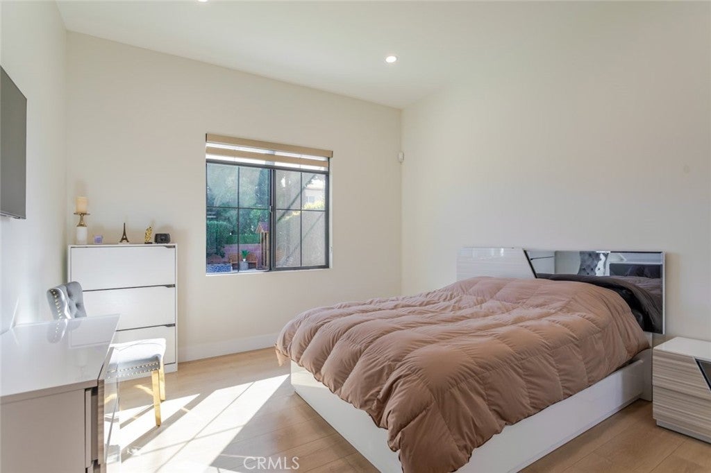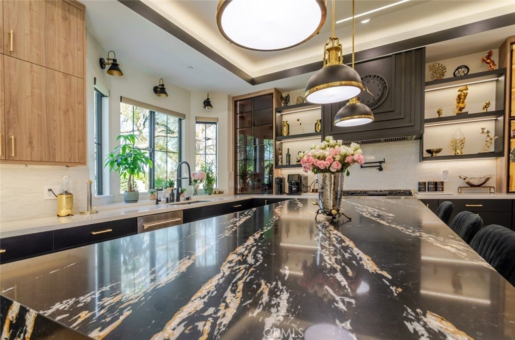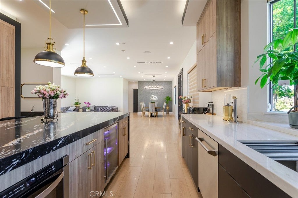 Discover refined luxury living in this newly rebuilt home located in Northridge. Thoughtfully designed with modern elegance, this stunning residence offers 3 bedrooms, 4 bathrooms, and approximately 2,267 sq ft of beautifully crafted living space. The interior showcases soaring high ceilings, recessed lighting, and a stylish fireplace that creates a warm yet sophisticated atmosphere. The brand-new gourmet kitchen is designed for both everyday living and entertaining, featuring top-of-the-line appliances, sleek quartz countertops, and contemporary finishes. The outdoor space is a true private oasis, complete with a sparkling pool and spa, ideal for relaxing or hosting gatherings. Lush surroundings and a serene setting create a resort-style experience right at home. Additional highlights include a detached two-car garage, energy-efficient solar panels, and an elegant circular driveway providing convenient drive-in and drive-out access while enhancing the home's impressive curb appeal.