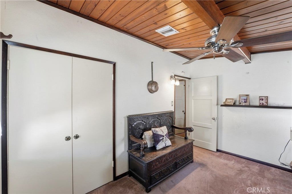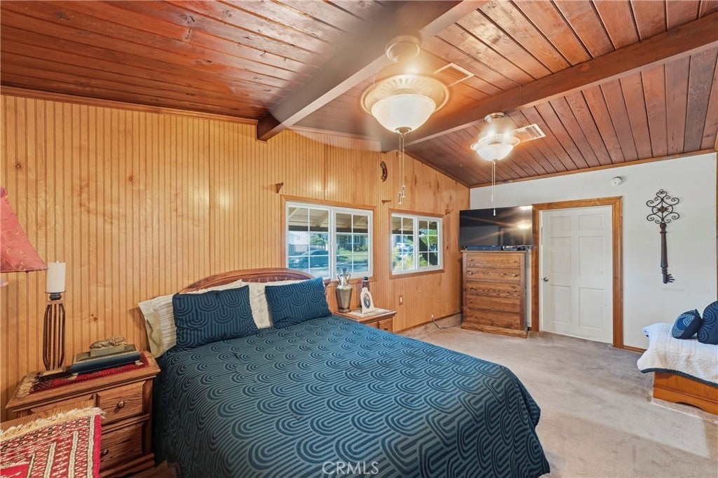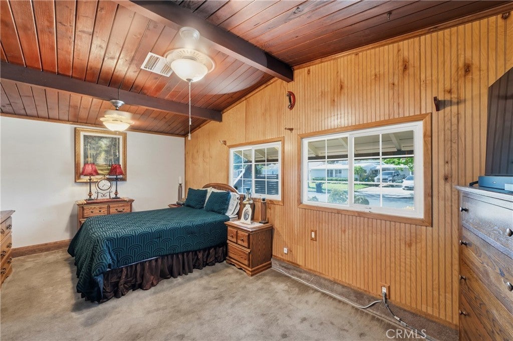 • Interior FeaturesBeamed Ceilings, Ceiling Fan(s), Ceramic Counters, Tile Counters, Wood Product Walls, All Bedrooms Down, Bedroom on Main Level, Main Level Primary