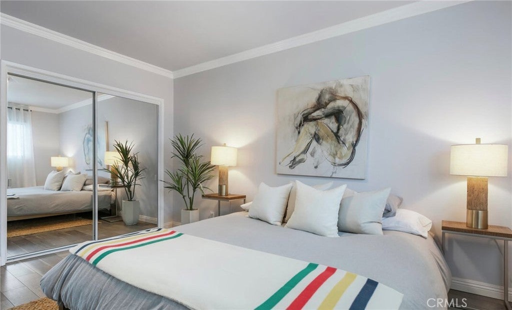 Bright, Spacious, Unfurnished, 2-bedroom, 1-bathroom unit with a balcony at the top floor of a 2-story building. Fantastic rooftop and mountain views! Filled with sunshine and cool breezes, this stylish condo features gray wide-plank flooring throughout, a modern kitchen with stainless-steel appliances, and an updated bath with a glass enclosed shower and tub. The dining area has sliding glass doors which open to a patio. Large bedrooms with ample closet space. 1 car gated parking. Additional street parking with permit. Laundry room on site. Ideally located just a short walk to the Whole Foods, Virginia Avenue Park, weekly farmer’s market, and the Pico Branch Library. Finest Santa Monica Schools. Santa Monica College and Trader Joes are nearby, as are restaurants, shops, and the world-famous Santa Monica Beaches and Third Street Promenade. Available April 10, 2026. 1-year lease, then month to month.