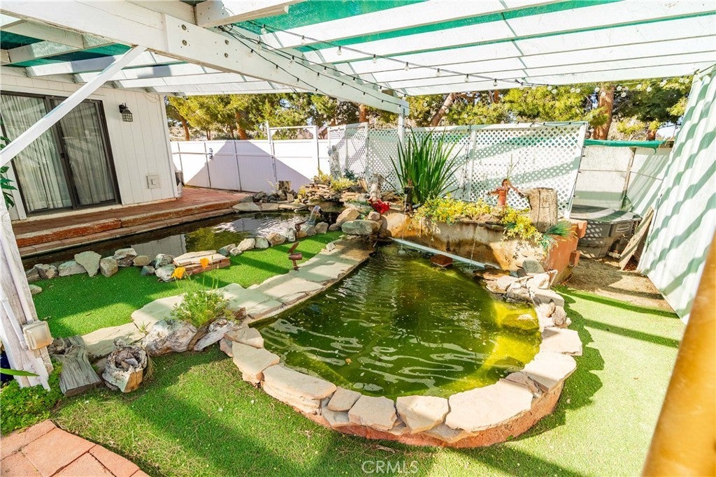 Unique rural retreat on approximately 1.1 acres in East Palmdale offering a rare blend of comfortable living, workspace. This property is designed for those seeking space, functionality, and self-sufficient living. The main home features beautiful high-beam wood ceilings, a cozy wood-burning stove, and a spacious primary suite with a large walk-in closet. One bathroom has a pedestal sink and walk-in shower, while the other has a jetted soaking tub with tile countertops and flooring. The converted garage expands the property’s versatility, offering two private offices and an upstairs studio apartment with a bedroom, bathroom with a walk-in shower, and a kitchenette. Additional living areas include two more bedrooms and a loft space, offering flexibility for guests, hobbies, or extended living. Step outside and experience the property’s true lifestyle appeal featuring three custom koi ponds (approximately $30,000 value) fully stocked with fish, two chicken coops, a greenhouse, and a large storage shed. The land is cross-fenced and ideal for gardening, animals, or outdoor recreation. For hobbyists or mechanics, the property includes a 40' x 8' steel container shop with an attached 12' x 40' permitted workspace with electricity, plus a car lift that stays with the property. Energy efficiency and reliability are key highlights with one fully paid-off solar system (approx. $30,000 value), an additional Tesla solar lease with approximately 10 years remaining ($375.84/month), and a Generac backup generator for peace of mind. Additional features include city water service, insulated garage doors, all appliances included, and plenty of space for RVs, equipment, or outdoor projects. This one-of-a-kind property offers space, flexibility, and a unique lifestyle opportunity rarely found in the Antelope Valley.