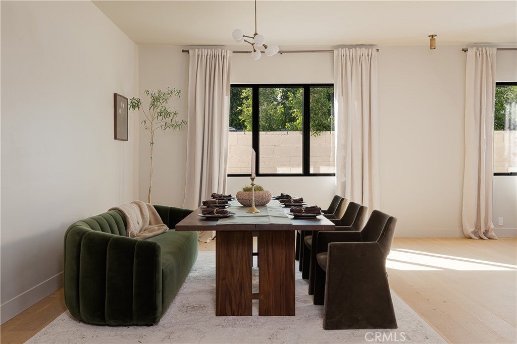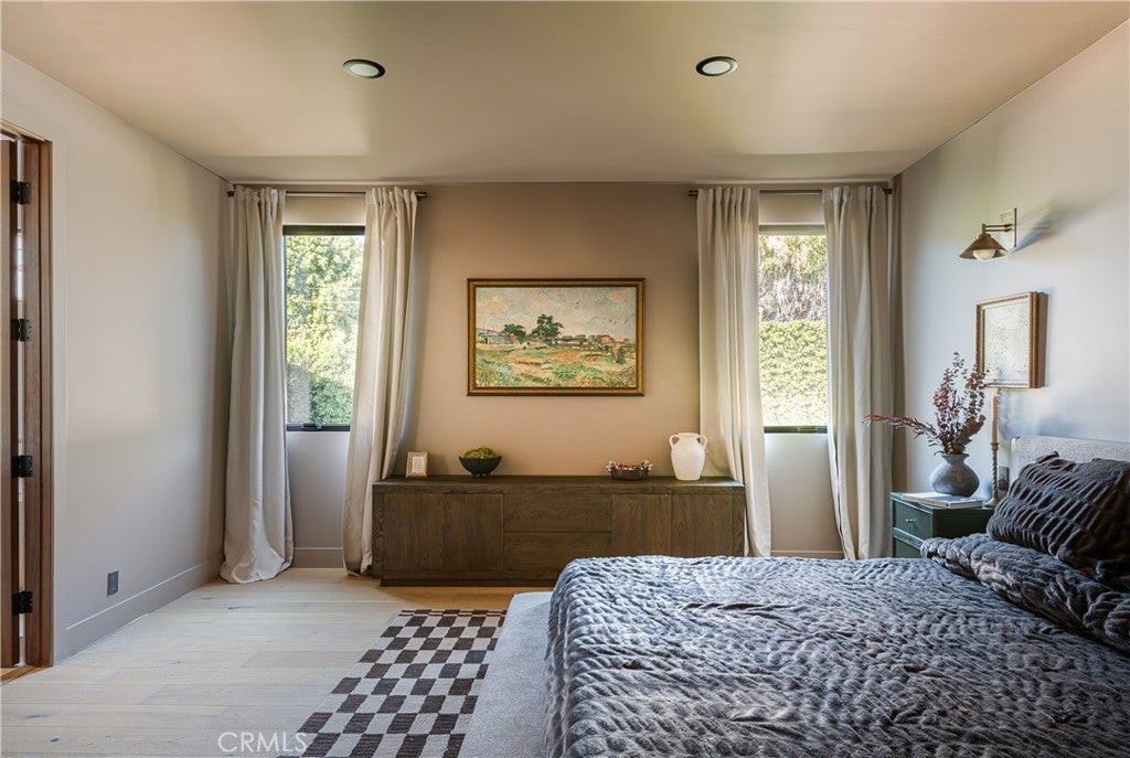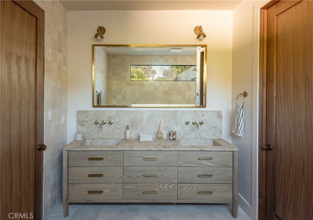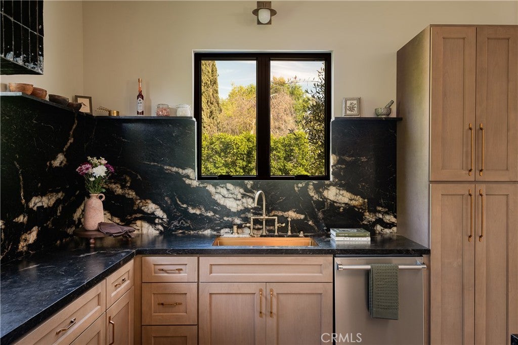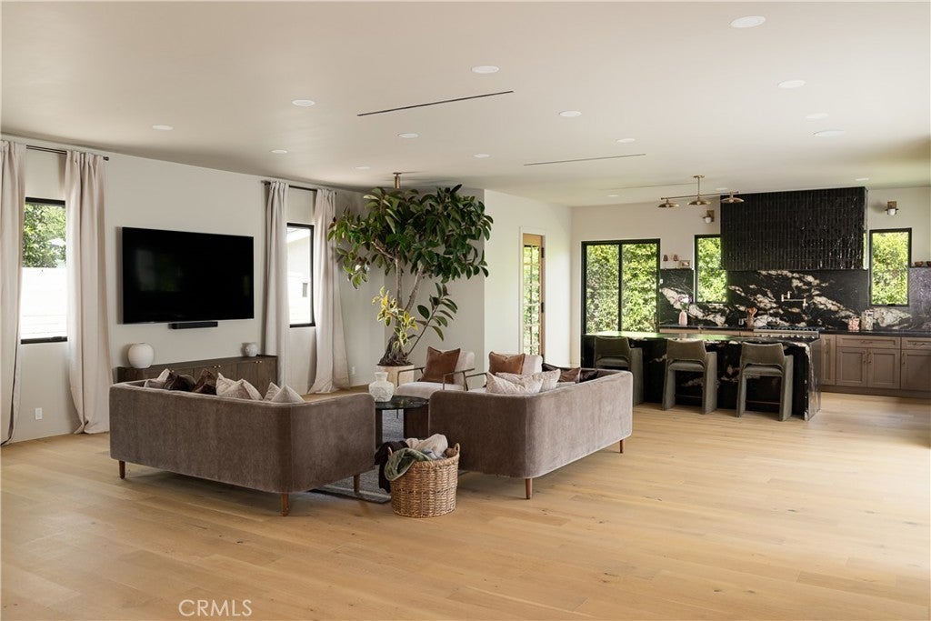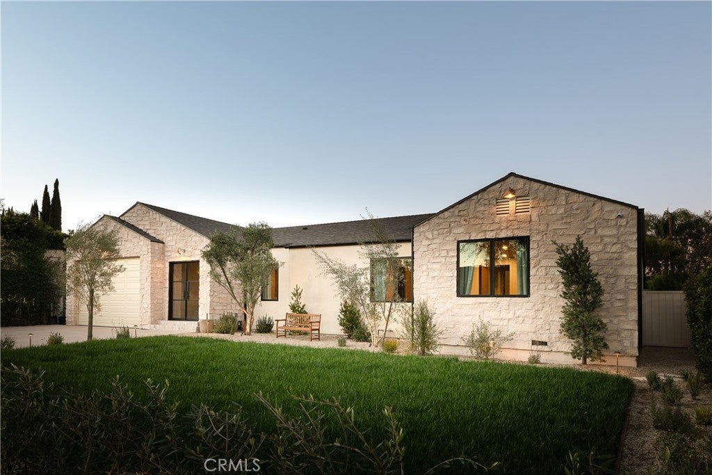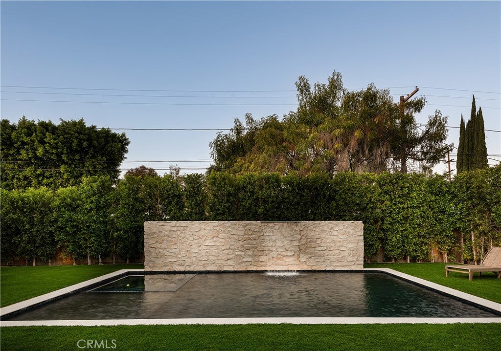 Envisioned at the crossroads of European elegance and modern Southern California living, this newly built single-level 3,428 sq ft residence in Encino offers a rare blend of timeless design and resort-style living. Situated on a beautifully landscaped 9,820 sq ft lot, the home features four bedrooms plus an office, with each bedroom designed as a private en-suite retreat for comfort and privacy. The tranquil backyard creates a true outdoor sanctuary, highlighted by a heated pool, cascading limestone waterfall, integrated spa, and Sonos outdoor sound system, all designed for seamless entertaining and relaxation. A refined exterior of smooth stucco, limestone accents, and mature olive trees sets a striking first impression, while the interior showcases warm natural materials, clean architectural lines, and curated finishes throughout. The chef’s kitchen serves as the centerpiece of the home, featuring custom walnut cabinetry with brass hardware, hand-selected natural stone countertops, a dramatic stone-wrapped island, handmade zellige tile hood, Viking appliances, and a spacious walk-in pantry. Designed for modern California living, the home includes oak wood floors, tall walnut doors, brass lighting fixtures, data wiring to every bedroom, whole-home Sonos audio indoors and out, built-in surround sound, and a fully wired camera system. Expansive pocket doors in the great room open effortlessly to the backyard, creating seamless indoor–outdoor living. The primary suite offers a spa-inspired bath and generous walk-in closet, completing a residence that combines thoughtful craftsmanship, modern technology, and timeless European-inspired design.