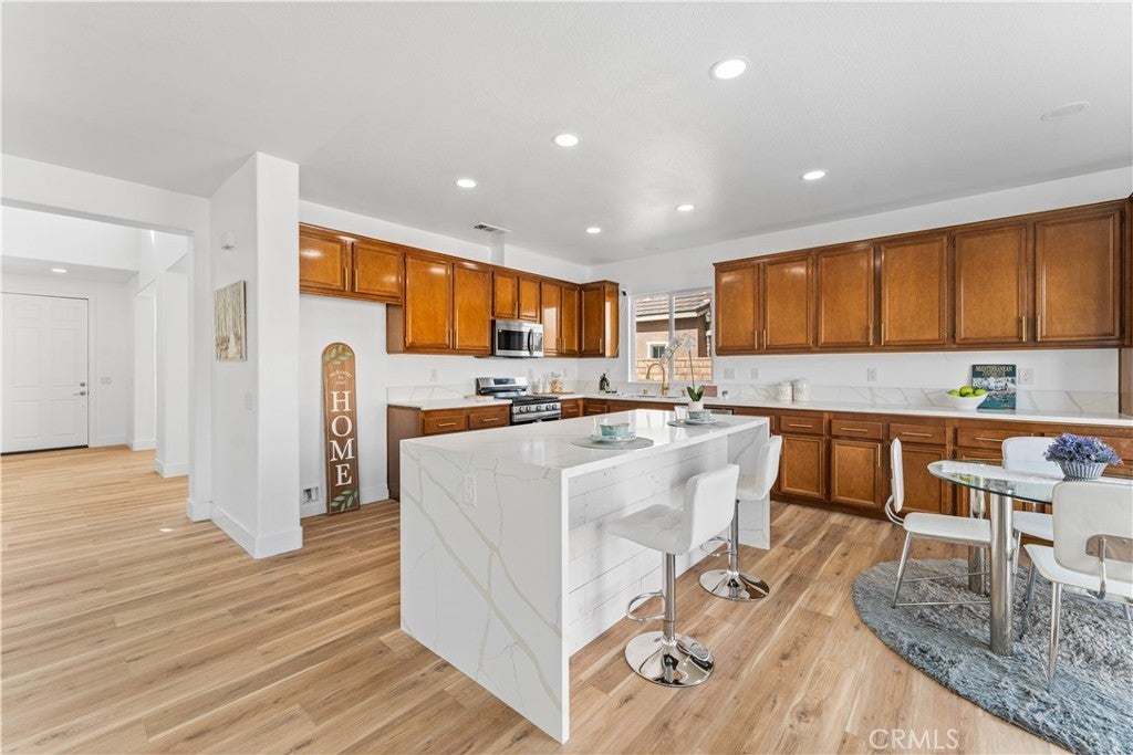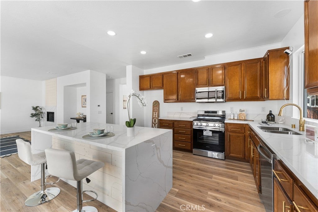 Beautiful and spacious home located in the heart of Palmdale offering over 3,000 sq ft of living space. Impressive property features 5 spacious bedrooms and 4 bathrooms, including a convenient downstairs bedroom with its own bathroom, perfect for guests or multi-generational living. Home offers a formal living room and formal dining room, along with a large family room featuring a cozy fireplace, creating the perfect space for relaxing or entertaining. Huge kitchen is designed for both style and functionality with a large island, quartz countertops, and brand-new stainless steel appliances. Recent upgrades include new flooring, fresh interior paint, and modern fixtures throughout, giving the home a clean and updated feel. Expansive backyard provides plenty of space for outdoor gatherings, entertaining, or future customization. Conveniently located close to schools, shopping, and everyday amenities, this home offers comfort, space, and a prime Palmdale location.