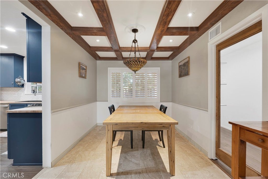 • Interior FeaturesBuilt-in Features, Crown Molding, Coffered Ceiling(s), Separate/Formal Dining Room, Eat-in Kitchen, Pantry, Recessed Lighting, Bedroom on Main Level, Dressing Area, Main Level Primary, Primary Suite, Utility Room, Walk-In Closet(s), Workshop