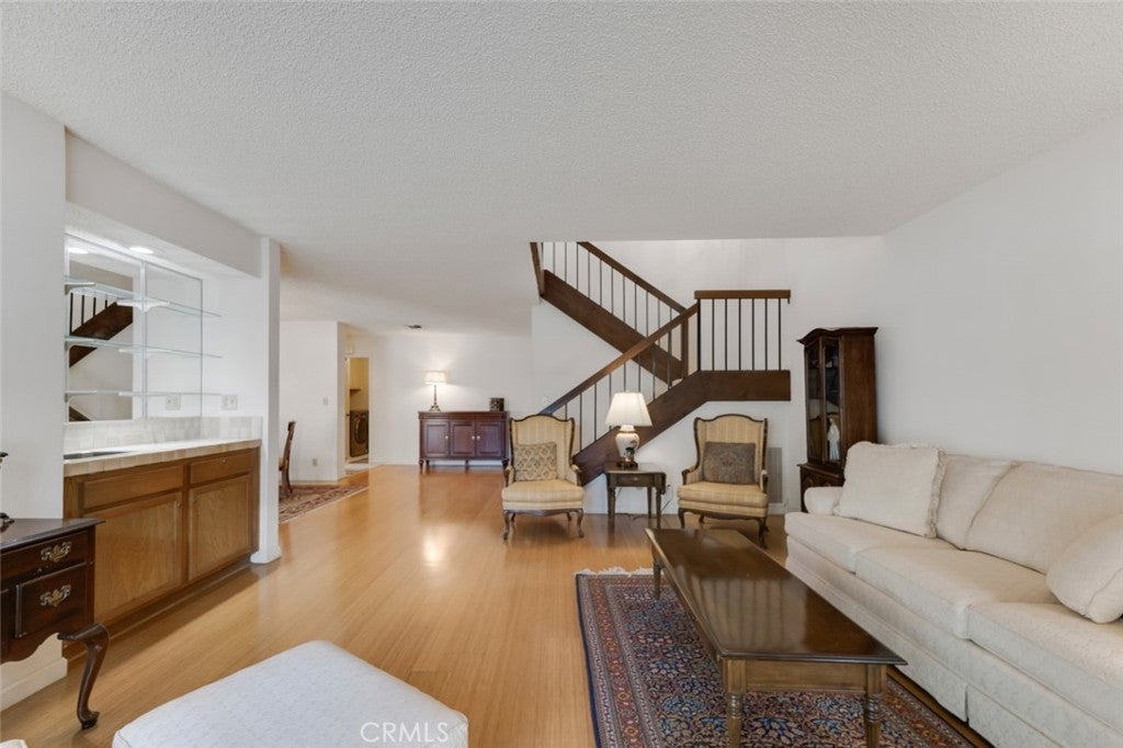 Located in sought-after Northridge Townhome Estates and designed by famed architect William Krisel, AIA, this move-in-ready end-unit townhome offers an amazing layout across 2,061 sq ft of comfortable living space with plenty of potential to make it your own. Served by highly-rated Granada Hills High, Nobel Middle, and Topeka Elementary schools with new windows throughout providing an abundance of natural light. Gleaming bamboo flooring runs through the main living areas, while custom plantation shutters add style and efficiency. The entry opens to an inviting living room with wet bar, a fireplace flanked by a floor-to-ceiling window and wall-to-wall sliding glass door leading to a large, enclosed patio that is also accessible from the kitchen, creating an easy indoor-outdoor flow for relaxing or entertaining. Open to the living room is a formal dining area that connects to a galley-style kitchen with new gas range and abundant storage, along with sliding glass door to the private patio. A dedicated laundry room includes newer washer and dryer, and direct access to the 2-car, attached garage. A convenient powder bath for guests completes the main level. The open staircase with soaring ceiling creates a sense of grandeur and leads to a spacious loft/bonus room highlighted by a wall of windows—ideal as a family room, home office, art studio or yoga space. All 3 bedrooms are located on the second level, including a primary suite with cathedral ceiling and en-suite bathroom with dual sinks, plus a full hall bathroom serving both secondary bedrooms. Residents enjoy resort-style amenities including 3 community pools, spa, 3 tennis courts, fitness center, clubhouse with pool table, ping-pong table, and community library, all within beautifully maintained grounds, with dues covering security patrol, earthquake insurance, water, sewer, trash and basic cable. The location also places you near premier shopping and dining at Northridge Fashion Center, live performances at The Soraya theater at CSUN, outdoor recreation at Aliso Canyon Park, and convenient access to the 118 and 405 freeways.
