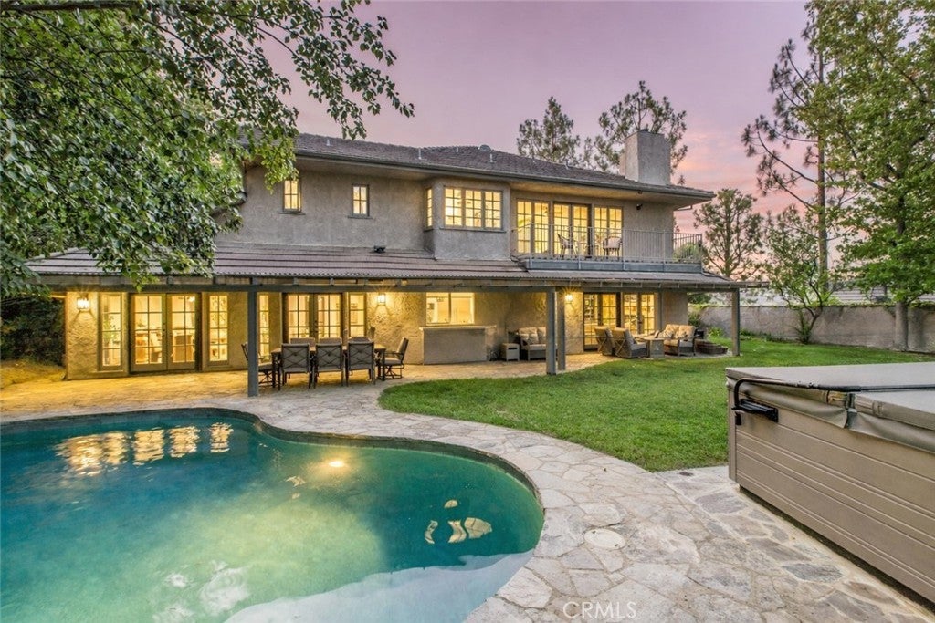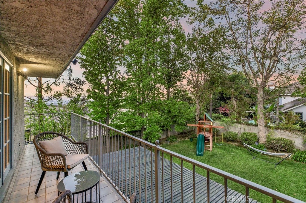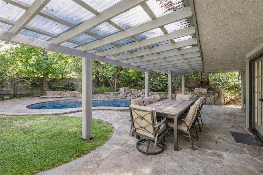 High up in one of Woodland Hills’ most desired neighborhoods, Valley Circle Estates, 6032 County Oak Rd offers the perfect blend of luxury living with all of the right amenities just past your front door step. You are greeted with incredible scale and depth- soaring vaulted ceilings and a statement curved staircase leading to the second floor, where three of the four bedrooms are located. The grand foyer sets the tone, introducing a great flow between all the main living spaces. One direction takes you to the main level ensuite bedroom near the laundry room, powder bathroom and garage. The other way leads right into the great room featuring the most beautiful window wall and grand fireplace. Just the perfect amount of light spills into this home complemented by French doors and windows all throughout. TRUE Chef’s kitchen at the heart of the home and overlooking the entire yard. Double Thermador oven, viking range and hood, Thermador refrigerator, double sided kitchen island with an additional sink, walk in pantry, and a breakfast nook- this is a fully loaded kitchen positioned in between the formal dining room and family room. The backyard is hard to leave… Long patio, spanning across the entire back side of the home, hosts access in and out of the dining room, kitchen, and family room. There is a new built-in BBQ with a direct gas line and enough covered seating space to host the ultimate get togethers. Heated smart pool with a waterfall, brand new hot tub, extra large and flat grass space, and the most mature trees turn this yard into a paradise. Up in the oversized primary bedroom you will have the right to oversee partial views of the valley and your entire backyard from the patio. Great master ensuite bathroom with a double vanity, floating tub, standing shower and a gallery walk-in closet. The 3 car garage, right next to the laundry room, has been completely upgraded with brand new doors, openers, an AC/heater unit, and custom storage closets. Smart home technology has been integrated throughout, including new smart AC thermostats on both floors, smart lighting, locks, cameras, ADT security system, AND community security patrol- all Alexa and Google ready. So many more upgrades throughout, don’t wait to come see them… just arrive! RARE opportunity in a prestigious neighborhood.