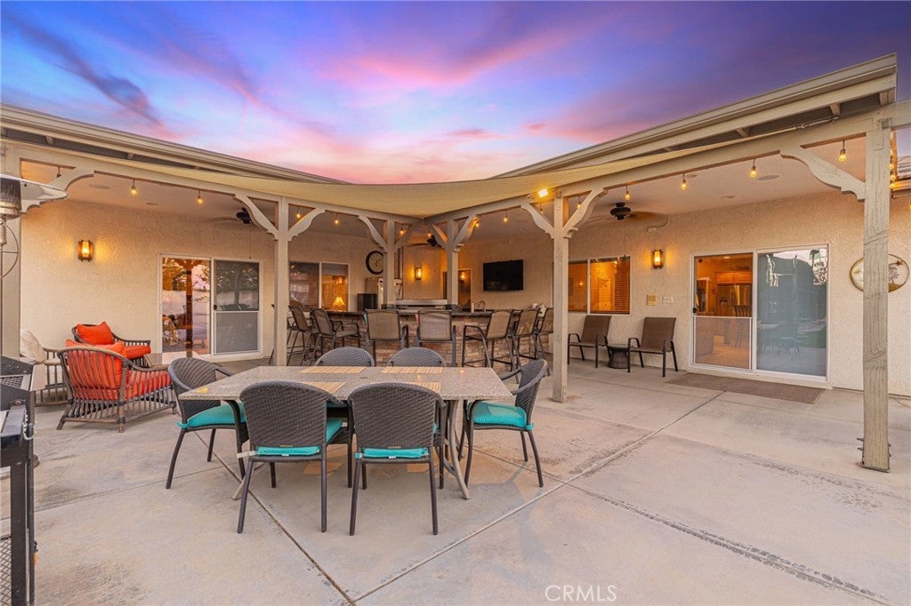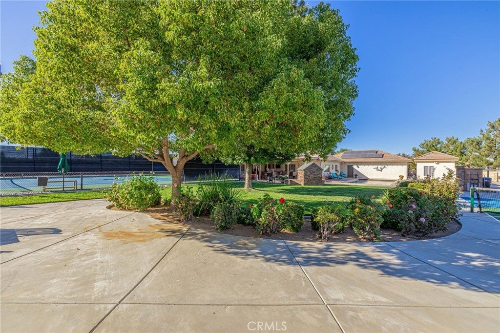 Five Star Resort Living! Desert Rose Custom single story home w/ everything you can dream of! Elegant 5 bedroom, 5.5 bath home on 1 Acre +/- lot. Gorgeous garages with room for 6+ vehicles. Energy Efficient owned Solar system. This exclusive home offers a spacious floorplan with a soothing feel. Wide hallways, expansive rooms, custom upgrades everywhere you look. Large formal living rm, formal dining rm, open family rm. Excellent kitchen with center island and roomy pantry area. Double ovens, 5 burner cooktop, large stainless steel refrigerator and all the amenities a home chef needs. The bedroom wing offers 4 sizable bedrooms, 2 full bathrooms plus the enormous double door entry master bedroom suite and tranquil master bathroom with jacuzzi tub. Large walk in organized closet and private door to the wonderful patio area. Moving on to the other exciting features of this home - The attached 4+ car super sized and insulated garage is truly a showplace. Epoxy floors, space saving cabinets & shelves and excellent lighting. You won't believe how much space this garage offers. Plenty of paved driveway and RV parking area, Top of the line fully lighted tennis court plus a full size pickleball court. In-ground pebbletech pool with auto cover and lounge deck and luxurious spa. Detached Pool house with outdoor shower. Horseshoe pits. First class covered patio with the ultimate grillmasters entertainment area. The outdoor kitchen includes a smoker, BBQ, refrigerator, 2 burners, built-in sound system, mounted TV, ceiling fans and granite countertop bar that seats 8. Crowd pleasing Wood burning pizza oven imported from Italy with cultured rock exterior and copper roof. Plenty of room to relax and enjoy! Last but not least -the approx 1100sf detached guest house, with 2 bathrooms, living rm & kitchen with oversized 2 c. gar and extra storage (permitted as garage and workshop). The list goes on & on!