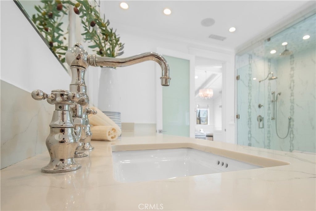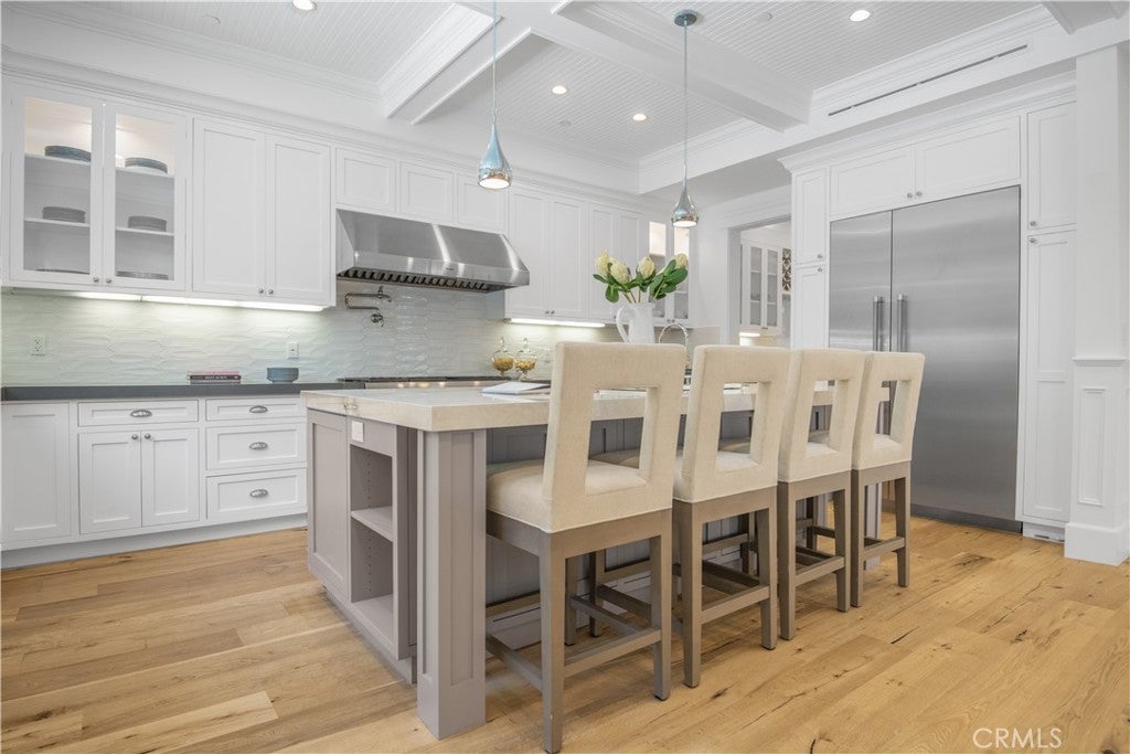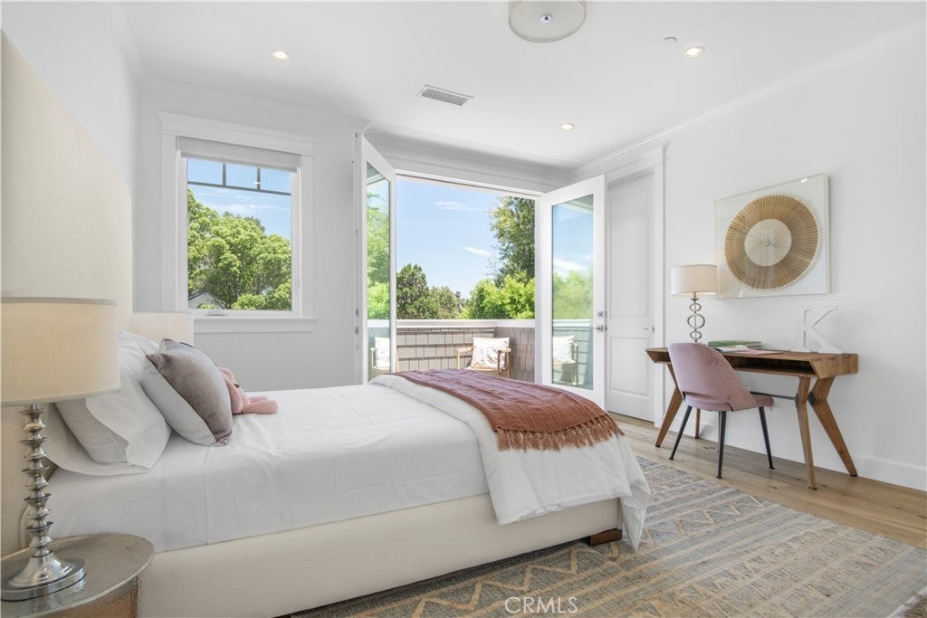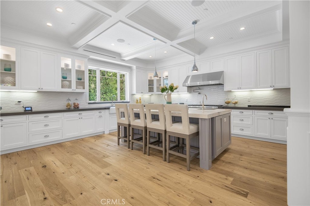 Set behind a gated entry and framed by a rose-lined walkway and mature landscaping, this Sherman Oaks estate offers an exceptional blend of privacy, scale, and indoor-outdoor living. Inside, soaring two-story ceilings, skylights, and oversized windows fill the home with natural light. Spanning nearly 4,500 square feet—larger than many newer builds—the floor plan is both functional and well-balanced, featuring formal living and dining rooms, a dedicated office, and an open-concept family room with sliding pocket doors that open directly to the backyard. The kitchen serves as the heart of the home, anchored by a large center island and outfitted with Thermador stainless steel appliances, a butler’s pantry with wine fridge, and a walk-in pantry—designed for both everyday use and entertaining. Outside, the backyard is set up for year-round enjoyment with a pool and spa with waterfall, a covered patio with fireplace, and a built-in Lynx barbecue, creating a seamless indoor-outdoor experience. Upstairs, the primary suite offers vaulted ceilings, a spa-style bath with soaking tub and seated vanity, a spacious walk-in closet, and a private balcony. Each of the four additional bedrooms includes its own ensuite bath and walk-in closet, with one bedroom conveniently located on the main level. Additional features include wide-plank wood flooring, crown molding, wainscoting, four fireplaces, and a Crestron smart home system controlling lighting, climate, security, and sound. The home is meticulously maintained and presents in like-new condition. Ideally located just minutes from Ventura Boulevard, this home offers convenient access to some of the area’s best dining, shopping, and everyday amenities, along with quick freeway connections and canyon routes to the Westside.