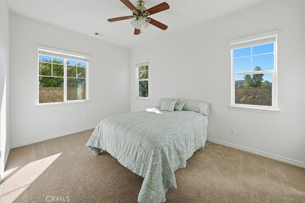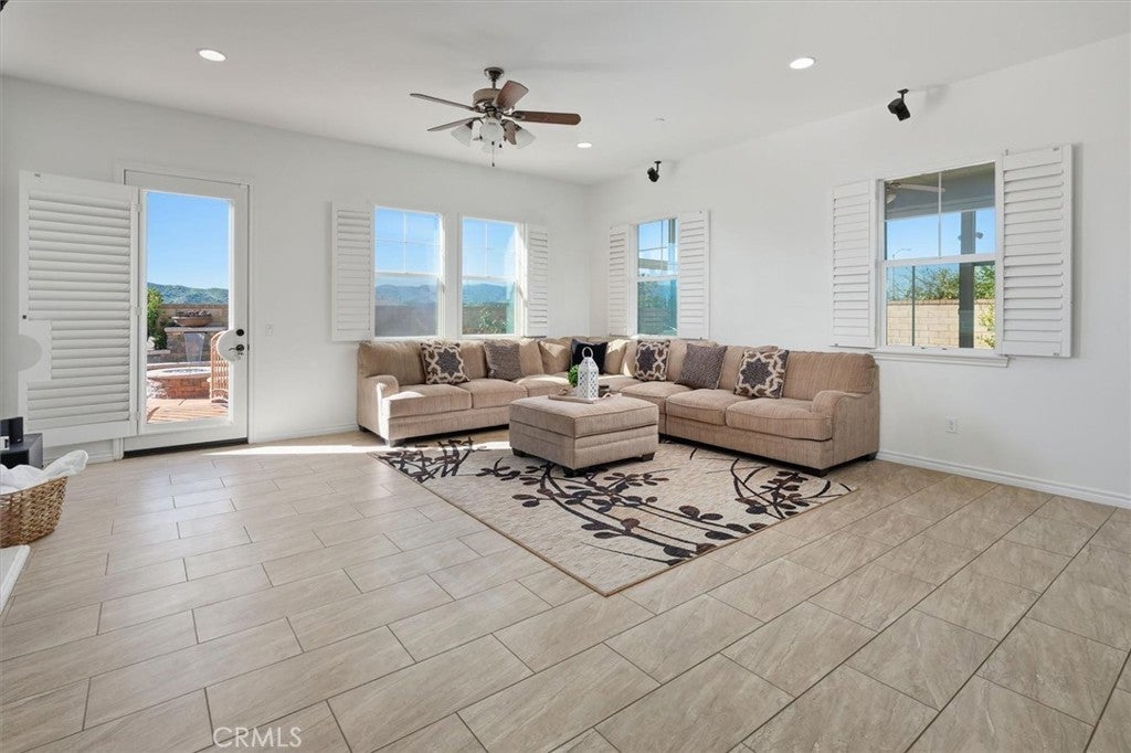 Welcome to this beautifully designed 6-bedroom, 4.5-bathroom home offering over 4,200 square feet of thoughtfully designed living space in the exclusive gated River Village community. With paid solar, flexible living areas, and inviting indoor-outdoor spaces, this home blends comfort, functionality, and entertainment. Inside, the open layout creates an easy flow between the living, dining, and kitchen areas—perfect for everyday living and hosting gatherings. The kitchen features double ovens, huge walk-in pantry, large island with seating for six and plenty of cabinet space. Family room features a fireplace and beautiful views of the surrounding area. Two downstairs bedrooms provide ideal flexibility for guests, multi-generational living, or a private home office. Upstairs, a spacious loft has been transformed into the ultimate entertainment space, featuring a projection screen, built-in surround sound system, blackout blinds, making it perfect for movie nights, game days, or relaxing evenings at home. The primary suite features gorgeous views, a retreat, en-suite bathroom with two walk in closet, double sinks and a soaking tub. There are 3 more bedrooms upstairs, one with an attached bathroom, making it mini primary suite. Laundry room is conveniently located upstairs with sink and large walk-in linen closet. An enclosed sunroom offers additional year-round living space and a wonderful place to relax or entertain while enjoying views of the backyard. Step outside to your private backyard retreat featuring incredible views of Santa Clarita, a water feature with fountains and firepit, creating a peaceful setting for outdoor gatherings or quiet evenings under the stars. Additional highlights include paid solar for energy efficiency and savings, a 3-car garage, and generous living space designed to accommodate modern lifestyles. Don’t miss the opportunity to own this exceptional home in a highly desirable gated Santa Clarita community. Schedule your private showing today.