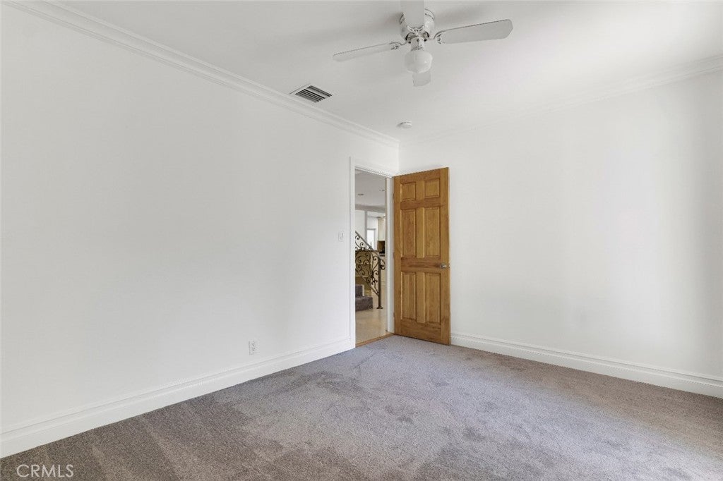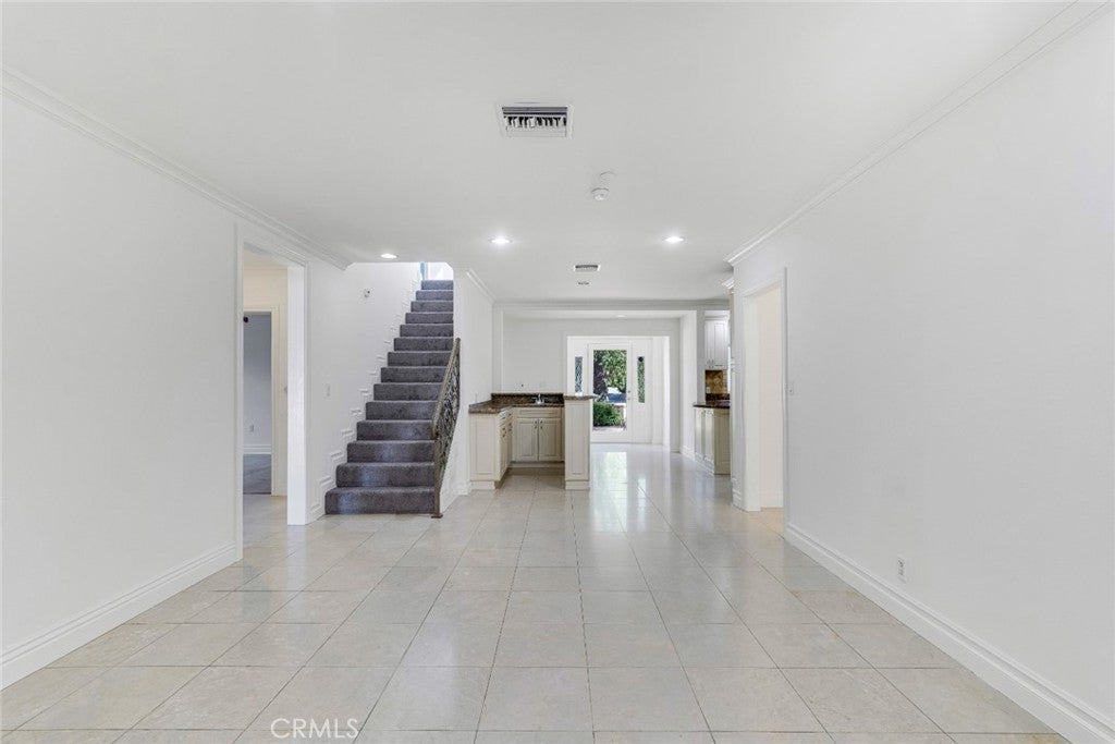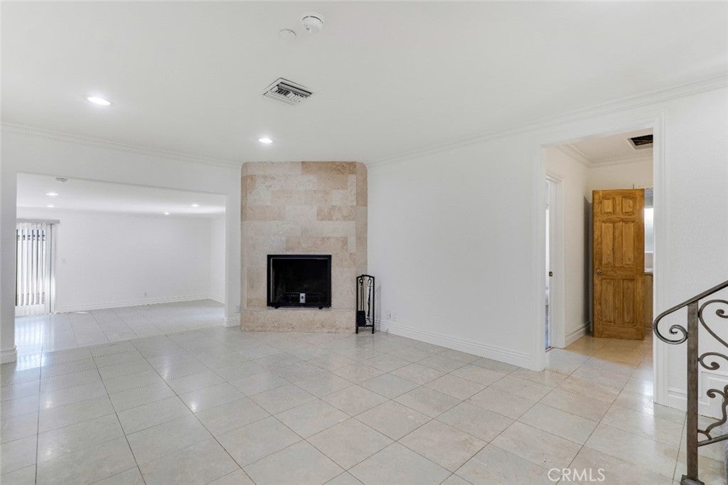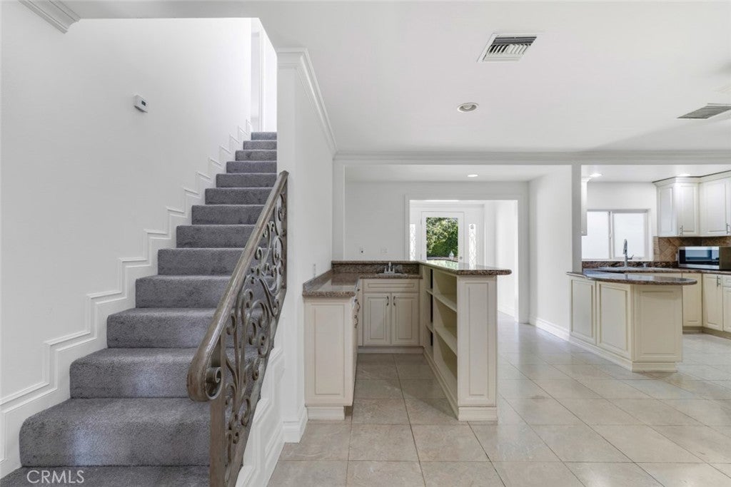 Located south of Ventura Boulevard in one of Woodland Hills’ most desirable residential pockets, this refreshed 4-bedroom, 3-bath, 2-story home blends inviting curb appeal with generous living space and a location that captures the best of the neighborhood. Appealing front landscaping, a curved tile walkway, and a classic Spanish tile roof create a memorable first impression, while inside, fresh paint, crown molding, and recessed lighting enhance the home’s warm, polished feel. The formal entry opens to spacious living areas that include a striking floor-to-ceiling fireplace, a full wet bar, tile flooring through the main entertaining spaces, and a step-down family room/den with ceiling fan and two French doors leading to the backyard. The inviting kitchen is well-equipped with Shaker-style cabinetry, contemporary hardware, granite counters, tile backsplash, and stainless steel appliances. The flexible layout includes three good sized bedrooms downstairs, one creating a private suite at one side of the house with a well-appointed ¾ bath, the other two on the other side, sharing a full hall bath. Upstairs is entirely the private primary suite; a spacious retreat with a large walk-in closet and an spa-like en-suite bath featuring a jetted tub and a separate walk-in shower. Outside, the backyard offers a generous tiled patio, grassy lawn area, planting beds, and a large shade tree, making it an ideal setting for relaxing, dining, or gathering with guests. An attached 2-car garage with direct access and laundry facilities adds everyday convenience. All of this is moments from the restaurants, cafés, and lively local energy of Ventura Boulevard, while still enjoying close proximity to the trails, open space, and natural beauty of the Santa Monica Mountains. Don’t miss out on this chance to make this your dream home!