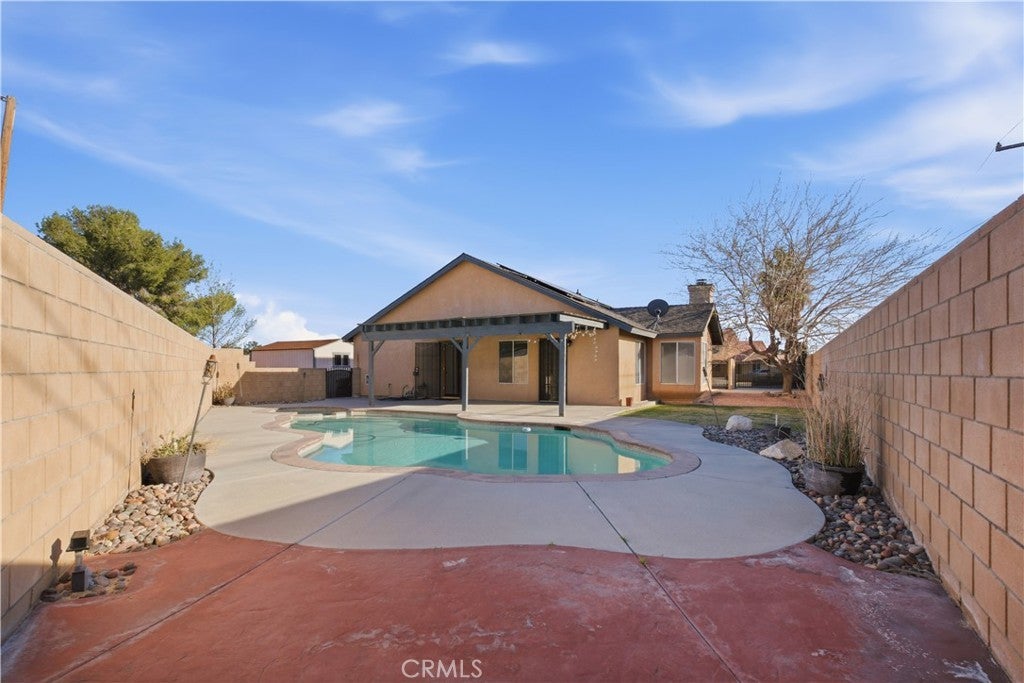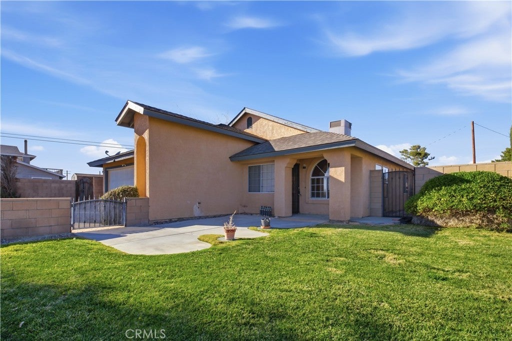 Step into this move in ready California City home where pride of ownership is evident from the moment you arrive. Known as one of the nicest landscaped homes in the area, the property offers outstanding curb appeal with lush green grass, a gated front yard, and an inviting front porch that's perfect for relaxing with your morning coffee. The home's layout provides access to a spacious side yard with additional grassy space that leads to a gated backyard oasis featuring a refreshing pool and spa, ideal for cooling off during the warm summer months or hosting family and friends. The property also offers RV access, adding extra convenience and flexibility. Inside, the home welcomes you with high ceilings, abundant natural light, and laminate flooring throughout the main living areas. The kitchen features updated countertops, a breakfast bar, creating a bright and open feel. Just off the kitchen is a comfortable family room with a cozy fireplace, perfect for relaxing evenings. In addition to the main living areas, the home includes a versatile den that can be used as a home office, playroom, or additional living space. The primary bedroom offers direct backyard access and a private bathroom, making it especially convenient after enjoying time in the pool. An indoor laundry room adds everyday convenience. Located with easy drive access to Edwards Air Force Base, this well-maintained home combines comfort, functionality, and outdoor enjoyment in a beautifully landscaped setting.
