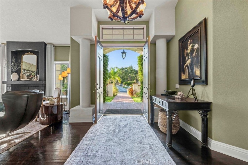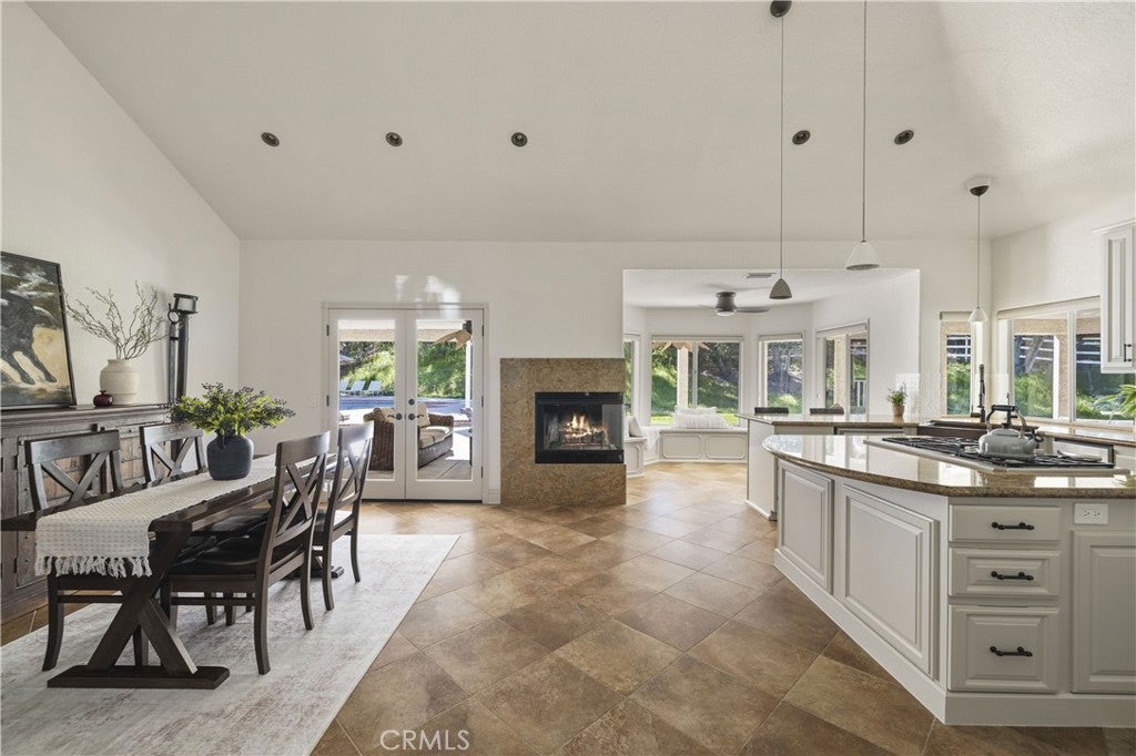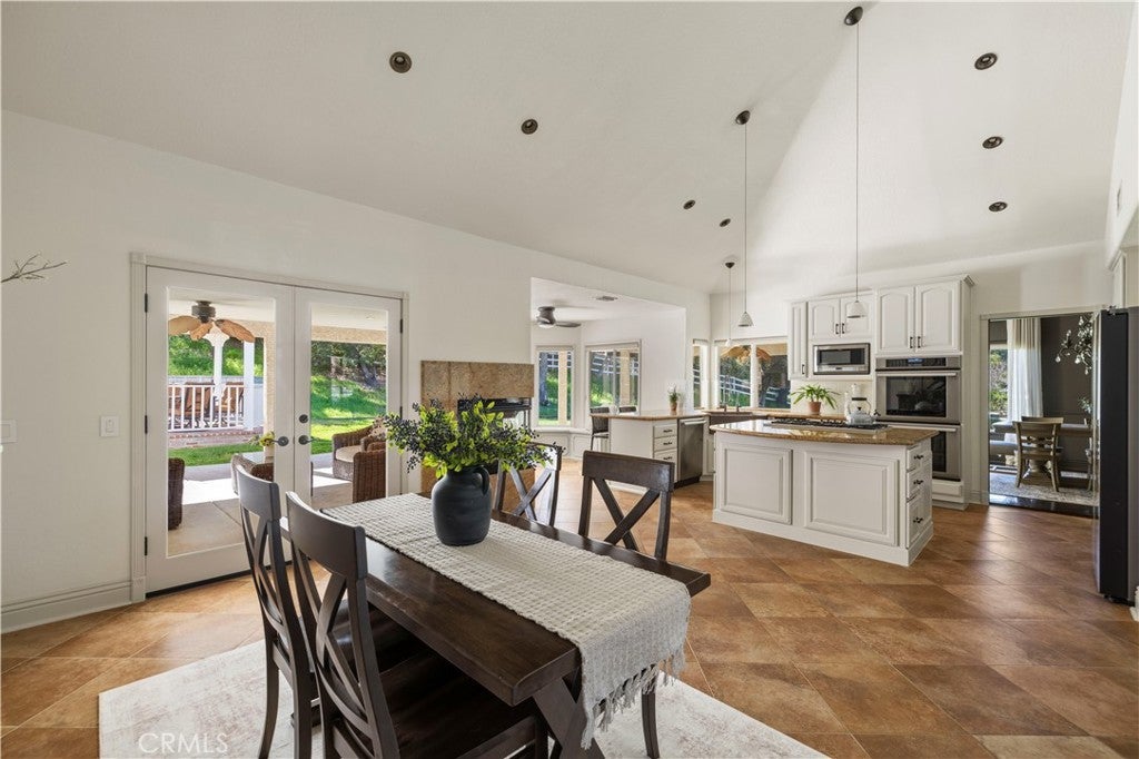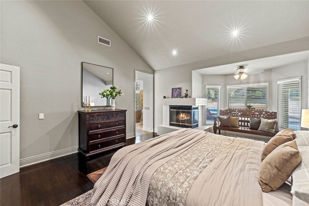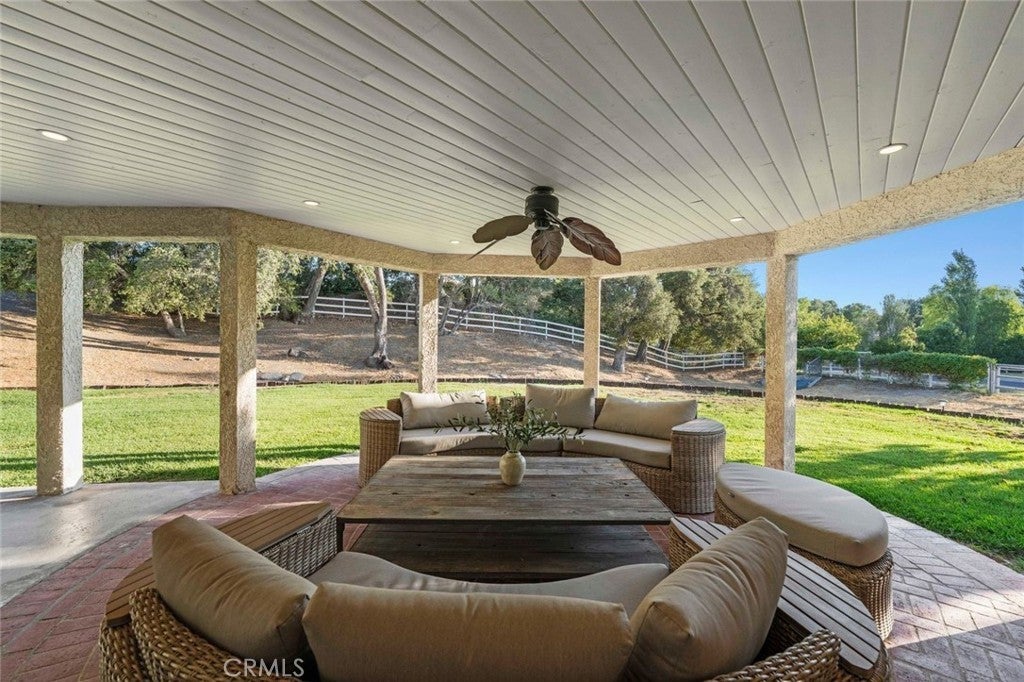 Welcome to one of the most desirable streets in all of Sand Canyon, located on a flat cul de sac within the sought after Crystal Springs Ranch community. Set on nearly one acre, this single story estate offers approximately 2,900 square feet with four bedrooms including a den that can easily function as a fourth bedroom, three full bathrooms, and a layout designed for both everyday living and entertaining. The home is filled with natural light and features high ceilings, wood floors, French doors, and three fireplaces that create a warm and inviting atmosphere. The refreshed kitchen serves as the heart of the home and has been thoughtfully arranged to create a spacious eat in gathering area, featuring stainless steel appliances, double ovens, granite countertops, a large center island with bar seating, a hammered copper farmhouse sink, bronze fixtures, and a charming breakfast nook with custom built in seating. The built in banquet seating includes hidden storage beneath the seats, adding both character and functionality. At the front of the home, the main living room offers an inviting space for relaxing or entertaining. Between two secondary bedrooms is a versatile flex space ideal for a study, work area, or lounge, with those bedrooms sharing a Jack and Jill bathroom, while the current den can easily function as a fourth bedroom and connects to a full bathroom, providing flexibility for guests, a home office, or multi generational living. The primary suite offers a retreat like setting with a door to the backyard and a spa inspired bathroom featuring custom cabinetry, elegant vanities, glass block details, a handcrafted hammered copper soaking tub, and a hidden walk in closet. The backyard creates a private entertainer’s setting with a sparkling pool and spa, full outdoor kitchen with built in barbecue and sink, permanent gazebo, and a large wraparound covered patio with ceiling fans that stretches nearly the length of the home, surrounded by mature oak trees and natural surroundings. Additional features include a three car garage, indoor laundry room, and space for potential RV parking. Crystal Springs Ranch offers a peaceful setting with a low HOA of approximately $150 per year and no Mello Roos while still being just minutes from shopping, dining, and freeway access in Santa Clarita.