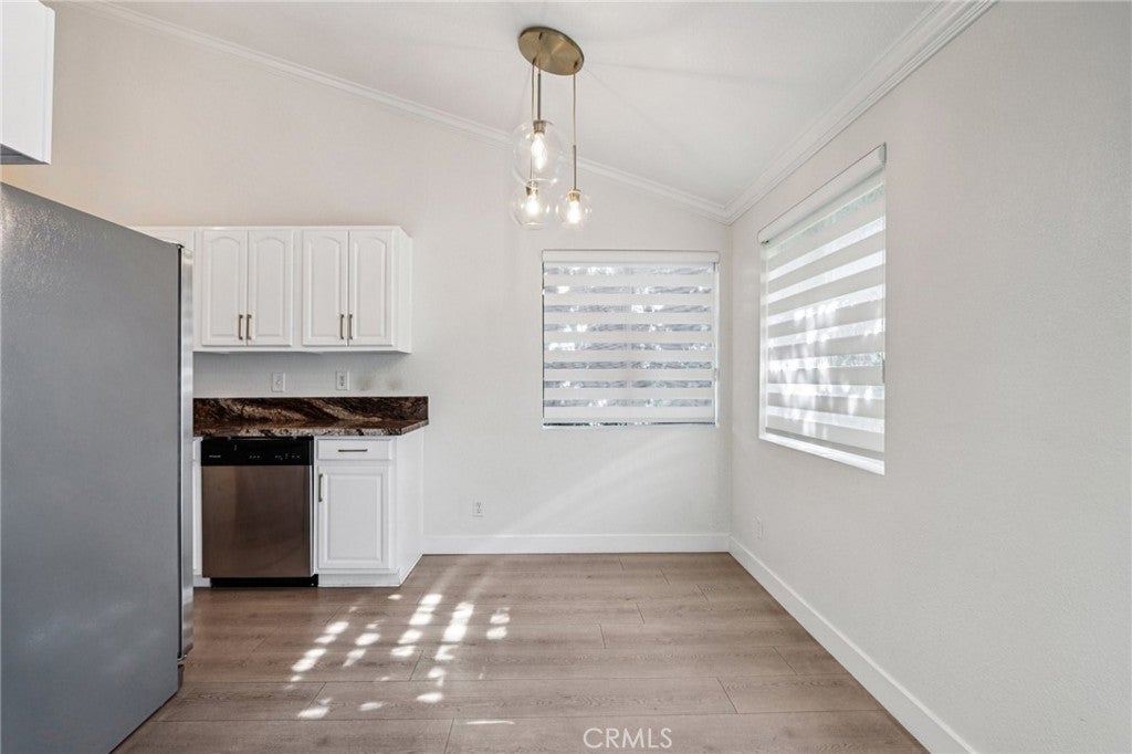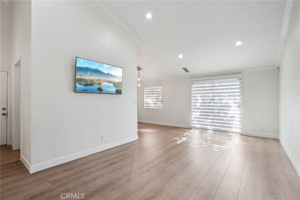 Beautifully remodeled condo located in desirable Van Nuys neighborhood. Features include 2 bedrooms and 1 bath, large living room with high vaulted ceilings, updated kitchen with granite counters and stainless steel appliances, laminated flooring, recessed lighting and crown moldings throughout, newer window treatments and freshly painted. Community offers pool and spa, two car enclosed garage and so much more.