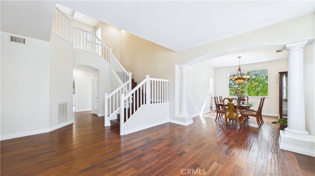 Nestled atop the desirable Northlake community, just moments away from Castaic Lake, this home has it all! Stepping inside you'll find a contemporary floor plan boasting soaring ceilings and ample natural light, freshly updated with fresh paint and brand new carpet throughout. The first floor, adorned with beautiful hardwood flooring, features spacious family, living, and dining rooms, as well as a downstairs bedroom and bathroom, complete with step-in shower. The second floor plays host to five more bedrooms, including the enormous primary suite complete with huge walk in closet, a spacious study, and access to a balcony that affords sweeping views. Stepping out back, you will find a sparkling, modern pool and spa. Completing this stunning home's list of amenities is a three car garage (one two car bay and one single car bay), and phenomenal energy savings thanks to *owned* solar!