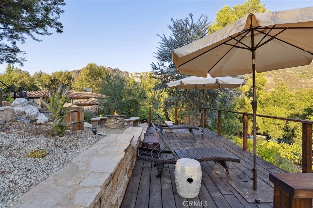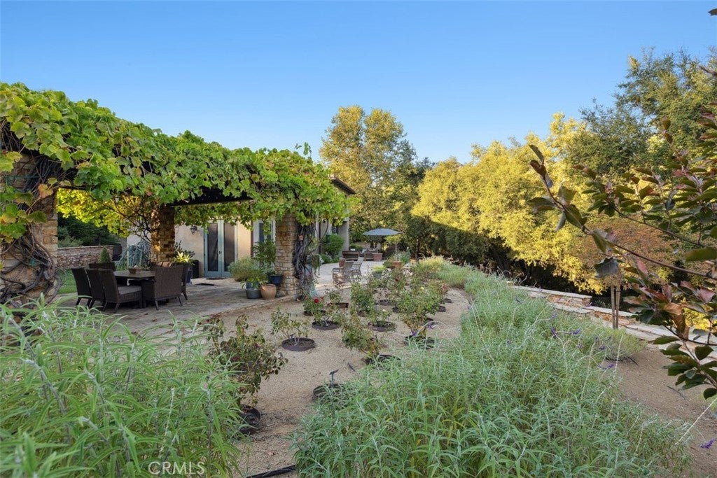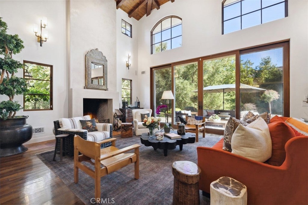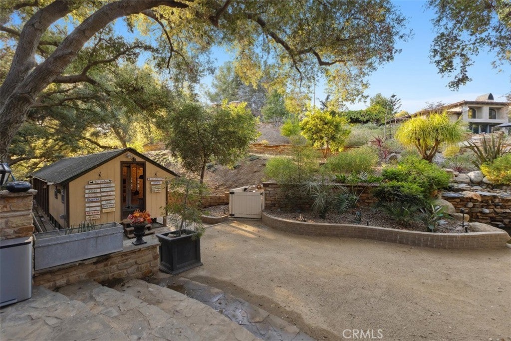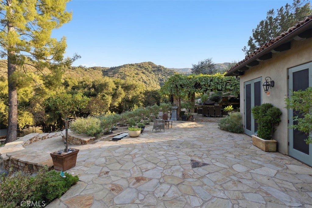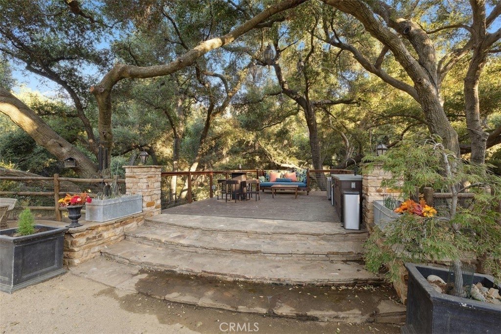 Welcome to “Hacienda de Roble”, A Timeless Custom Estate on 2 Acres of serene beauty. Nestled in the heart of nature, Set on 2 acres surrounded by majestic oak trees and rolling mountains, this one-of-a-kind property is a true sanctuary. A gated entrance and long circular driveway provide both security and ample parking space. Exquisite outdoor living by stepping outside to discover a variety of outdoor spaces. The flat, grassy yard is fully fenced, while stone patios, a vine-covered pergola, and a BBQ area set amidst lush botanical gardens creating the perfect backdrop for al fresco dining. Unwind in the outdoor hot tub, sip drinks at the wet bar by the creek, or gather around the fire pit for amazing sunsets. For the animal lovers, the property also includes small barns for goats, ducks, or chickens that enjoy a small flowing water feature. Designed by renowned architect Doug Burdge, the home’s architecture is dramatic and inspiring. The great room features cathedral wood-beamed ceilings, a striking herringbone brick fireplace, and walls of glass that offer expansive views of the property. The gourmet kitchen is a chef’s dream, boasting a massive natural stone island, Subzero refrigerator, Heston range, and Miele dishwashers. The adjacent bar area with a wine fridge and copper countertop is perfect for entertaining and butlers pantry with an additional refrigerator. A spacious family room flows seamlessly to one of the many outdoor patios, while an ensuite guest bedroom and multipurpose laundry room complete the main level. Luxurious primary suite ascend the custom tile and wood stairs to the private suite where vaulted wood-beamed ceilings, fireplace, leather tiled floors and a private balcony overlook the serene grounds. The spa like primary bath features designer wall coverings, a freestanding tub, separate shower and designer closet. Additional features include a cozy loft ideal for a library or play area, a Belvedere room with built in desks great for an office that looks out over the stunning estate. Recent updates include a newer roof, newer modern windows, and an updated HVAC system. For added peace of mind, the property is equipped with a Wi-Fi-enabled backup whole home generator. “Hacienda de Roble” is where nature and luxury converge, providing a serene and elegant living experience. This estate offers the perfect blend of privacy and elegance. Don’t miss the opportunity to own this exceptional home.