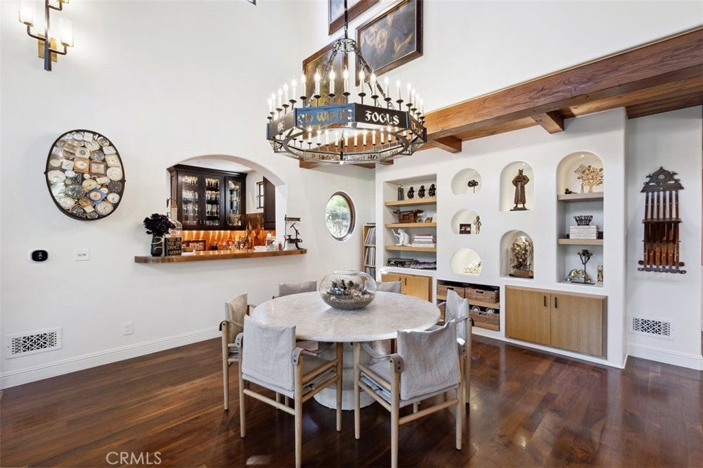 • Interior FeaturesBeamed Ceilings, Wet Bar, Breakfast Bar, Built-in Features, Cathedral Ceiling(s), High Ceilings, Open Floorplan, Pantry, Two Story Ceilings, Bedroom on Main Level, Loft, Primary Suite, Walk-In Closet(s), Bar, Entrance Foyer, Stone Counters
