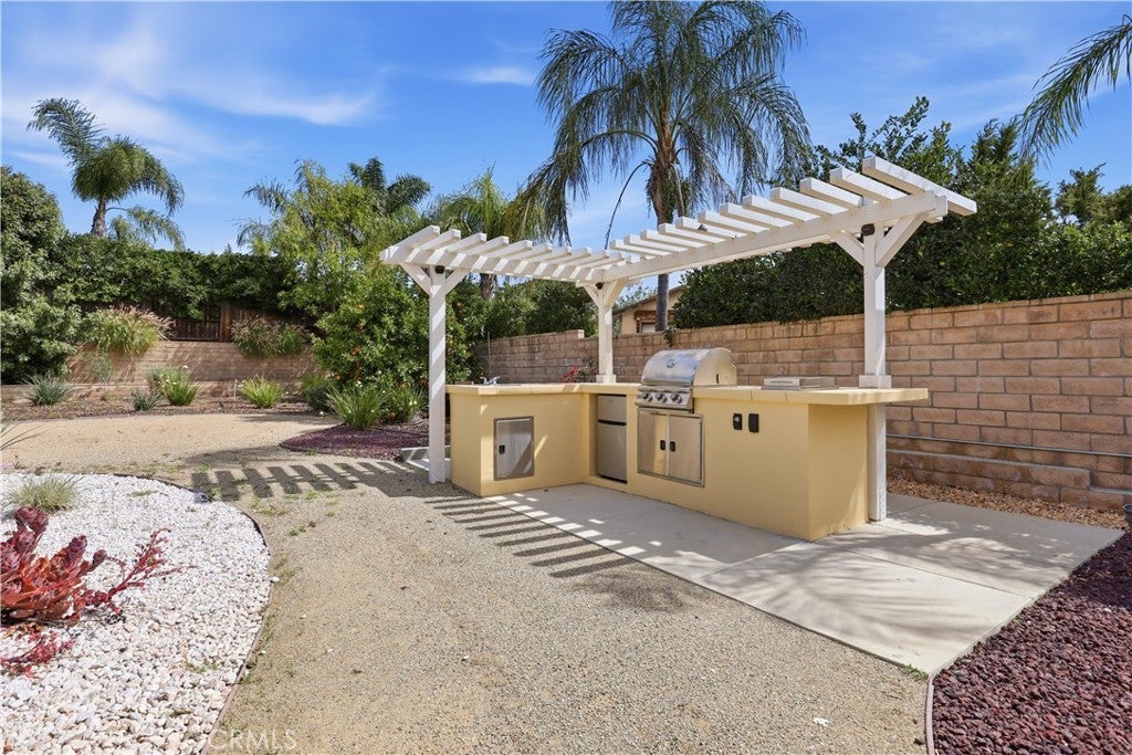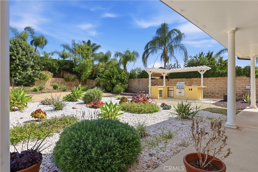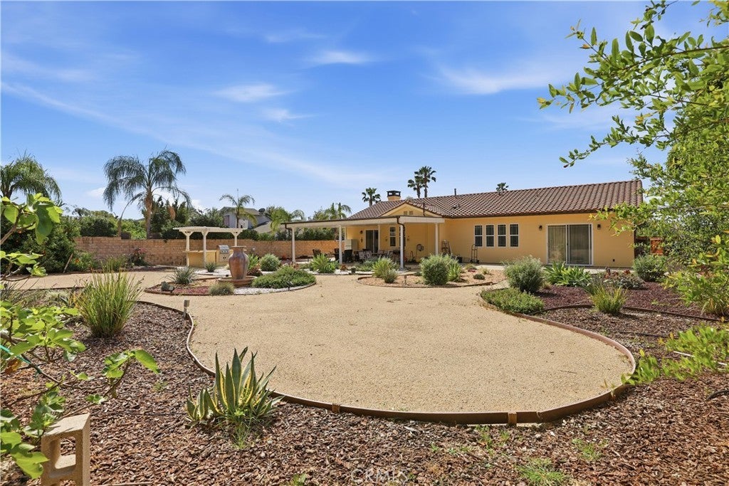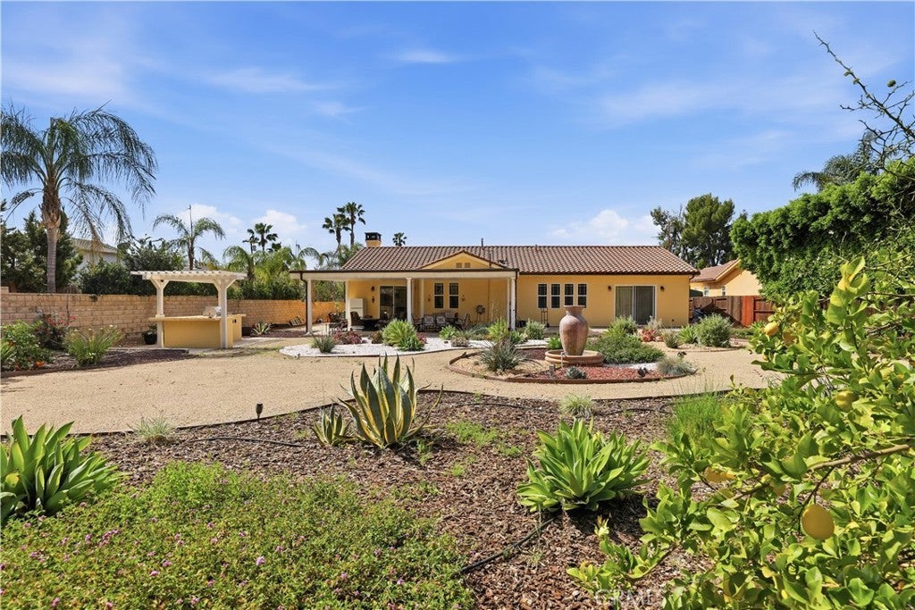 Honey! Stop the car! This Rancho Cascades Spanish-style gem checks all the boxes!! Offering the perfect blend of elegance, space, and functionality, this stunning 4-bedroom + office, 4.5-bath home spans approximately 3,260 sq. ft. and sits on nearly half an acre, showcasing a bright, gorgeous interior that is truly move-in ready. Enter through a striking iron door into a charming courtyard entry, creating a warm and inviting first impression. The versatile office/bonus room features its own private entrance off the courtyard—ideal for a home office, studio, or guest suite. As you step inside discover an open-concept floor plan with soaring ceilings, recessed lighting throughout, and expansive living spaces. The grand living room features a cozy fireplace, while the bright dining area offers seamless indoor-outdoor flow with sliding doors leading back to the courtyard. The chef’s kitchen is truly the heart of the home—generously sized and thoughtfully updated with sleek white cabinetry, granite countertops, stainless steel appliances, a custom refrigerator, oversized island, abundant counter space, and a walk-in pantry. The primary suite is privately situated on one wing of the home and offers a spacious retreat with sliding doors opening to the backyard. The luxurious en-suite bath includes dual vanities, a soaking tub, separate shower, and a large walk-in closet. On this side, you’ll also find an additional bedroom with its own full bathroom, along with the laundry room and extra storage. The opposite wing features two generously sized bedrooms, each with its own full bathroom, plus an additional half bath conveniently located off the hallway. Additional highlights include tile and laminate flooring throughout, dual zoned HVAC systems for efficient climate control, and an attached oversized 2-car garage. When you step out to the back yard you will fall in love with the beautifully designed backyard oasis. Enjoy a covered patio, low-maintenance landscaping, brick privacy fencing, and a built-in BBQ—perfect for relaxing or entertaining year-round. This massive property offers the best of California living. Call now to schedule your private showing!