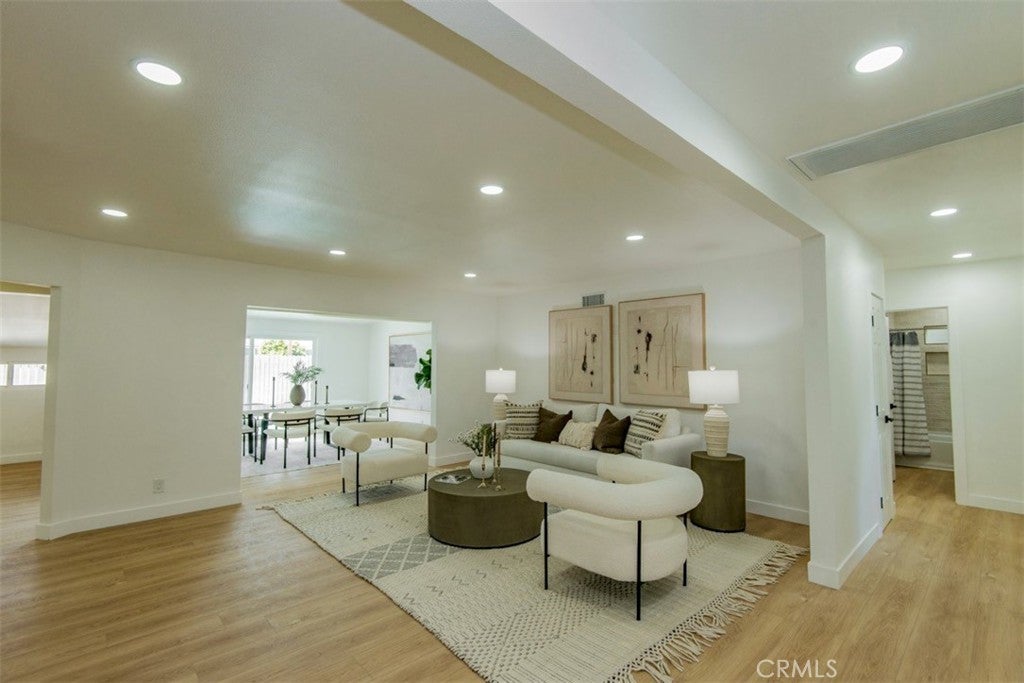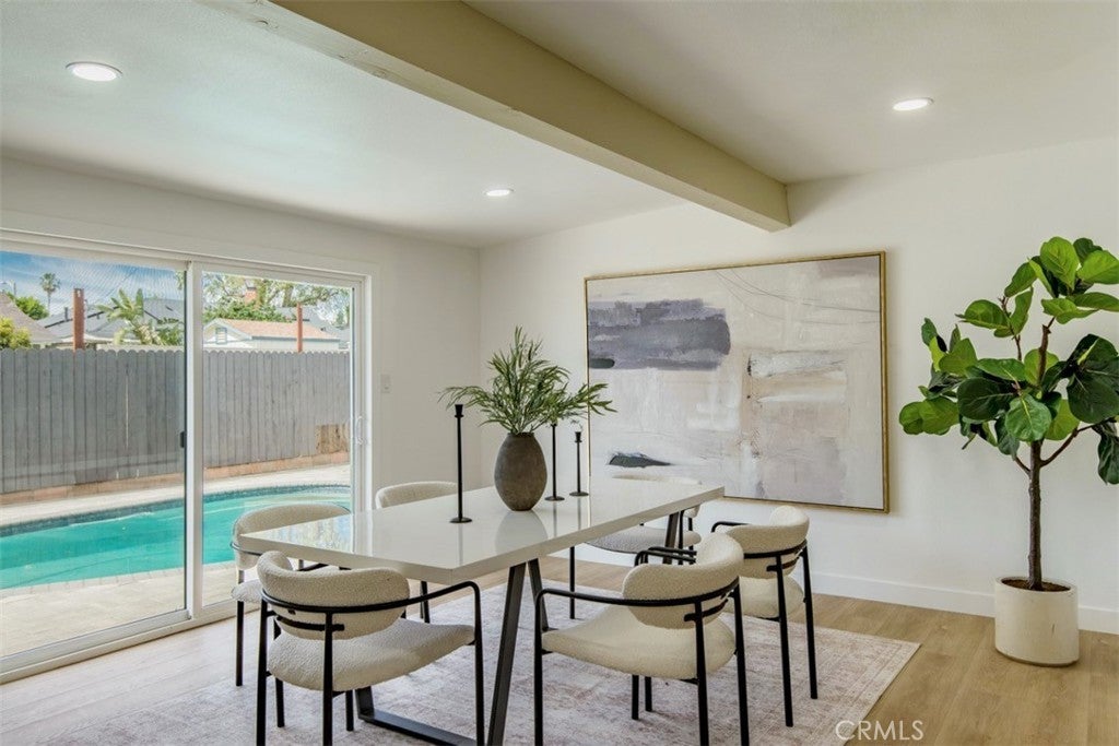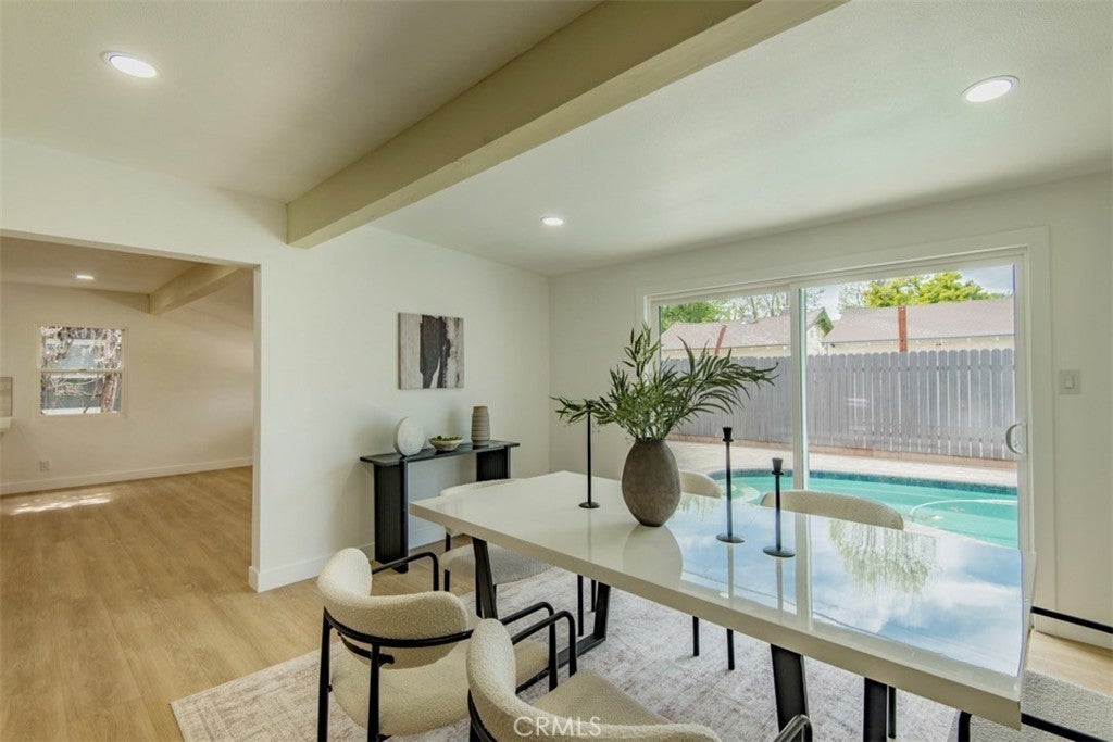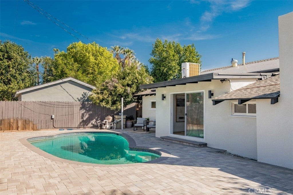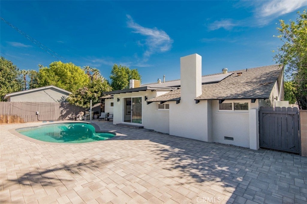 Welcome to this stunningly reimagined North Hills residence where classic character meets modern luxury. Completely renovated with thoughtful design and high-end finishes, this four-bedroom, three-bathroom home delivers the perfect balance of style, comfort, and functionality. Inside, an airy open-concept layout is filled with natural light and highlighted by striking beamed ceilings and expansive living spaces designed for both entertaining and everyday living. The show-stopping chef’s kitchen features warm oak cabinetry, quartz countertops, premium stainless-steel appliances, designer lighting, a spacious pantry, and a wine refrigerator — all flowing effortlessly into the dining and living areas centered around a beautiful fireplace. The primary suite is a private sanctuary featuring dual closets and a spa-inspired bathroom with a sleek walk-in shower, dual oak vanity, and designer tile finishes. Two additional bathrooms have been stylishly updated, while each bedroom offers generous space and abundant light. Sliding glass doors create seamless indoor-outdoor living, opening to a beautifully landscaped backyard with a sparkling pool at its center — the perfect setting for entertaining, relaxing, and enjoying Southern California living. Extensively upgraded throughout with new flooring, plumbing, electrical, sewer line, fully paid solar, HVAC, windows, doors, and fully renovated kitchen and baths and a spacious 2 car garage, this home offers turnkey living with lasting peace of mind. Conveniently located near CSUN, top schools, parks, hiking trails, and premier shopping and dining.