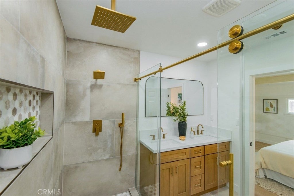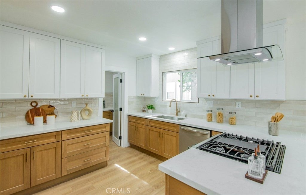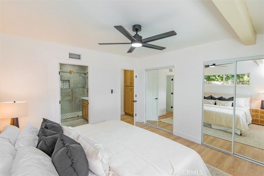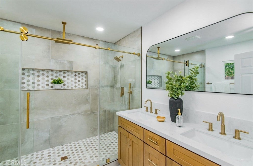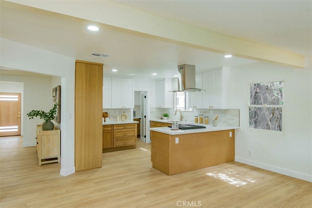 Welcome to this stunningly reimagined North Hills residence where classic character meets modern luxury. Completely renovated with thoughtful design and high-end finishes, this four-bedroom, three-bathroom home delivers the perfect balance of style, comfort, and functionality. Inside, an airy open-concept layout is filled with natural light and highlighted by striking beamed ceilings and expansive living spaces designed for both entertaining and everyday living. The show-stopping chef’s kitchen features warm oak cabinetry, quartz countertops, premium stainless-steel appliances, designer lighting, a spacious pantry, and a wine refrigerator — all flowing effortlessly into the dining and living areas centered around a beautiful fireplace. The primary suite is a private sanctuary featuring dual closets and a spa-inspired bathroom with a sleek walk-in shower, dual oak vanity, and designer tile finishes. Two additional bathrooms have been stylishly updated, while each bedroom offers generous space and abundant light. Sliding glass doors create seamless indoor-outdoor living, opening to a beautifully landscaped backyard with a sparkling pool at its center — the perfect setting for entertaining, relaxing, and enjoying Southern California living. Extensively upgraded throughout with new flooring, plumbing, electrical, sewer line, fully paid solar, HVAC, windows, doors, and fully renovated kitchen and baths and a spacious 2 car garage, this home offers turnkey living with lasting peace of mind. Conveniently located near CSUN, top schools, parks, hiking trails, and premier shopping and dining.