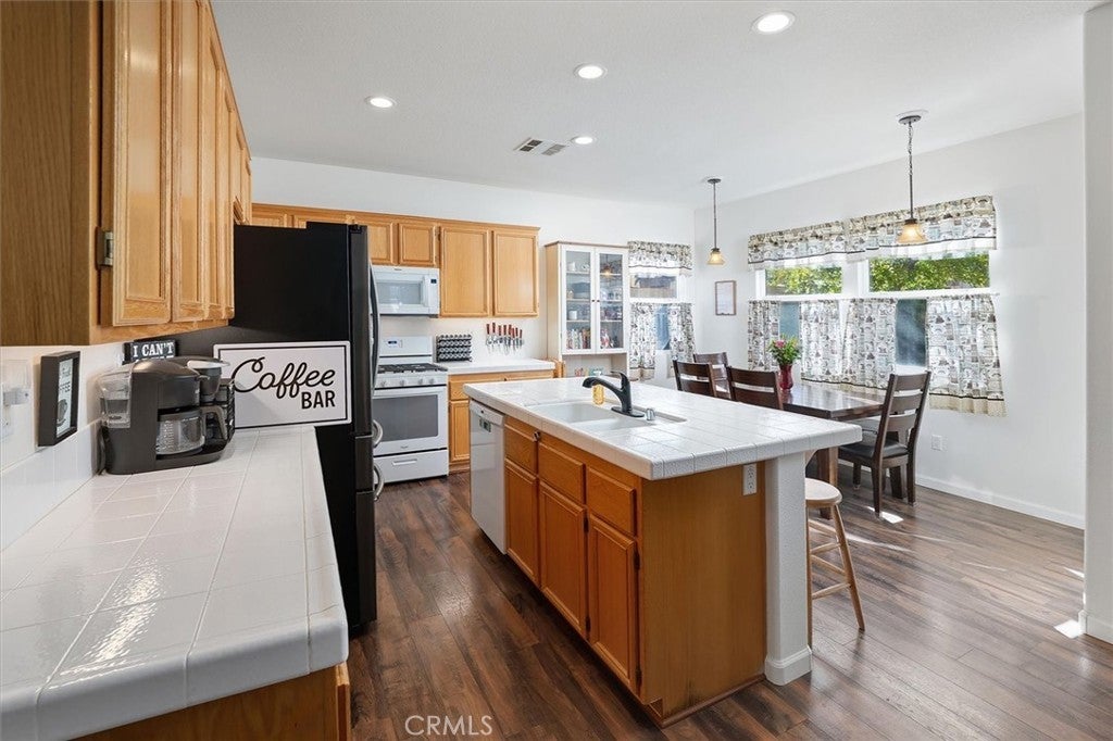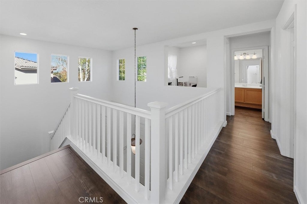 Welcome to this beautifully designed home in the highly sought-after Plum Canyon St. Clare neighborhood! NO MELLO ROOS! Offering 3 spacious bedrooms with a 4TH bedroom option DOWNSTAIRS (just add a closet), this versatile floor plan is perfect for growing families, guests, or a home office.Step inside to an open-concept great room featuring a seamless flow between the kitchen, dining area, breakfast counter, center island, and family room—ideal for both everyday living and entertaining. Luxury plank vinyl flooring runs throughout the home, complemented by an abundance of windows that fill the space with natural light.Upstairs, you’ll find a generously sized primary suite complete with a walk-in closet, along with two additional well-proportioned bedrooms and a convenient desk niche—perfect for work or study. The upstairs laundry room adds everyday ease and functionality.Enjoy outdoor living in the picturesque backyard, featuring a covered patio with ceiling fan, grassy area, and lush landscaping—perfect for relaxing or hosting gatherings with a peek-a-boo view of the surrounding hills. An attached generator is included, providing added peace of mind.Residents of this desirable community enjoy fantastic amenities including a pool, spa, basketball court, park, and playground—all just minutes from shopping, grocery stores, casual and fine dining, and everyday conveniences.This home truly offers comfort, flexibility, and a prime location—don’t miss the opportunity to make it yours!