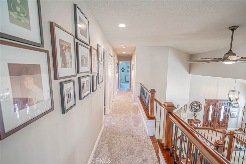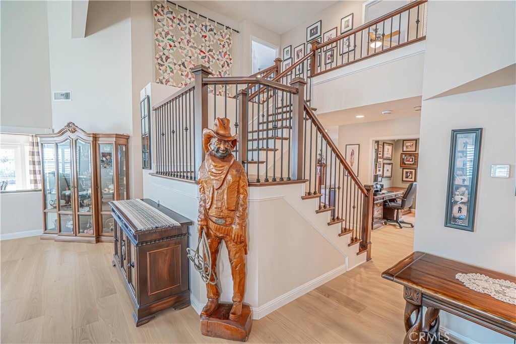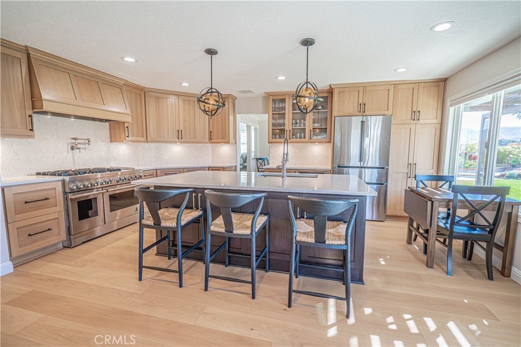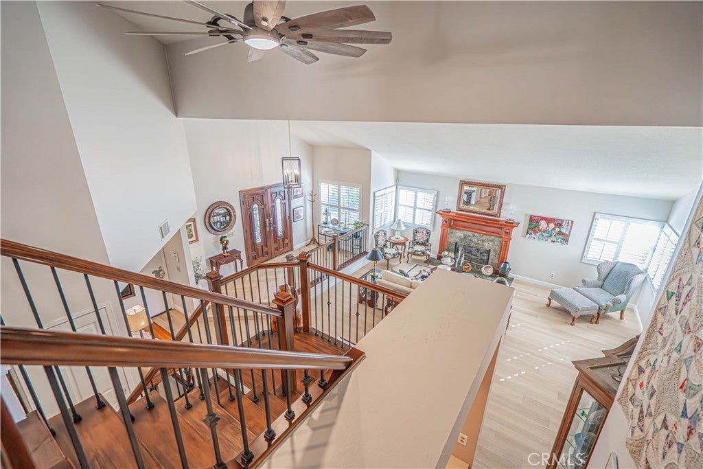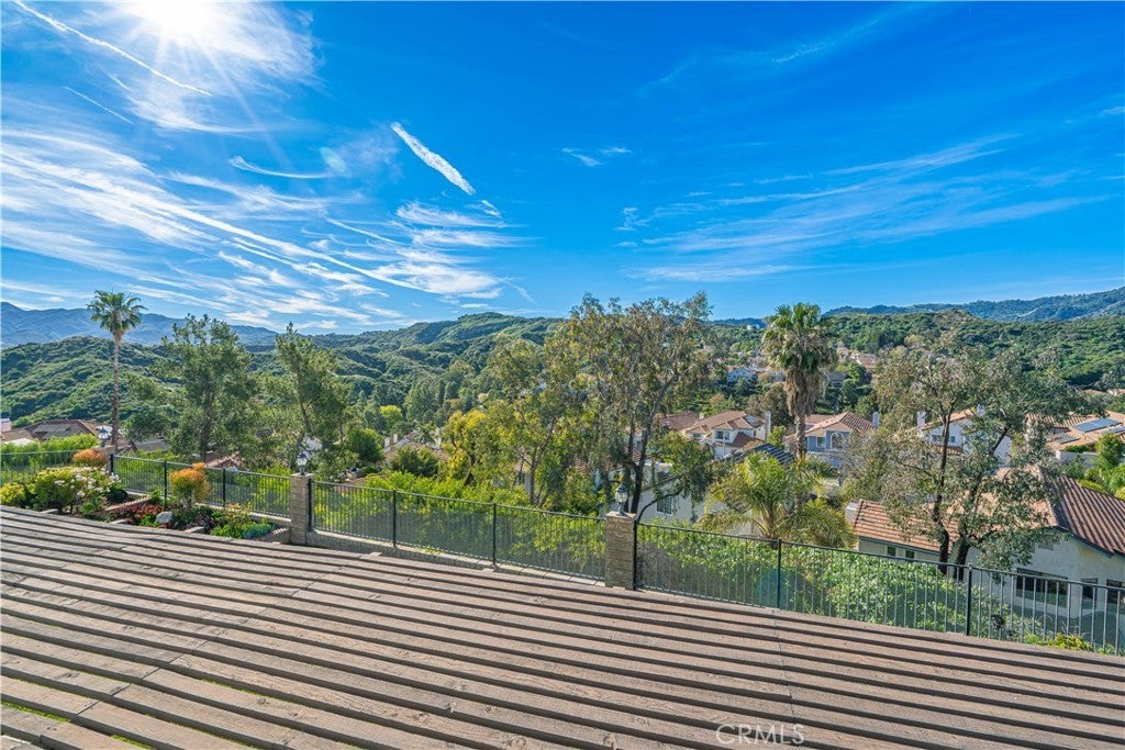 First time ever on the market, this original owner updated and remodeled Plan 5 view residence is ideally located at the top of the hill on a rare double cul-de-sac in the highly sought-after Hidden Valley community. Offering privacy, flexibility, and generous living spaces, the home features 4 bedrooms plus a main floor office with adjacent full bathroom, ideal for guests, multi-generational living, or potential fifth bedroom use. A spacious secondary suite with its own en-suite bathroom adds exceptional versatility and could function as next-gen living space, private retreat, bonus room, or potential ADU-style setup for extended family. Expansive living and family rooms provide impressive gathering areas and both showcase real wood-burning fireplaces that bring warmth and timeless character. The remodeled and thoughtfully reconfigured kitchen is designed for modern living and entertaining, featuring newer cabinetry, quartz countertops, stainless steel JennAir and Bosch appliances, pot filler, oversized center island with breakfast bar and storage on both sides, and a convenient butler’s pantry. The bright reconfigured formal dining room enhances the home’s overall flow and functionality. Quality upgrades throughout include updated vinyl dual-pane windows with plantation shutters, recessed lighting, freshly painted exterior stucco and trim, updated garage doors, wood flooring throughout the lower level, recently replaced dual HVAC systems, alarm system, and energy-efficient owned solar panels prepaid through 2038 with backup battery. The expansive primary suite captures beautiful hillside and neighborhood views and features a remodeled spa-inspired bathroom with freestanding soaking tub, oversized walk-in shower, dressing counter, dual vanities, and custom tile finishes. An elegant wood staircase with wrought iron railing adds architectural appeal. The private view backyard offers a covered patio and ideal space for relaxing or entertaining. Residents enjoy outstanding HOA amenities including community pool and spa, tennis and pickleball courts, scenic trails, playground areas, and gated RV or boat storage subject to availability. Ideally situated just minutes to the southernmost Santa Clarita Valley access to Interstate 5, approximately 15 miles to the San Fernando Valley, Burbank studios, and just 36 miles to LAX.