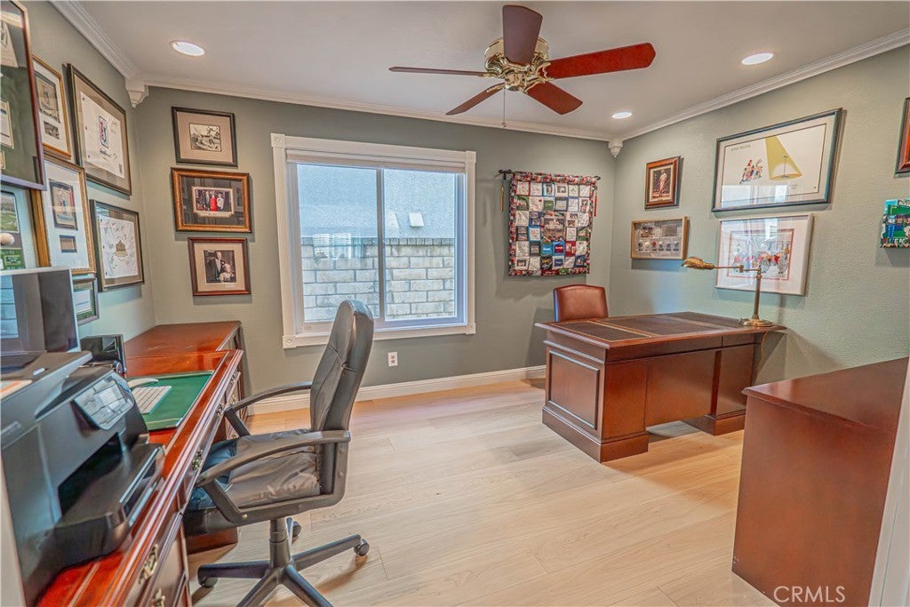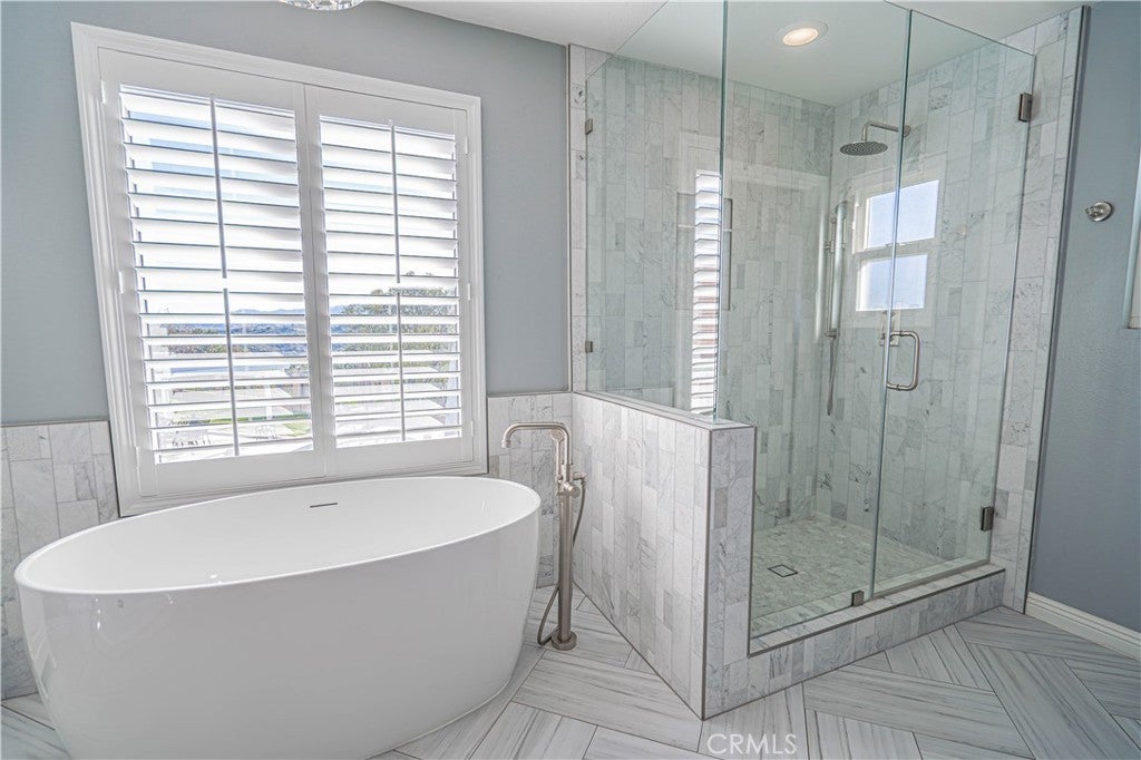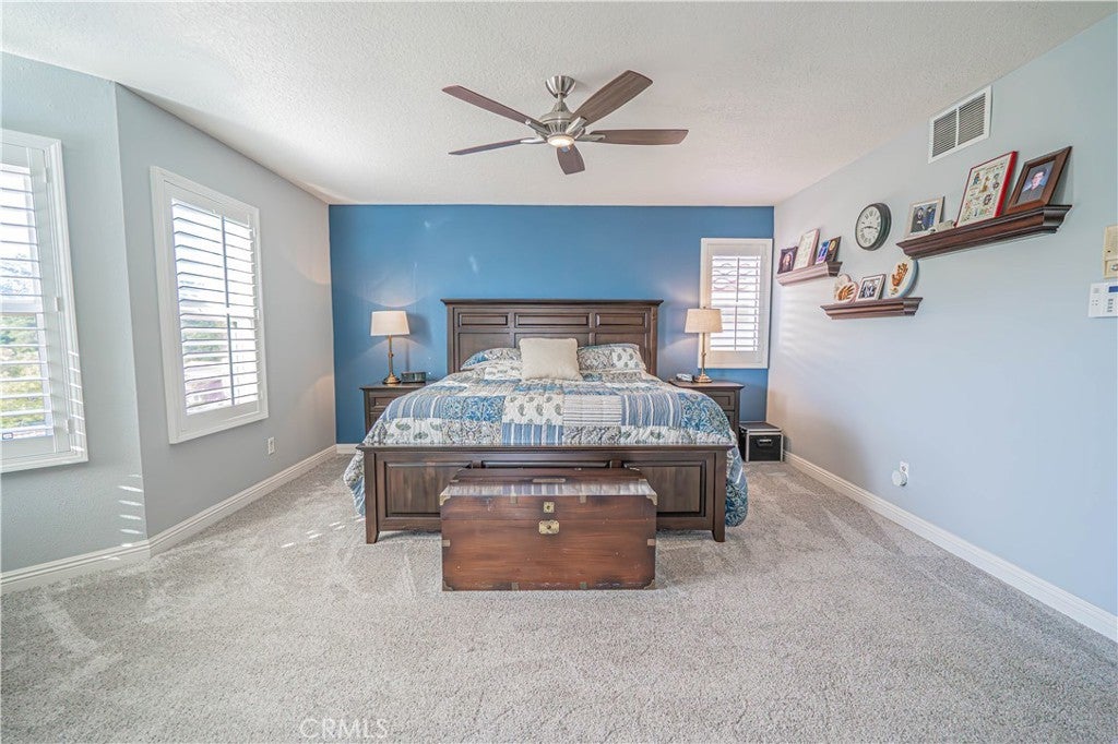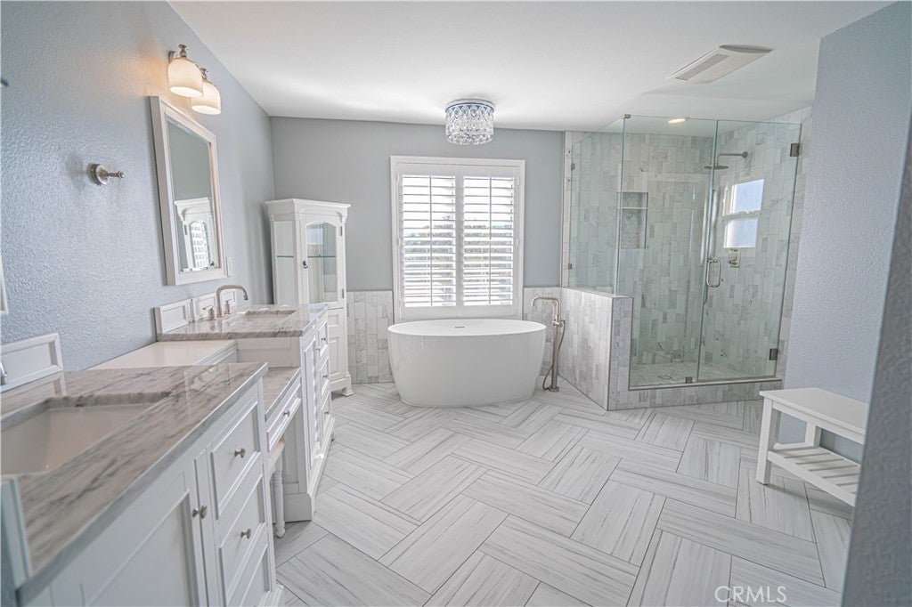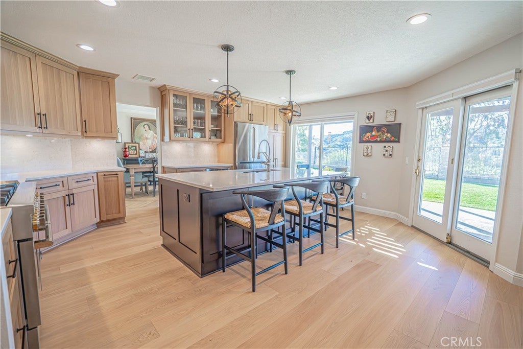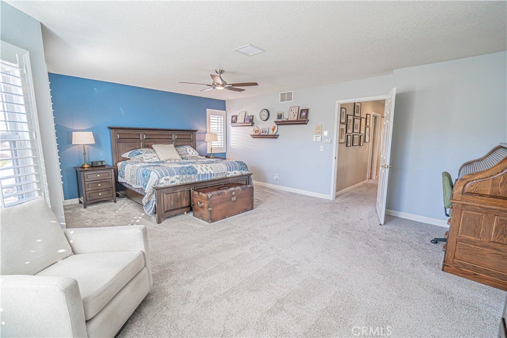 First time ever on the market, this original owner updated and remodeled Plan 5 view residence is ideally located at the top of the hill on a rare double cul-de-sac in the highly sought-after Hidden Valley community. Offering privacy, flexibility, and generous living spaces, the home features 4 bedrooms plus a main floor office with adjacent full bathroom, ideal for guests, multi-generational living, or potential fifth bedroom use. A spacious secondary suite with its own en-suite bathroom adds exceptional versatility and could function as next-gen living space, private retreat, bonus room, or potential ADU-style setup for extended family. Expansive living and family rooms provide impressive gathering areas and both showcase real wood-burning fireplaces that bring warmth and timeless character. The remodeled and thoughtfully reconfigured kitchen is designed for modern living and entertaining, featuring newer cabinetry, quartz countertops, stainless steel JennAir and Bosch appliances, pot filler, oversized center island with breakfast bar and storage on both sides, and a convenient butler’s pantry. The bright reconfigured formal dining room enhances the home’s overall flow and functionality. Quality upgrades throughout include updated vinyl dual-pane windows with plantation shutters, recessed lighting, freshly painted exterior stucco and trim, updated garage doors, wood flooring throughout the lower level, recently replaced dual HVAC systems, alarm system, and energy-efficient owned solar panels prepaid through 2038 with backup battery. The expansive primary suite captures beautiful hillside and neighborhood views and features a remodeled spa-inspired bathroom with freestanding soaking tub, oversized walk-in shower, dressing counter, dual vanities, and custom tile finishes. An elegant wood staircase with wrought iron railing adds architectural appeal. The private view backyard offers a covered patio and ideal space for relaxing or entertaining. Residents enjoy outstanding HOA amenities including community pool and spa, tennis and pickleball courts, scenic trails, playground areas, and gated RV or boat storage subject to availability. Ideally situated just minutes to the southernmost Santa Clarita Valley access to Interstate 5, approximately 15 miles to the San Fernando Valley, Burbank studios, and just 36 miles to LAX.