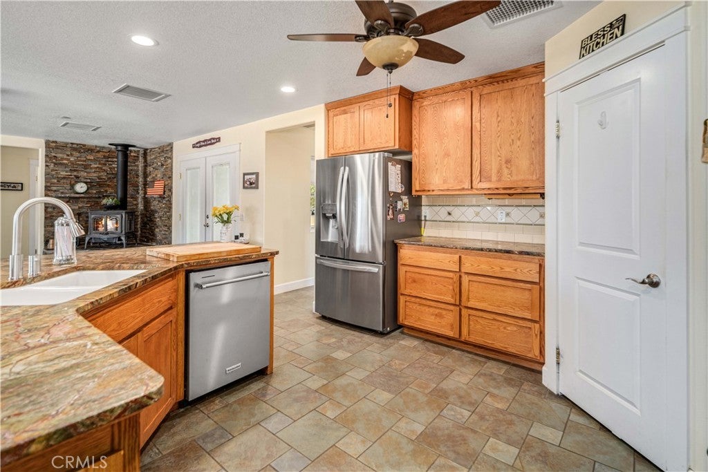 • Interior FeaturesBreakfast Bar, Ceiling Fan(s), Open Floorplan, Pantry, Stone Counters, Recessed Lighting, All Bedrooms Down, Walk-In Closet(s), Storage