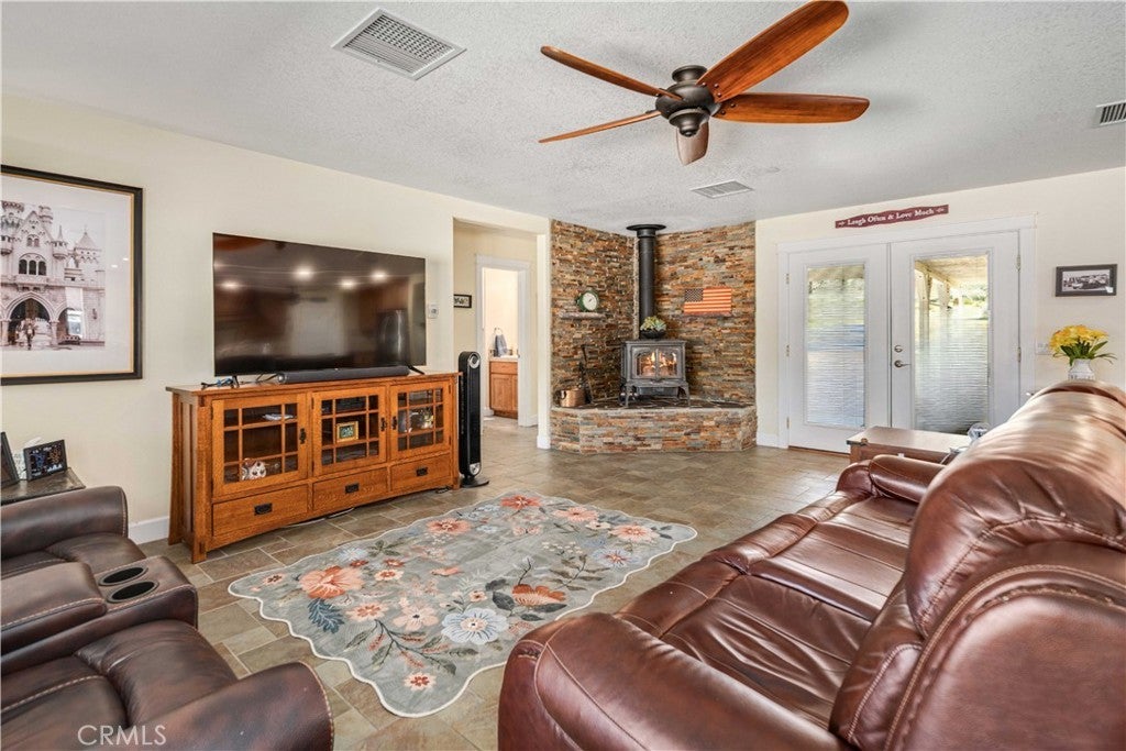 20-acre custom Craftsman ranch in a secluded Kings Canyon community with three separate APNs. Surrounded by mature pines and natural beauty, this peaceful retreat offers privacy, space and endless potential. Inside, the living, dining, kitchen & hallway areas feature tile flooring for durability & easy care. The spacious living room centers around a wood-burning stove on a flagstone hearth with stacked-stone surround, adding warmth and character. The kitchen offers generous workspace & storage, including a spacious pantry & center island w/Brazilian Rain Forest marble countertop & Kohler double sink. A standout feature is the Capital 48-inch professional range, six burners, griddle & double ovens, plus a pot filler, ideal for cooking or entertaining. Abundant cabinetry & counter space provide excellent storage & the vent hood is designed to match the wood cabinetry for a cohesive look. All appliances remain, including the refrigerator. All bedrooms feature neutral sculpted carpet & ceiling fans for comfort. The primary bedroom is located on one side of the home, while the two additional bedrooms & guest bath are on the other, providing added privacy. The primary suite includes a large walk-in closet and French doors opening to the covered patio. The primary bath features a dual-sink tiled vanity & tiled shower. The guest bath offers a tiled vanity w/backsplash, tub/shower combination & a convenient linen closet. The laundry room features tile flooring, abundant cabinetry, a folding counter & space for an additional refrigerator or freezer. The washer, dryer & stand-up freezer are included. A door provides direct outdoor access, making it convenient for cleaning up after outdoor work or activities. Additional features include central heat & air, a ducted evaporative cooler, tankless water heater, recessed lighting & attic access. The home is also generator-ready, capable of powering the TV, internet, refrigerator, lights & fans. Outside, the property offers chain-link fencing, carport parking & wide-open space to enjoy the surrounding canyon landscape. The home sits on one 5-acre parcel. A second 5-acre parcel already has a water meter, power transformer & graded pad ready for a future homesite. The third parcel offers 10 acres set higher on the hill with sweeping panoramic views. With three parcels included, the property provides flexibility to build additional homes, sell parcels separately, or enjoy the full 20 acres as a private ranch retreat.