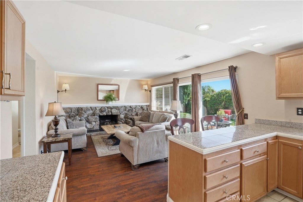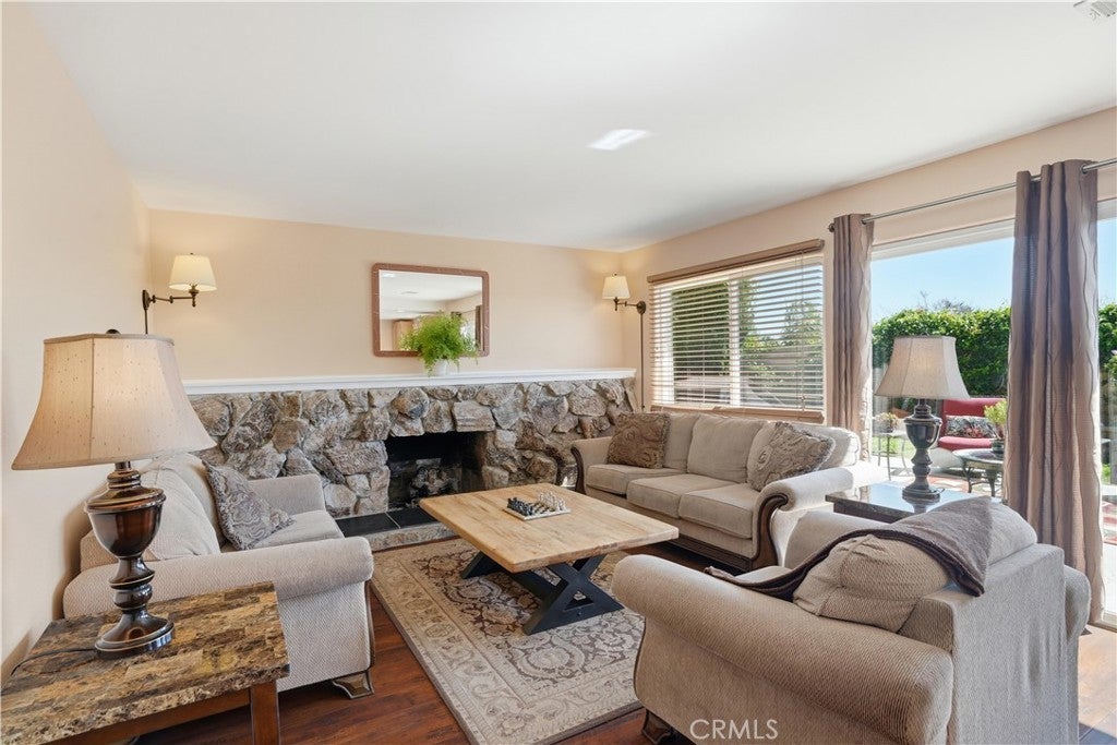 Welcome to this gorgeous 2-story View Home, tucked away on a large sweeping corner lot, located in a prime "Simi Valley" neighborhood. Upon entry, you're welcomed with a double door entry showcasing soaring ceilings & beautiful designer tile/wood laminate floors that flow throughout. The inviting living room is highlighted with smoothly finished ceilings & lots of natural light. The cook's kitchen is equipped with neutral cabinets, stone countertops, and an eating area that opens to the cozy family room featuring a beautiful stone fireplace & walls of glass overlooking the private backyard. The elegant primary suite offers high ceilings, a walk-in closet, a private balcony with gorgeous panoramic views & an ensuite bathroom that includes ungraded tile floors, a decorative vanity & walk-in shower. The spacious secondary bedrooms are adjacent to the tastefully upgraded hallway bathroom. Step outside and enjoy your private outdoor living area with a wrap-around backyard featuring rolling green grass offering plenty of room to entertain your family & friends. Additional highlights include an upgraded HVAC System, downstairs HOME OFFICE/5th bedroom, new interior paint, modern fixtures & hardware, large driveway with RV parking & finished 3 car garage, partially CONVERTED TO A HUGE BONUS ROOM. This GEM is the one you've been waiting for!