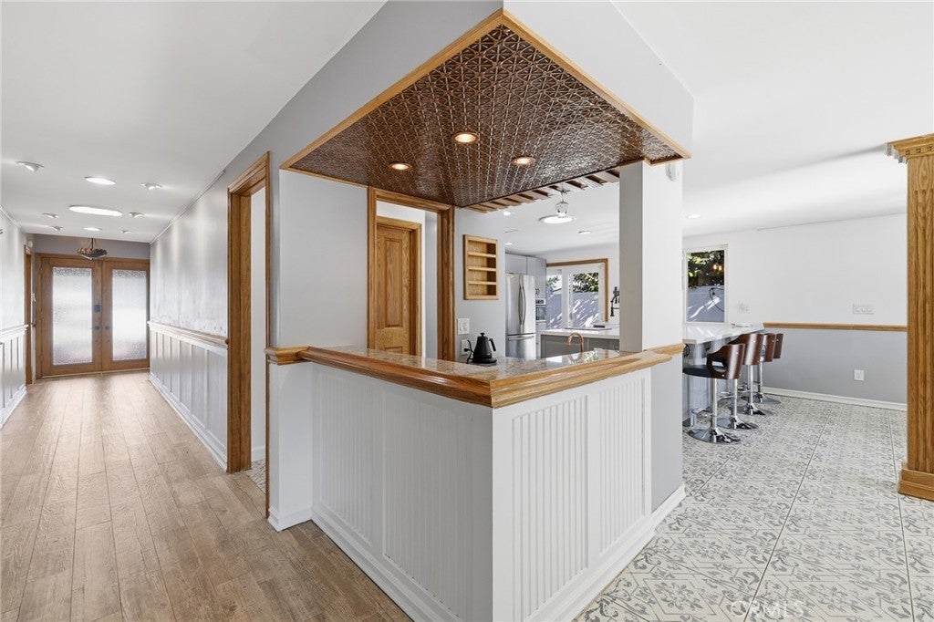• Interior FeaturesWet Bar, Breakfast Bar, Chair Rail, Ceiling Fan(s), Separate/Formal Dining Room, Eat-in Kitchen, Open Floorplan, Paneling/Wainscoting, Quartz Counters, Recessed Lighting, Storage, Bar, All Bedrooms Down, Bedroom on Main Level, Main Level Primary, Primary Suite