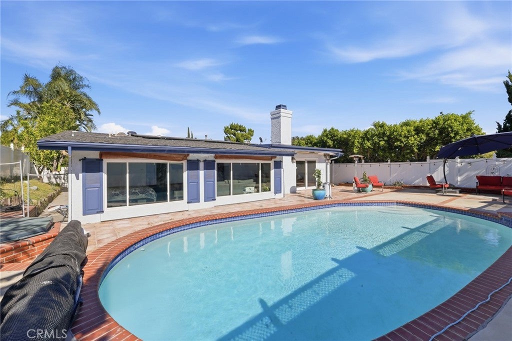 Welcome to this REMODELED SINGLE-STORY POOL HOME located north of Rinaldi in the highly desirable Granada Hills community. Situated on a 7,845 sqft lot, this 4-bedroom, 3-bathroom residence offers 2,097 sqft of living space with a bright, open floor plan ideal for both everyday living and entertaining. Recent upgrades include dual-pane windows, copper plumbing, recessed lighting, an upgraded electrical panel, artificial turf, remodeled bathrooms, steam shower, and a FULLY PAID-OFF solar system for enhanced energy efficiency. The updated kitchen features stainless steel appliances, a farmhouse sink, and a center island, seamlessly connecting to the main living areas. The spacious primary suite includes an newly remodeled en-suite bathroom with a state of the art steam shower. Additional highlights include a dedicated laundry room, an attached two-car garage with direct access, and a smart water monitor and shutoff system by Moen (this secures your plumbing against leaks and enables water conservation by monitoring usage in real-time) Conveniently located just minutes from the 405, 118, 5, 210, and 14 freeways and near highly regarded schools including Granada Hills Charter High School, Robert Frost Middle School, El Oro Way Charter for Enriched Studies, and Van Gogh Charter School. Outdoor enthusiasts will appreciate being close to O'Melveny Park and Bee Canyon Park, which offer scenic hiking trails, outdoor recreation, and beautiful mountain and sunset views.