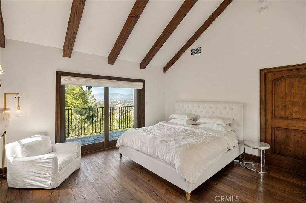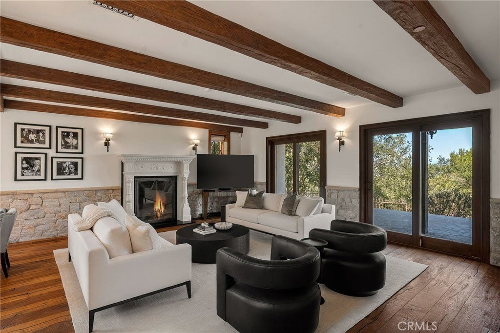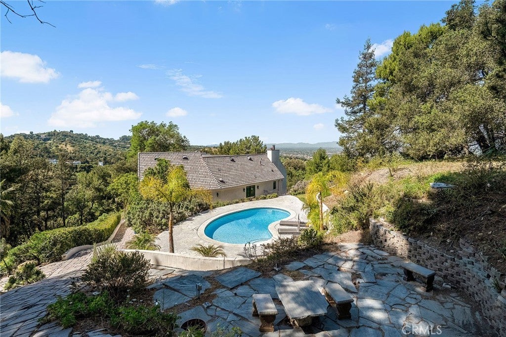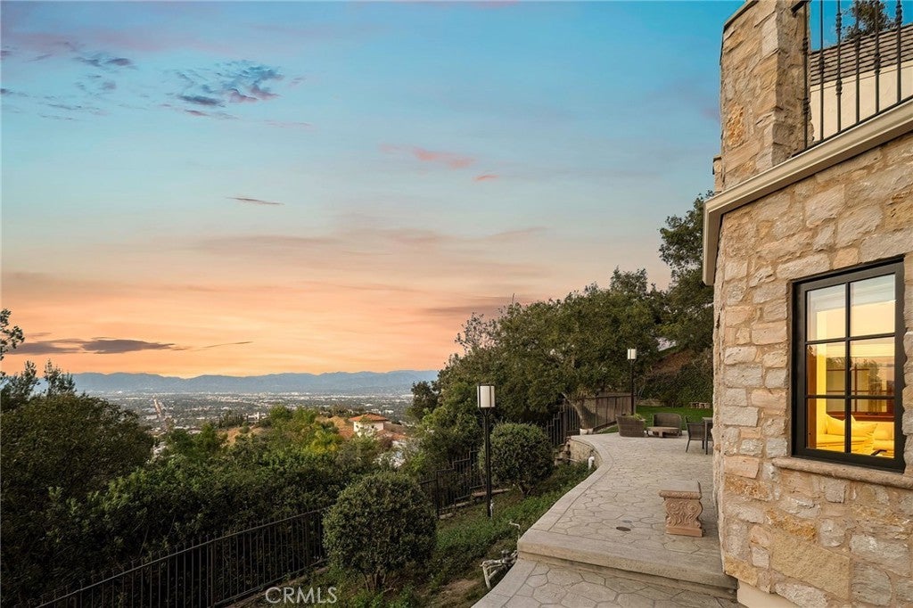 Perched on a hilltop above Studio City at the end of a private road with double gates, this one-of-a-kind estate offers nearly two acres of unparalleled privacy with sweeping panoramic views in every direction. A long, winding cobblestone driveway leads to a grand chateau-style residence that artfully blends timeless architecture with modern amenities. A dramatic double-door entry opens to an interior rich in character, featuring bespoke French wood floors, custom artisan cabinetry, wood-beamed ceilings and thoughtfully designed living spaces. The chef’s kitchen is a masterpiece, complete with a stone-clad center island, top-of-the-line appliances, a walk-in pantry, elegant designer finishes and a sun-drenched sitting area. Designed for both everyday living and grand entertaining, the kitchen flows seamlessly into a spacious formal dining room, while a warm and inviting living room is highlighted by an elegant fireplace and sliding glass doors that open to showcase commanding views of the Valley. Four generously sized bedrooms are thoughtfully spread throughout the home, including an expansive primary suite with a lavish ensuite bath and hidden room. Outdoors, the estate unveils a resort-like sanctuary, featuring a sparkling pool, multiple entertaining areas and expansive grassy lawns surrounded by lush, park-like grounds, all set against a backdrop of breathtaking vistas. Additional highlights include a laundry room, two-car garage and direct access to Fryman Canyon’s hiking trail. This prime South of the Boulevard location is within the top-rated Dixie Canyon School District and offers easy access to the Valley and Westside, prestigious private schools like Harvard-Westlake and Campbell Hall, and exceptional shopping and dining found along Ventura Boulevard.