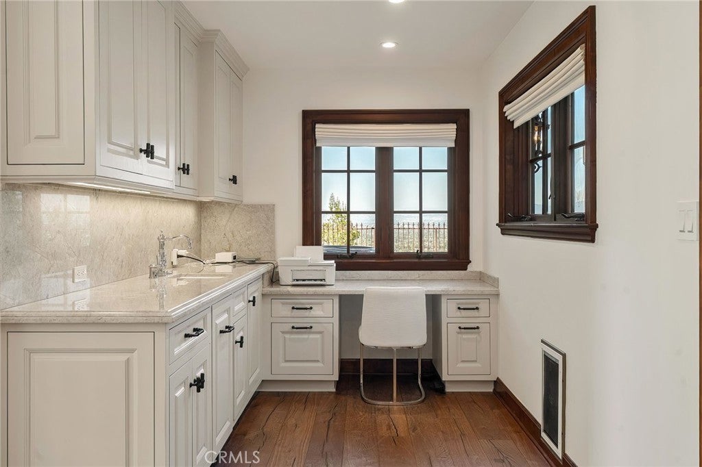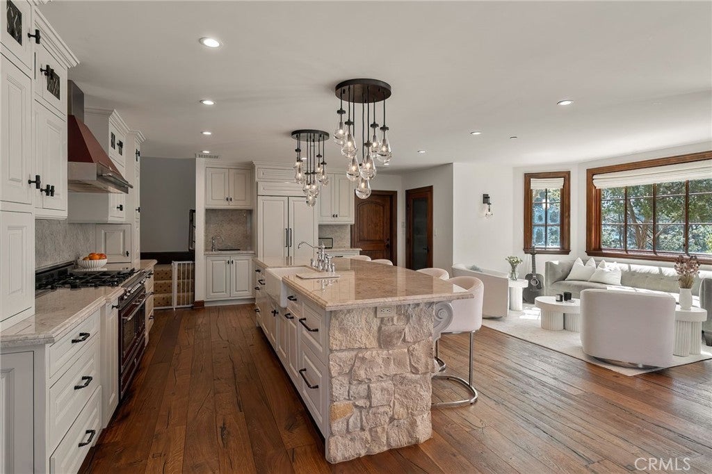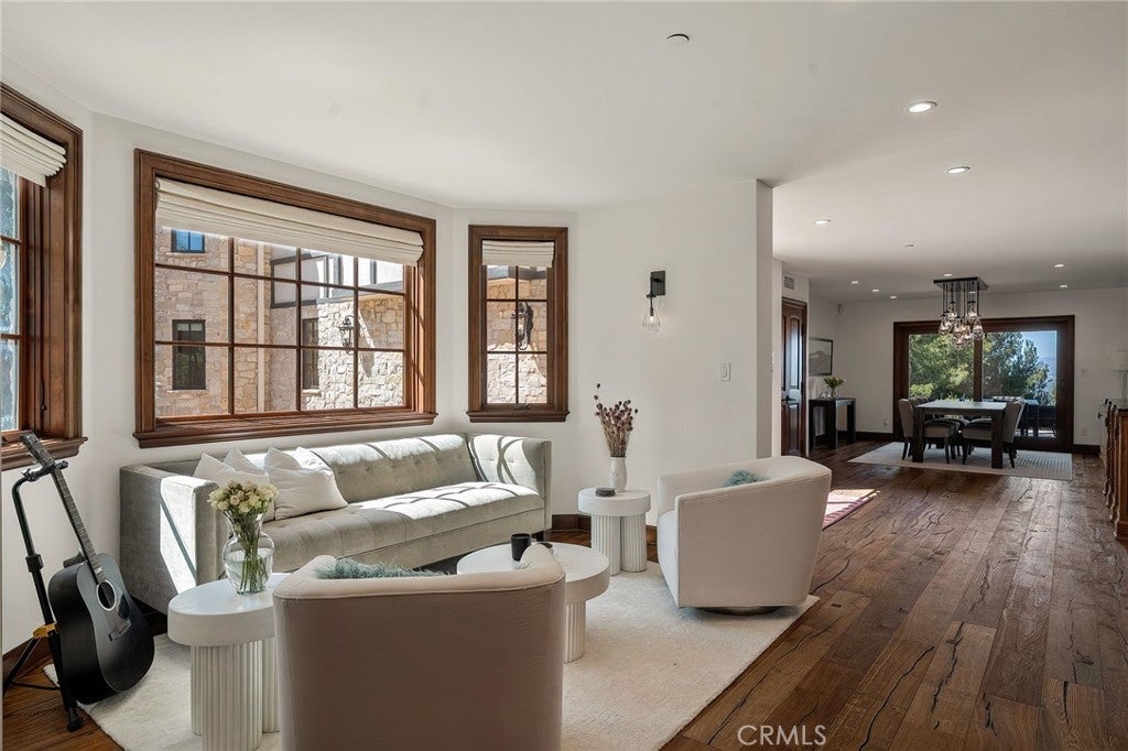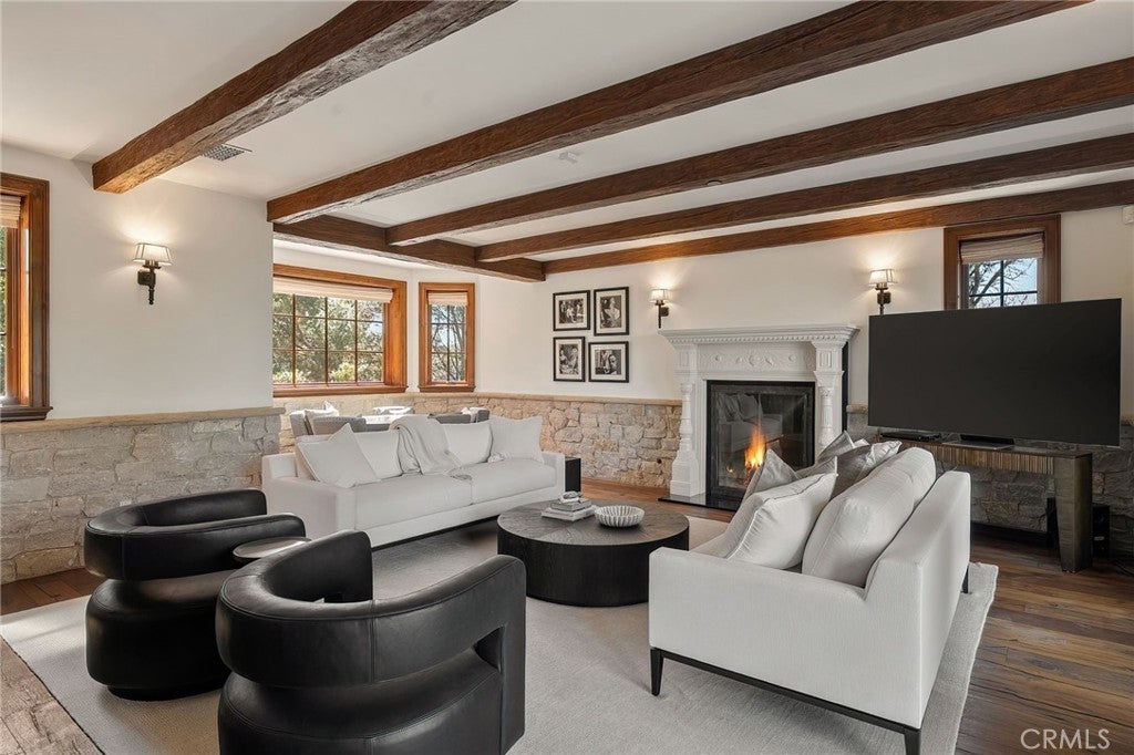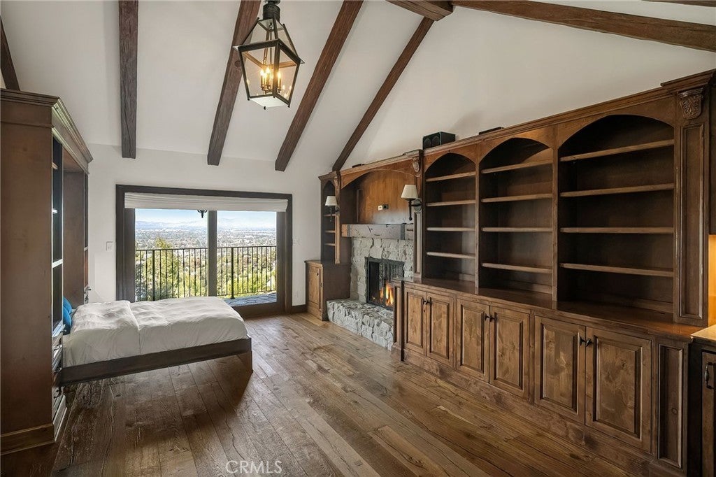 Perched on a hilltop above Studio City at the end of a private road with double gates, this one-of-a-kind estate offers nearly two acres of unparalleled privacy with sweeping panoramic views in every direction. A long, winding cobblestone driveway leads to a grand chateau-style residence that artfully blends timeless architecture with modern amenities. A dramatic double-door entry opens to an interior rich in character, featuring bespoke French wood floors, custom artisan cabinetry, wood-beamed ceilings and thoughtfully designed living spaces. The chef’s kitchen is a masterpiece, complete with a stone-clad center island, top-of-the-line appliances, a walk-in pantry, elegant designer finishes and a sun-drenched sitting area. Designed for both everyday living and grand entertaining, the kitchen flows seamlessly into a spacious formal dining room, while a warm and inviting living room is highlighted by an elegant fireplace and sliding glass doors that open to showcase commanding views of the Valley. Four generously sized bedrooms are thoughtfully spread throughout the home, including an expansive primary suite with a lavish ensuite bath and hidden room. Outdoors, the estate unveils a resort-like sanctuary, featuring a sparkling pool, multiple entertaining areas and expansive grassy lawns surrounded by lush, park-like grounds, all set against a backdrop of breathtaking vistas. Additional highlights include a laundry room, two-car garage and direct access to Fryman Canyon’s hiking trail. This prime South of the Boulevard location is within the top-rated Dixie Canyon School District and offers easy access to the Valley and Westside, prestigious private schools like Harvard-Westlake and Campbell Hall, and exceptional shopping and dining found along Ventura Boulevard.