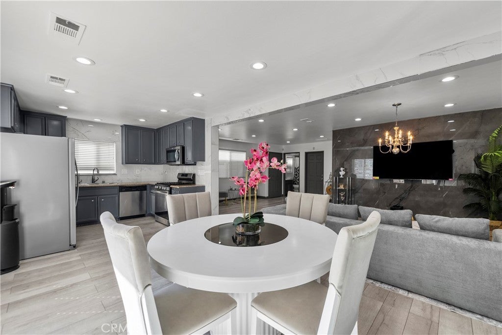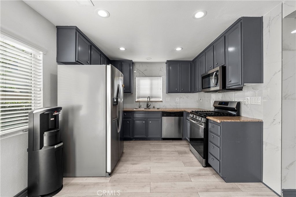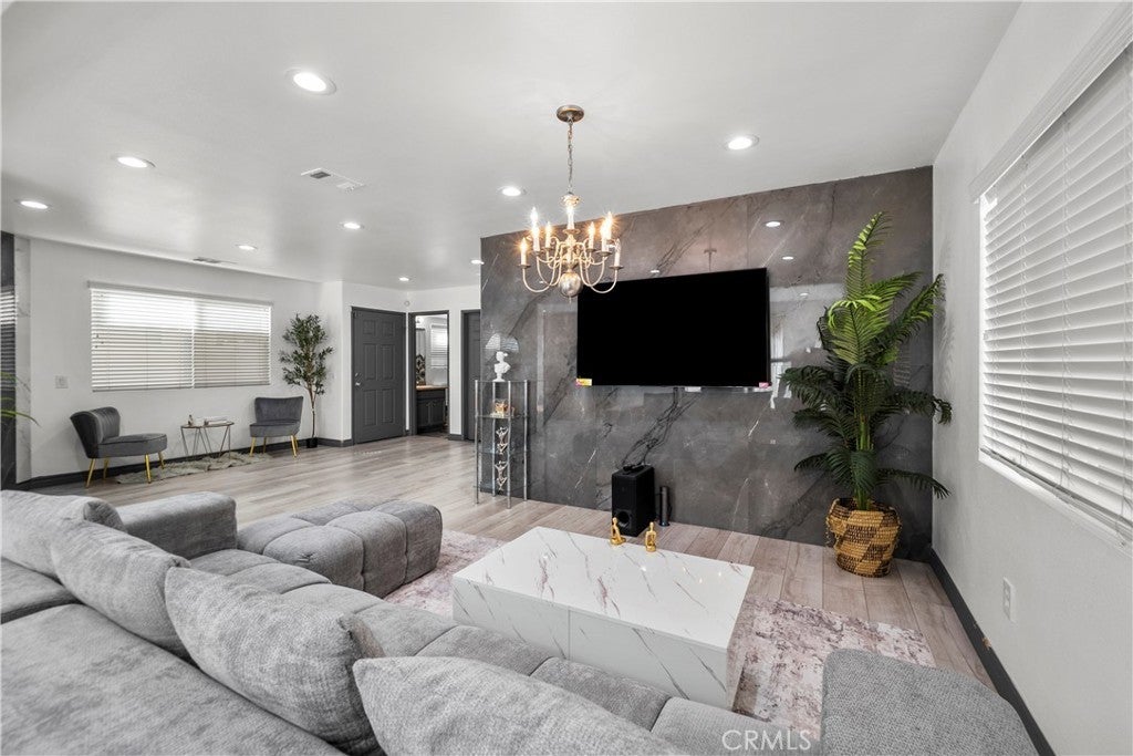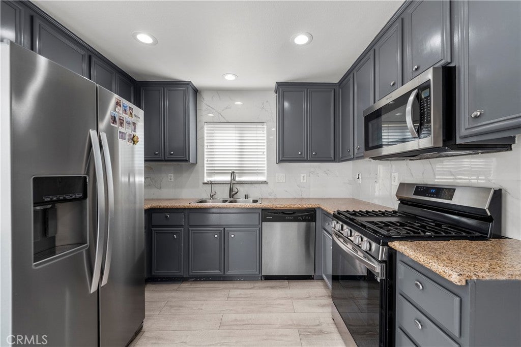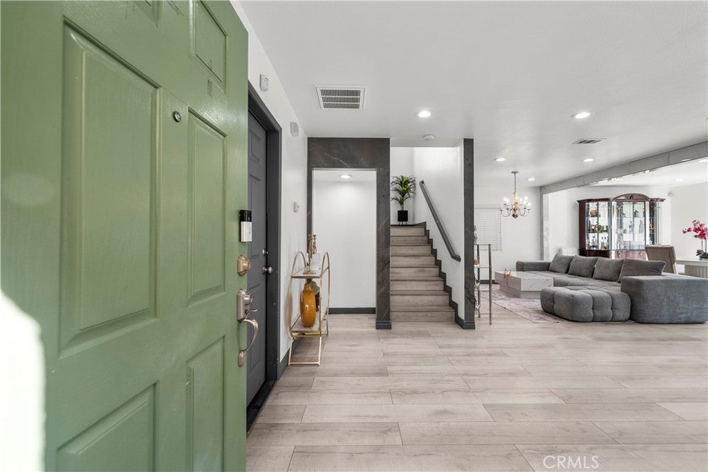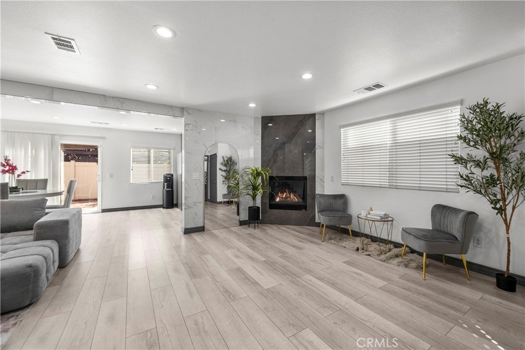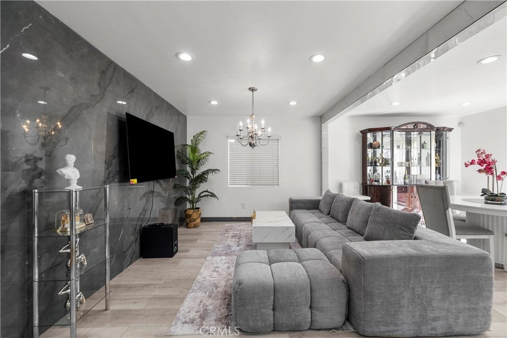 Welcome to this beautifully upgraded freestanding condominium located in a desirable gated community in North Hills. Offering the feel of a single family home, this spacious 4 bedroom, 3 full bath residence features approximately 1,837 square feet of living space and has been thoughtfully updated throughout. Step inside to a light filled open concept floor plan with brand new flooring, recessed lighting, and a seamless flow between the living, dining, and kitchen areas ideal for both everyday living and entertaining. The inviting living room showcases a stunning floor to ceiling marble accent wall with a sleek marbel fireplace and mounted TV, complemented by an elegant chandelier that adds a touch of luxury living. The kitchen features granite countertops, stainless steel appliances, and a striking marble tile backsplash that extends from the counters all the way to the ceiling, creating a modern and upscale design. Upstairs, you’ll find four large sized bedrooms including a spacious primary suite with a walk in closet and dual vanity bathroom with marbel flooring. Additional features include a two car garage with EV charger, indoor laundry, modern finishes throughout, and a whole house water purification system. Conveniently located near schools, shopping, dining, and with easy access to the 5, 405, and 118 freeways, this move in ready home offers comfort, style, and convenience.