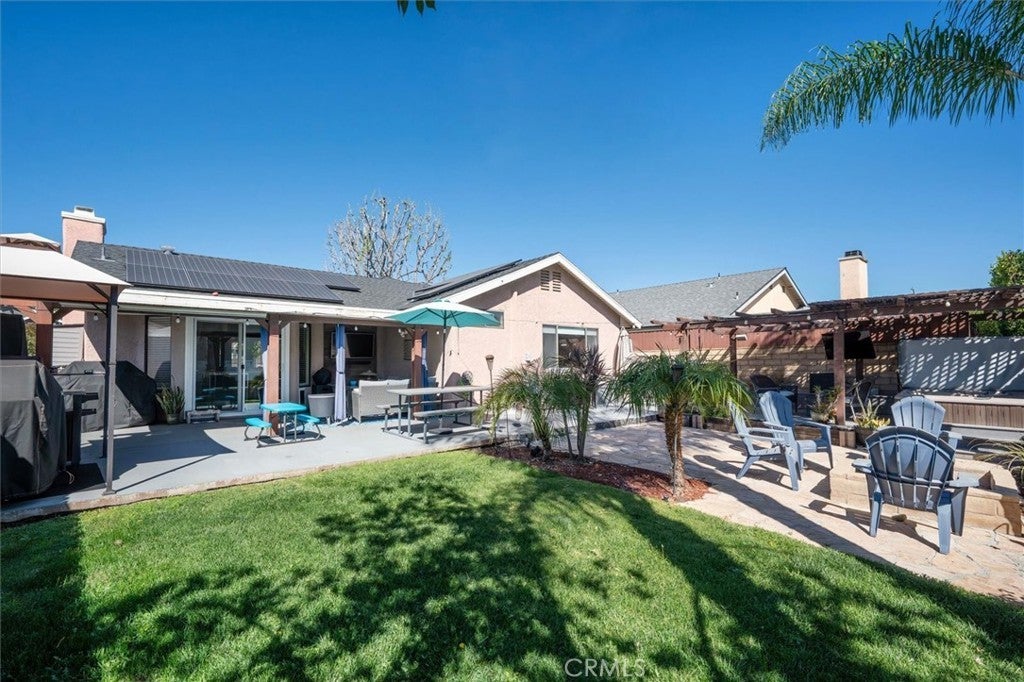 Terrific single story home ideallly located on a cul-de-sac! This home has Great Curb Appeal with a Charming Front Porch and OWNED SOLAR!!! The Remoldeled Kitchen highlights, Center-Island, durable Quartz Counter-Tops, Tile back splash, Stainless Steel Appliance Package, including Wine Frigde and Coffee Bar Station!! Luxury Vinyl Flooring, Ceiling Fans, Recessed lighting, and cozy Fireplace! Owners have recently installed a Split-Air Conditioning Unit in the Garage!! Large Primary Bedroom with En Suite Bathroom and Walk-in closet with updated closet organizers!! All Bedrooms have Newer Carpeting!! The Entertainers Back yard has covered dining and entertainment areas, above ground spa, Fire-pit!! and Newer Fencing with No Rear-Neighbors!!! Located just minutes away from Castaic Lake, Castaic Sports Complex that features an Olympic-sized pool, kids play area!!! Easy Freeway access, walking distance to elementary school. Dont miss this opportunity!! No HOA, No Mello-Roos!!