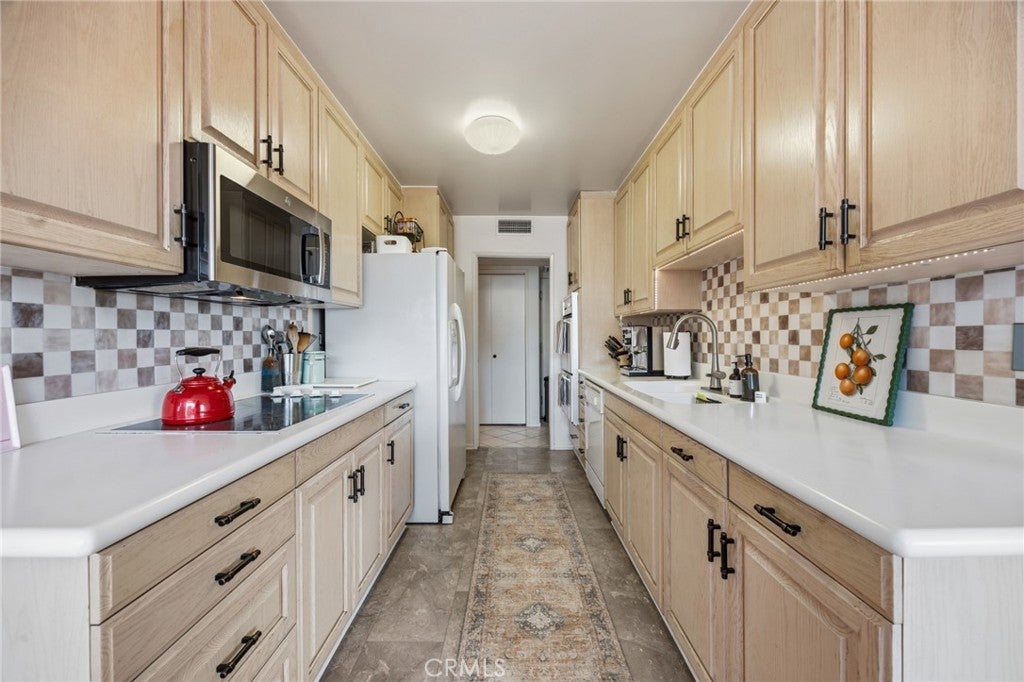 Located on the top floor of a well-maintained 3 story, 38-unit building, this spacious 1,415 sf, 2-bedroom, 2-bath corner unit condo offers an ideal blend of comfort, light, and location. Built in 1969, the residence features a thoughtfully designed floor plan with generous living spaces and storage and abundant natural light throughout. The bright and airy living area opens to a standing balcony—perfect for plants and inviting the sunlight and fresh air in. There is room for a gas barbecue for year round grilling. Top floor and corner unit mean no neighbors above and only 1 shared wall, providing a quiet living sanctuary and remote working environment. The unit includes two covered parking spaces, a valuable convenience in this sought-after neighborhood. Residents enjoy access to resort-style amenities including a deep swimming pool, hot tub, and inviting outdoor entertaining area featuring new dining and lounge furniture. The building’s common areas and landscaping are clean, well-lit, and tastefully updated, reflecting pride of ownership throughout the community. Located in one of the most coveted pockets of Sherman Oaks south of Ventura Boulevard, the property offers exceptional accessibility, steps from the front lobby are home to some of Sherman Oaks’ most desirable family friendly streets. Head to nearby grocery stores such as Whole Foods Market and Ralphs, along with a wide array of shops, coffee houses, restaurants, and everyday conveniences just moments from your door. This top-floor condo presents a rare opportunity to enjoy spacious living in a prime Sherman Oaks location with outstanding amenities and neighborhood accessibility.