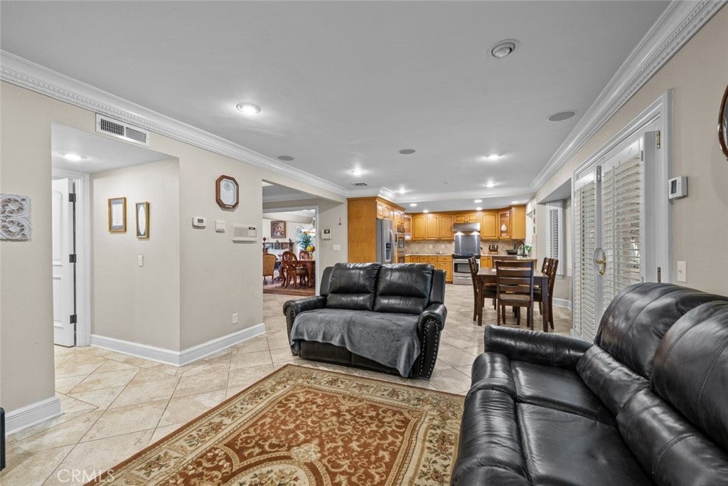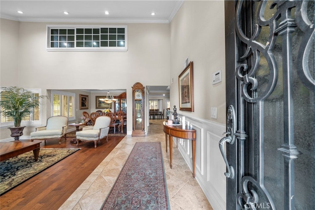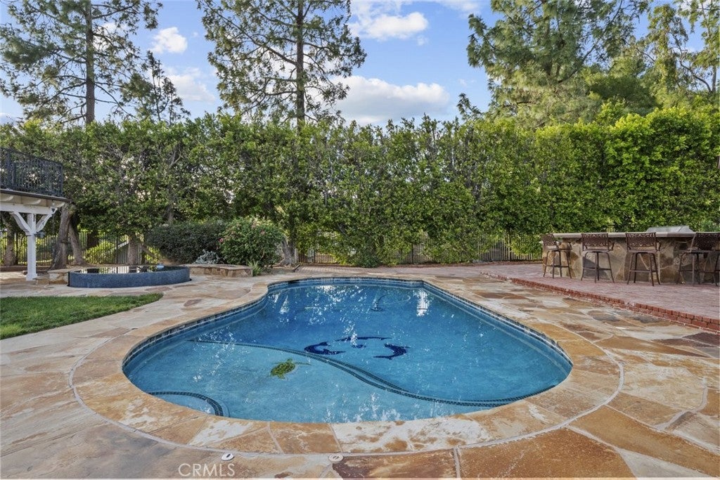 Located at the top of a hill in the desirable Chatsworth community, this beautiful 4-bedroom, 3-bath residence offers 2,757 sq ft of well-designed living space with scenic surroundings, privacy, and exceptional outdoor amenities. Set on an expansive lot, the property presents a rare opportunity with potential for multiple ADUs or a guest house, making it ideal for those seeking flexibility and future expansion. Inside, the home features elegant formal living and dining areas, highlighted by custom woodwork, crown molding, and statement lighting. The spacious layout is well-suited for both everyday living and entertaining. A beautifully upgraded bathroom showcases a spa-like walk-in shower with custom stone finishes, adding a refined touch. The backyard is designed for both relaxation and hosting, featuring a resort-style pool, raised spa, gazebo, and a large covered patio. The outdoor space is further enhanced by built-in barbecue with fiber optic countertops, creating an inviting ambiance for evening gatherings. Mature landscaping and generous open areas offer endless possibilities for customization. Additional highlights include a 3-car attached garage, generously sized bedrooms, and sweeping hillside views that create a peaceful, retreat-like setting. Conveniently located within walking distance to Sierra Canyon School, this special hilltop property offers a rare blend of privacy, lifestyle, and long-term potential in a prime Chatsworth location.