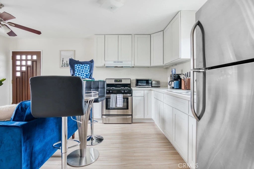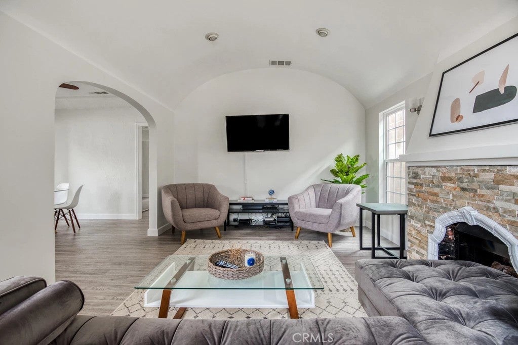 Welcome to 1582 S Ridgeley Drive, a versatile duplex property offering strong rental potential and flexible living options in the heart of Los Angeles. Situated on a 5,400 sq ft lot, the property consists of a front freestanding 3-bedroom, 2-bathroom home and a separate 1-bedroom, 1-bathroom rear unit, creating an attractive opportunity for investors or owner-occupants seeking additional income. The front residence spans approximately 1,804 sq ft and blends classic Spanish character with thoughtful updates. The living room is filled with natural light from beautiful arched windows, while a charming breakfast nook with matching arches provides a warm and inviting dining space. A later addition created a spacious primary suite with separate driveway access, offering excellent flexibility for multigenerational living or potential rental separation. The front home also enjoys a welcoming brick patio in the front yard, surrounded by mature landscaping and fruit trees. A two-car garage and large driveway provide ample off-street parking. The rear unit sits above the garage and offers approximately 550 sq ft with 1 bedroom and 1 bathroom. The unit includes its own private yard, one-car garage, and separately metered gas and electricity, allowing for true independence from the main home. Currently leased for $2,000 per month, the unit provides immediate rental income. Permit street parking adds additional convenience for residents and guests. Ideally positioned with quick access to the 10 Freeway, the property is just minutes from major Los Angeles attractions including The Grove, Original Farmers Market, and LACMA, along with well-known dining destinations such as Alta Adams and Republique. A compelling opportunity to own a centrally located duplex with existing income and strong long-term upside in one of Los Angeles’ most convenient neighborhoods.