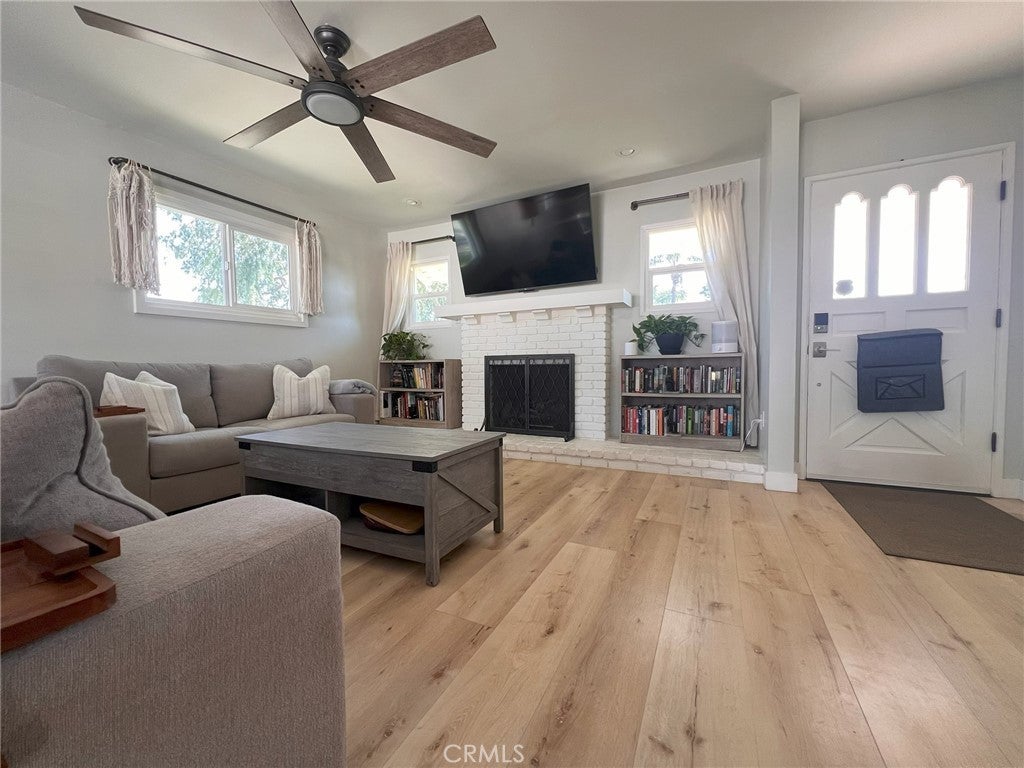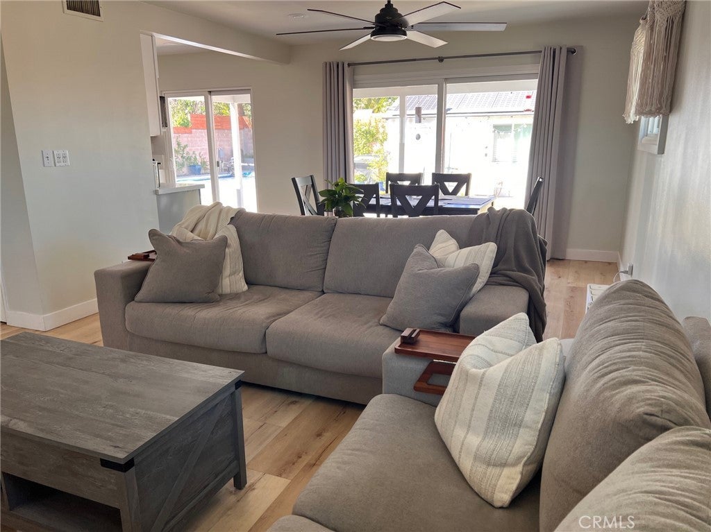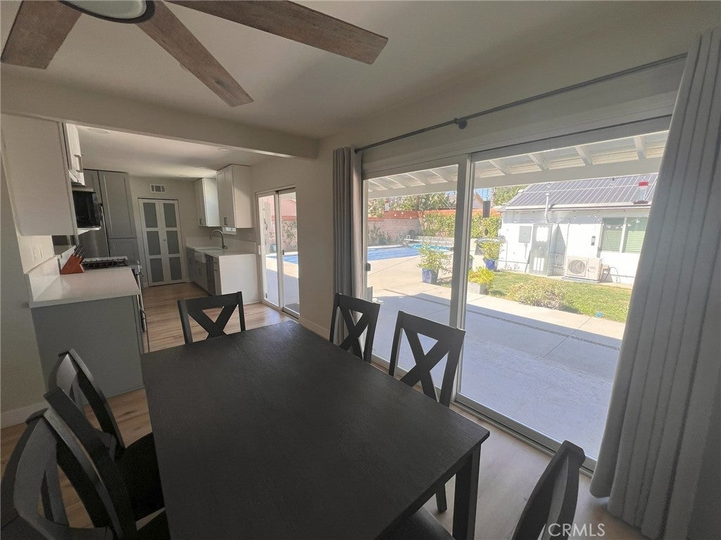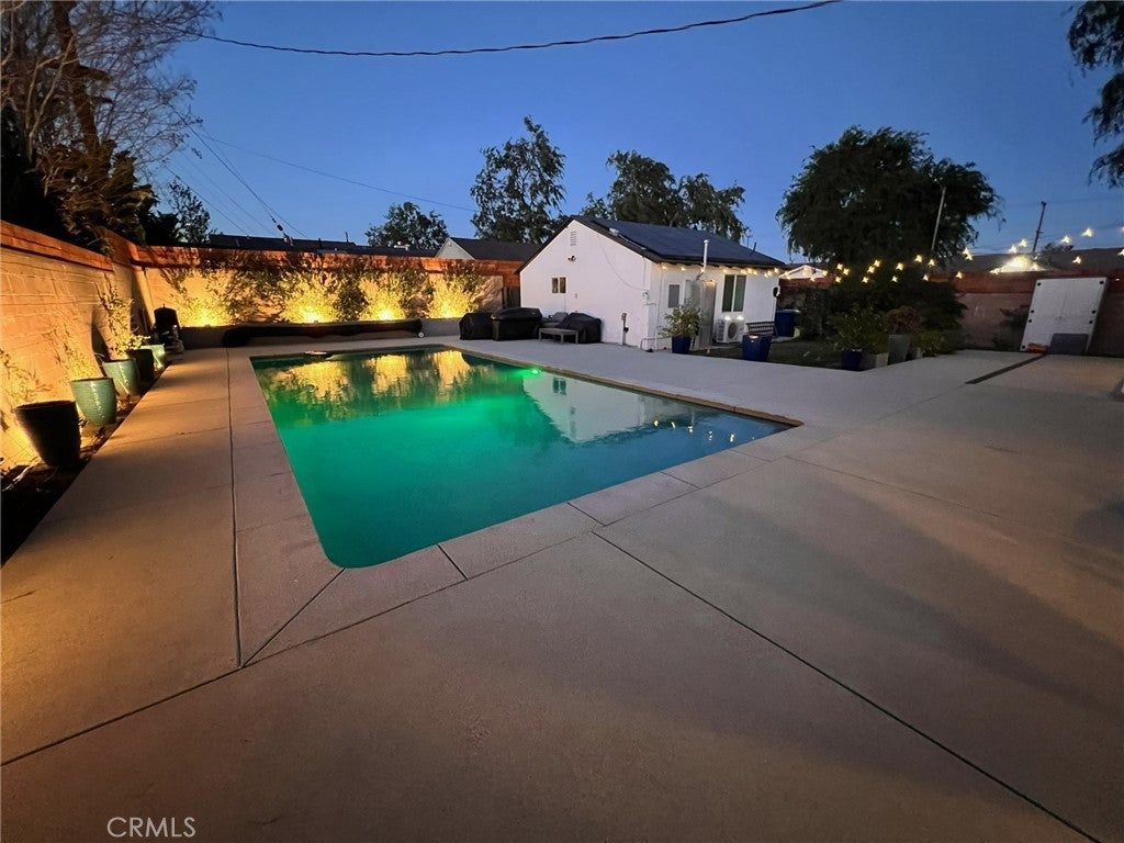 Discover this tastefully updated desirable corner lot pool home with permitted detached ADU in a quiet, distinct mid-century neighborhood in Canoga Park. Built by developer George J. Heltzer & Associates between 1957 and 1958, 20933 Hemmingway Street features updated 3-bedrooms and 2-baths, with a bright, open concept living room, dining area and kitchen. - Inside, enjoy a bright, open layout with wide-plank flooring through the main living areas, creating a clean, modern feel that’s easy to live in and great for entertaining. The updated kitchen anchors the home with warm wood cabinetry, designer-selected finishes, and stainless-steel appliances that blend style and function. - The primary bedroom provides a comfortable retreat with an updated en-suite bathroom featuring new tile flooring and a spacious walk-in shower with glass enclosure. Additional bedrooms offer flexible use for guests, work-from-home, or everyday living. A refreshed secondary bathroom includes dual vanity and a tub/shower combination with contemporary finishes. - Additional interior features include custom built-ins, smooth ceilings, fireplace, recessed lighting, ceiling fans, Cat 6 and newer dual-paned windows and sliding glass doors that create a bright and inviting living space which effortlessly flows outside to a modern, clean backyard. - As you step outside to your backyard oasis, the sparkling pool sets the stage for summer fun, weekend gatherings, and relaxing evenings, with additional yard space for lounging, play, or outdoor dining. The side yard offers convenient storage options. With walls wrapped in Jasmine and Mandevilla, and mature fruit trees including Mandarin Oranges, Pluot, Saturn Peach, Lemon, and Lime, your backyard provides year-round beauty and treats the whole family will enjoy. - A newly built, approx. 400 sq. ft. detached ADU with its own address adds exceptional versatility. The ADU includes a private entrance, full kitchen, bathroom, and flexible living area—ideal for guests, extended family, or income producing opportunities. - Located minutes from The Village, LA Rams, Pierce College, CSUN, great dining, schools, and public transportation. The property also benefits from leased solar panels that help reduce electricity costs. - Buyer to verify all information including square footage, bed/bath count, and permits to their satisfaction.