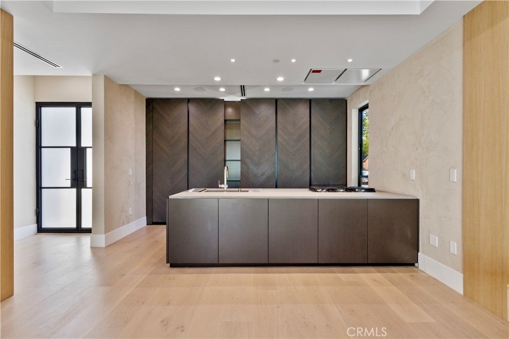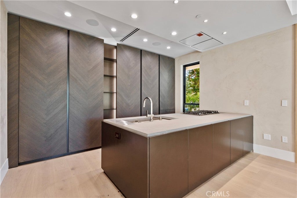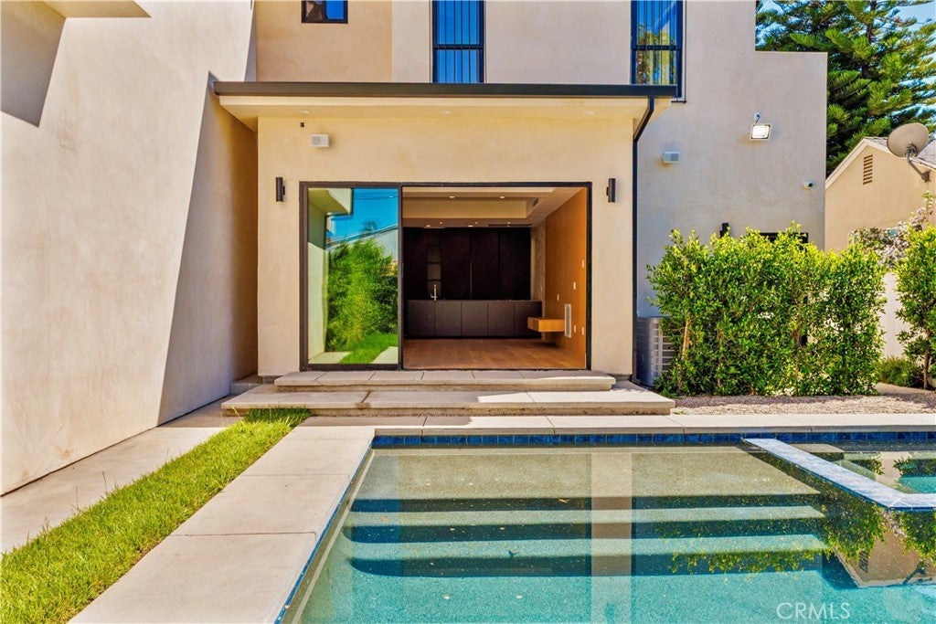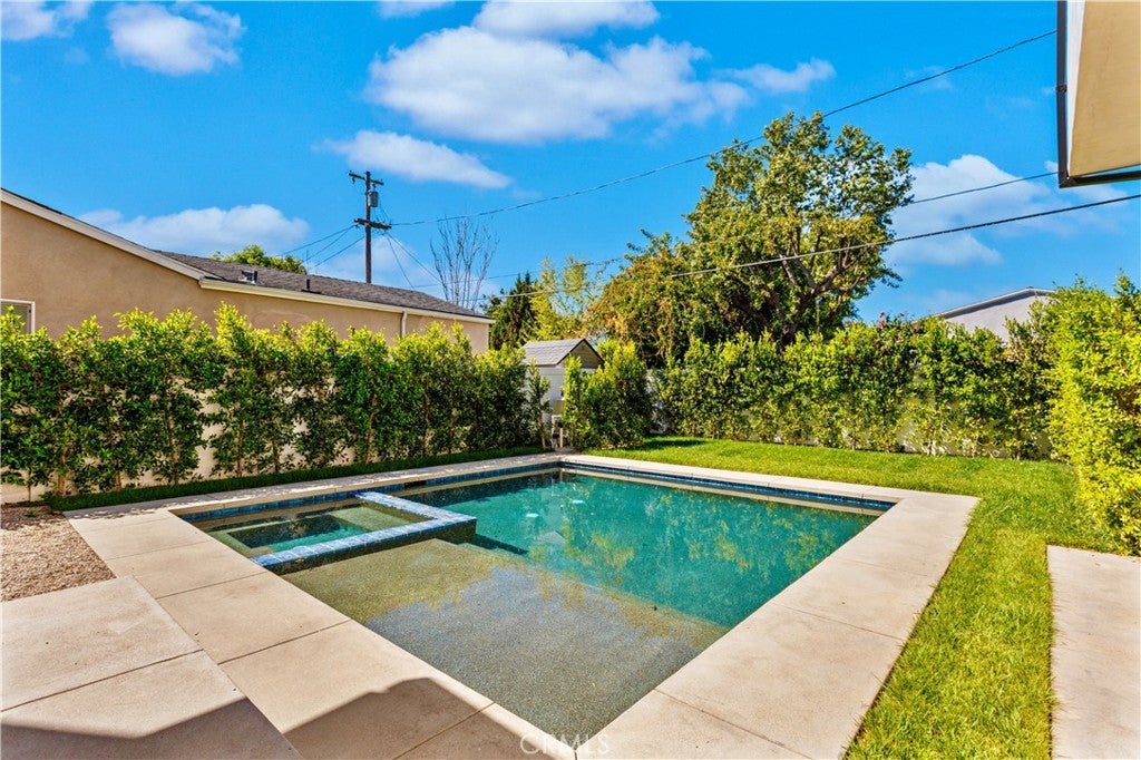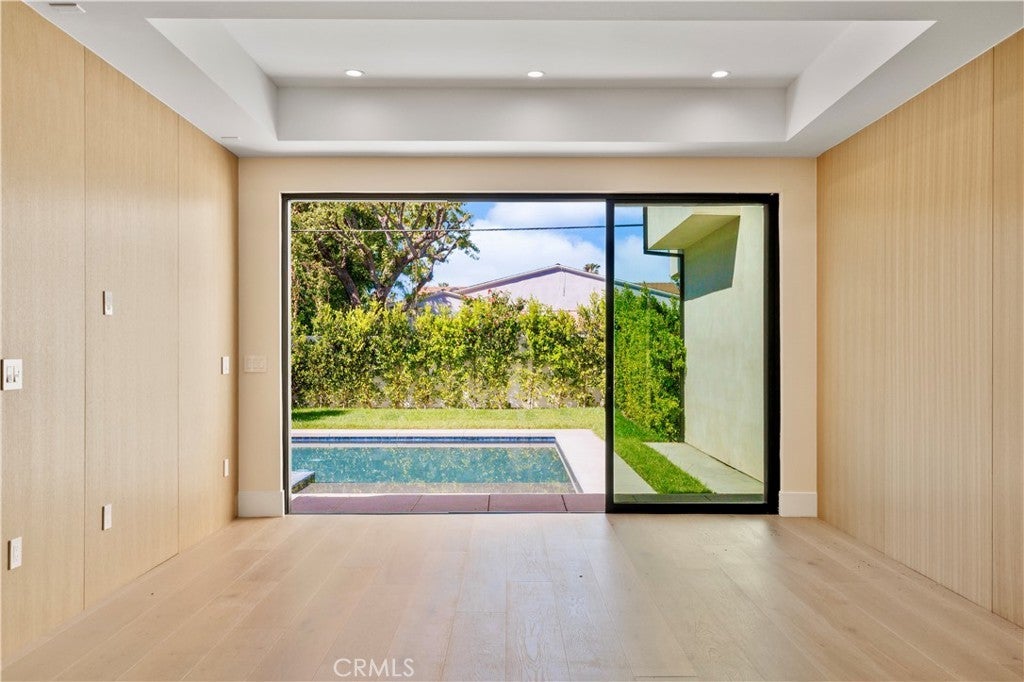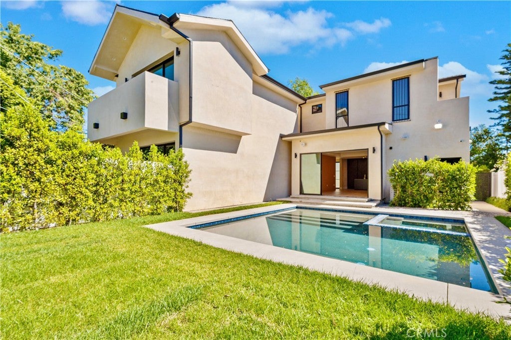 Newly rebuilt contemporary home offering modern design, comfort, and privacy in one of Encino’s most desirable neighborhoods. Reconstructed nearly from the ground up, the residence features 4 en suite bedrooms and 4.5 baths across approximately 2,000 square feet of bright, open living space. High ceilings, expansive windows, and wide plank flooring create a light-filled interior with clean architectural lines and refined finishes throughout. The main living area is highlighted by a striking wood-paneled feature wall and recessed ceiling detail, while large sliding glass doors open to the backyard and pool, creating seamless indoor-outdoor flow. The kitchen is designed with custom cabinetry, sleek modern finishes, and an oversized island with seating, opening to the living and dining areas for effortless everyday living and entertaining. All four bedrooms include en suite baths, offering privacy and comfort. The primary suite features a spa-inspired bath and a spacious walk-in closet with custom built-ins. Two additional upstairs bedrooms also include generous walk-in closets, while a main-level bedroom is ideal for guests, a home office, or flexible living. The private backyard is complete with a pool, spa, and lush landscaping. Solar panels add energy efficiency. Ideally located near Ventura Boulevard’s dining, shopping, and neighborhood amenities.