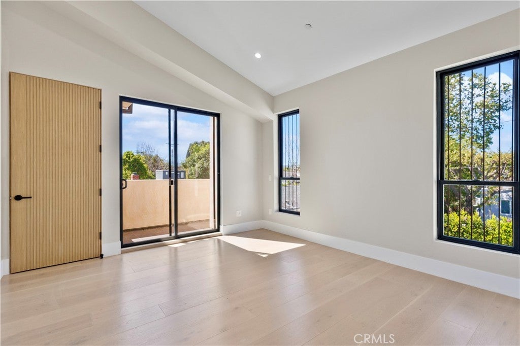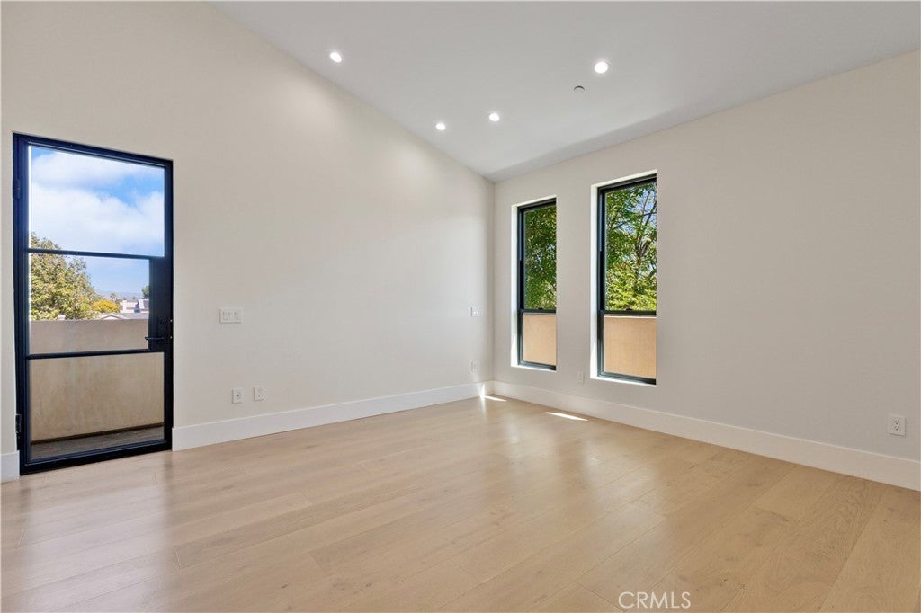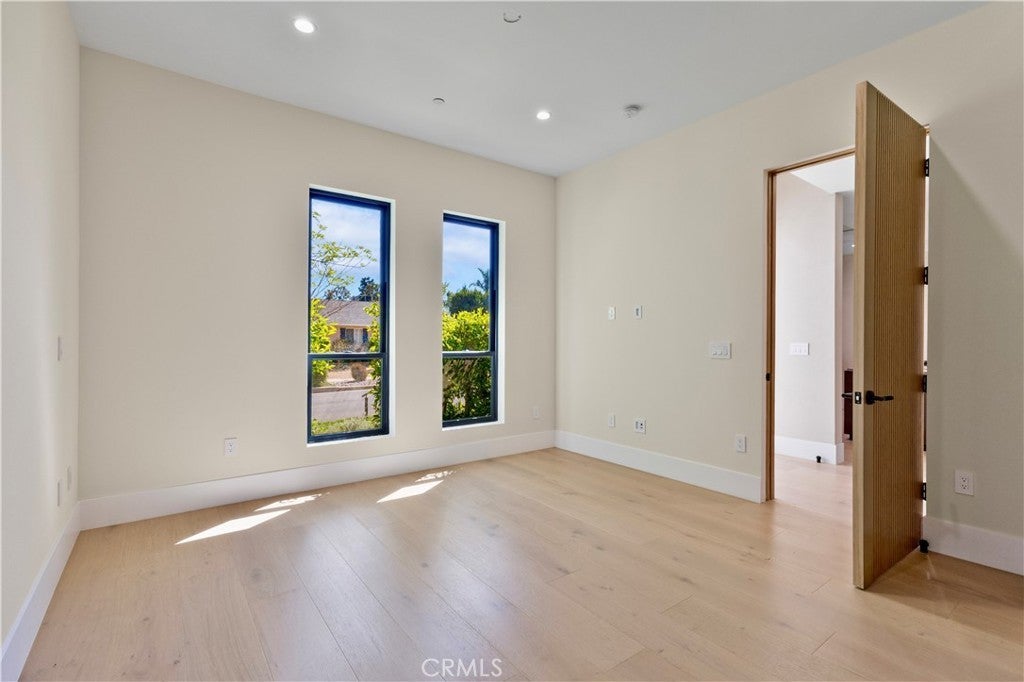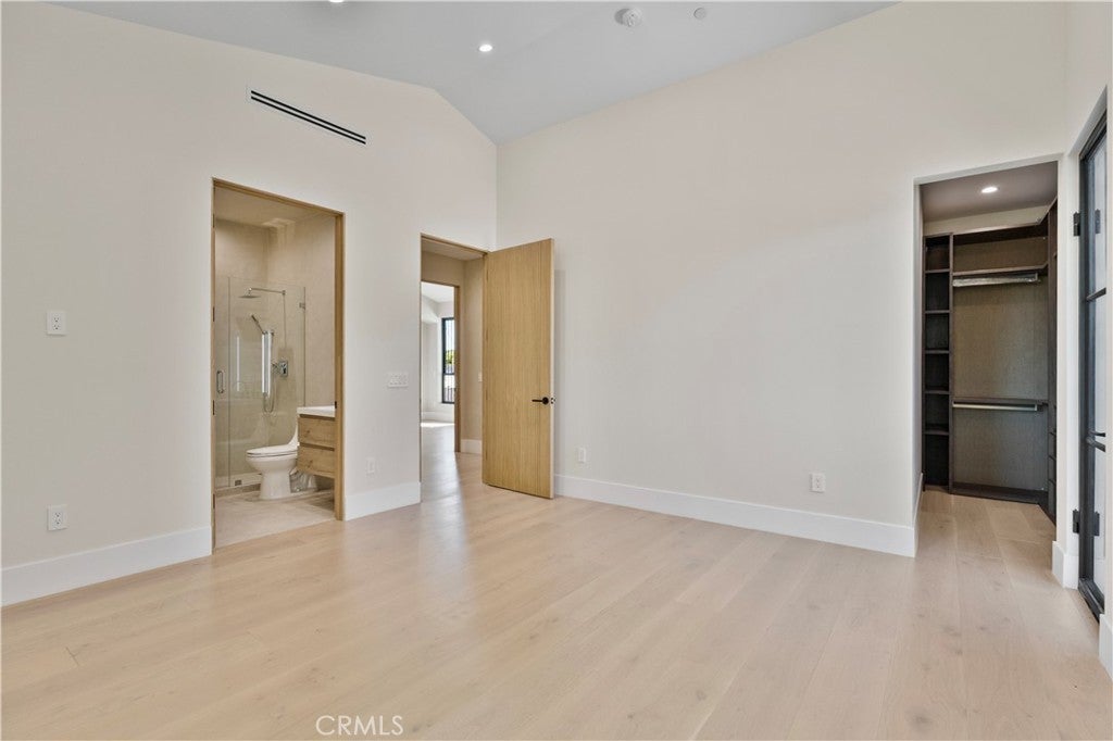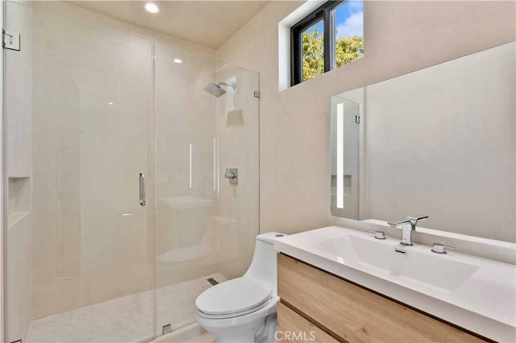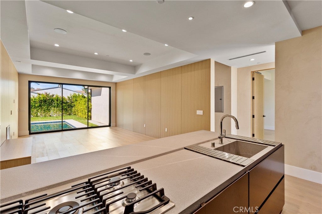 Newly rebuilt contemporary home offering modern design, comfort, and privacy in one of Encino’s most desirable neighborhoods. Reconstructed nearly from the ground up, the residence features 4 en suite bedrooms and 4.5 baths across approximately 2,000 square feet of bright, open living space. High ceilings, expansive windows, and wide plank flooring create a light-filled interior with clean architectural lines and refined finishes throughout. The main living area is highlighted by a striking wood-paneled feature wall and recessed ceiling detail, while large sliding glass doors open to the backyard and pool, creating seamless indoor-outdoor flow. The kitchen is designed with custom cabinetry, sleek modern finishes, and an oversized island with seating, opening to the living and dining areas for effortless everyday living and entertaining. All four bedrooms include en suite baths, offering privacy and comfort. The primary suite features a spa-inspired bath and a spacious walk-in closet with custom built-ins. Two additional upstairs bedrooms also include generous walk-in closets, while a main-level bedroom is ideal for guests, a home office, or flexible living. The private backyard is complete with a pool, spa, and lush landscaping. Solar panels add energy efficiency. Ideally located near Ventura Boulevard’s dining, shopping, and neighborhood amenities.