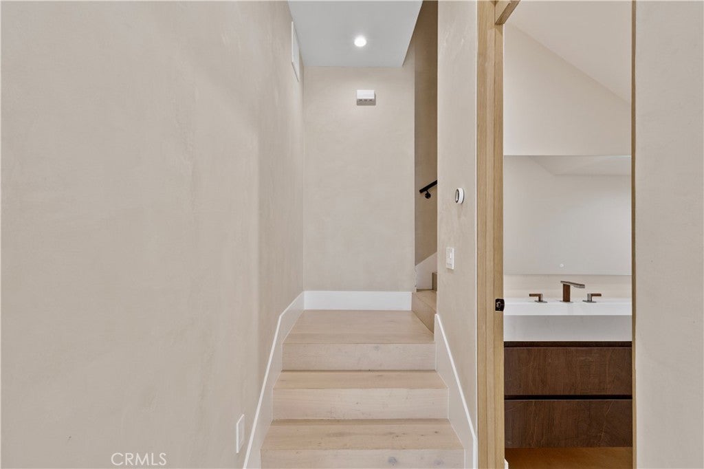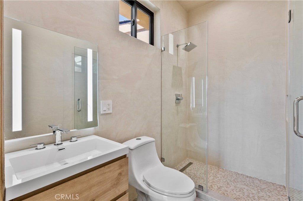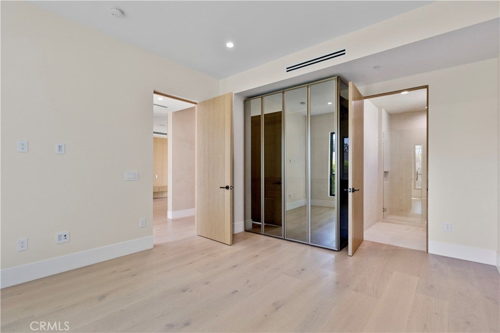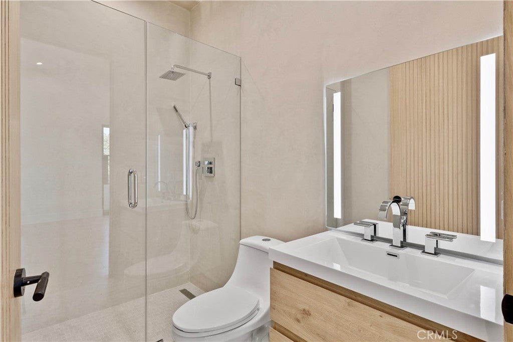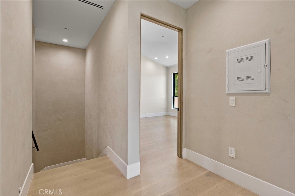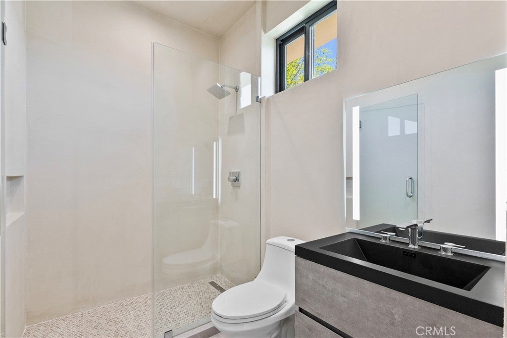 Newly rebuilt contemporary home offering modern design, comfort, and privacy in one of Encino’s most desirable neighborhoods. Reconstructed nearly from the ground up, the residence features 4 en suite bedrooms and 4.5 baths across approximately 2,000 square feet of bright, open living space. High ceilings, expansive windows, and wide plank flooring create a light-filled interior with clean architectural lines and refined finishes throughout. The main living area is highlighted by a striking wood-paneled feature wall and recessed ceiling detail, while large sliding glass doors open to the backyard and pool, creating seamless indoor-outdoor flow. The kitchen is designed with custom cabinetry, sleek modern finishes, and an oversized island with seating, opening to the living and dining areas for effortless everyday living and entertaining. All four bedrooms include en suite baths, offering privacy and comfort. The primary suite features a spa-inspired bath and a spacious walk-in closet with custom built-ins. Two additional upstairs bedrooms also include generous walk-in closets, while a main-level bedroom is ideal for guests, a home office, or flexible living. The private backyard is complete with a pool, spa, and lush landscaping. Solar panels add energy efficiency. Ideally located near Ventura Boulevard’s dining, shopping, and neighborhood amenities.